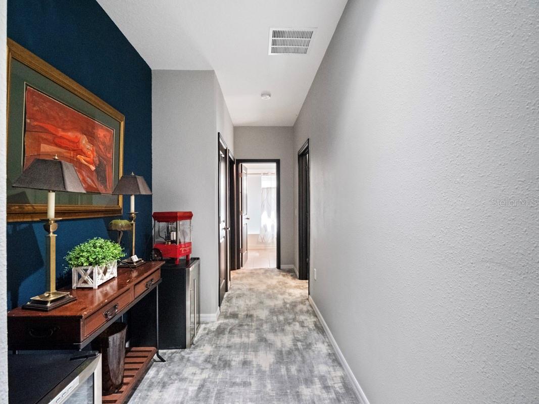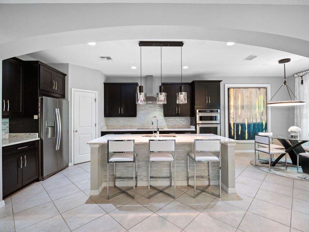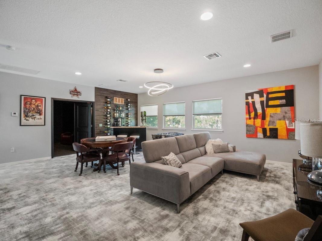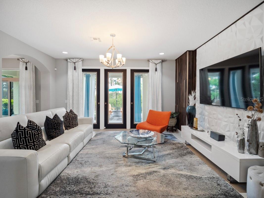 Nestled in the desirable Windermere Trails community, just about 2 miles from the enchanting Disney attractions, this exceptional ENERGY STAR certified home offers an unparalleled living experience. Boasting 6 spacious bedrooms, a dedicated media room, loft, and game room, along with 4 bathrooms, this residence is designed for both relaxation and entertainment. As you step inside, you'll be captivated by the beautiful entry walkway with its striking iron stair rails, setting the tone for the home's elegant and refined aesthetic. The formal dining room and the formal living room create an inviting atmosphere for gracious gatherings. The architectural detail enhances the room's ambiance and adds a touch of sophistication. The open-concept kitchen is a true culinary delight, featuring gourmet stainless steel appliances with a 36" cooktop, 42-inch Timberlake flat panel square maple cabinets with crown molding, upgraded backsplash, and quartz countertops, as well as a spacious walk-in pantry. The expansive primary bedroom boasts a large walk-in closet and a luxurious bathroom with dual vanity sinks, and a private lavatory.Upgraded home theater system with illuminated fiber optic ceiling and panels adds a great entertaining feature. Escape to your private oasis complete with a landscaped yard and a relaxing water feature. The lanai is an 8' deep retreat, perfect for outdoor relaxation.The fenced property with dual gates ensures privacy in your own backyard paradise. Beyond the home's impressive interior, the Windermere Trails community offers an array of amenities for residents to enjoy, including walking trails, a community pool, pavilions, a dog park, a playground, and an exercise area, all contributing to a vibrant and family-friendly lifestyle.