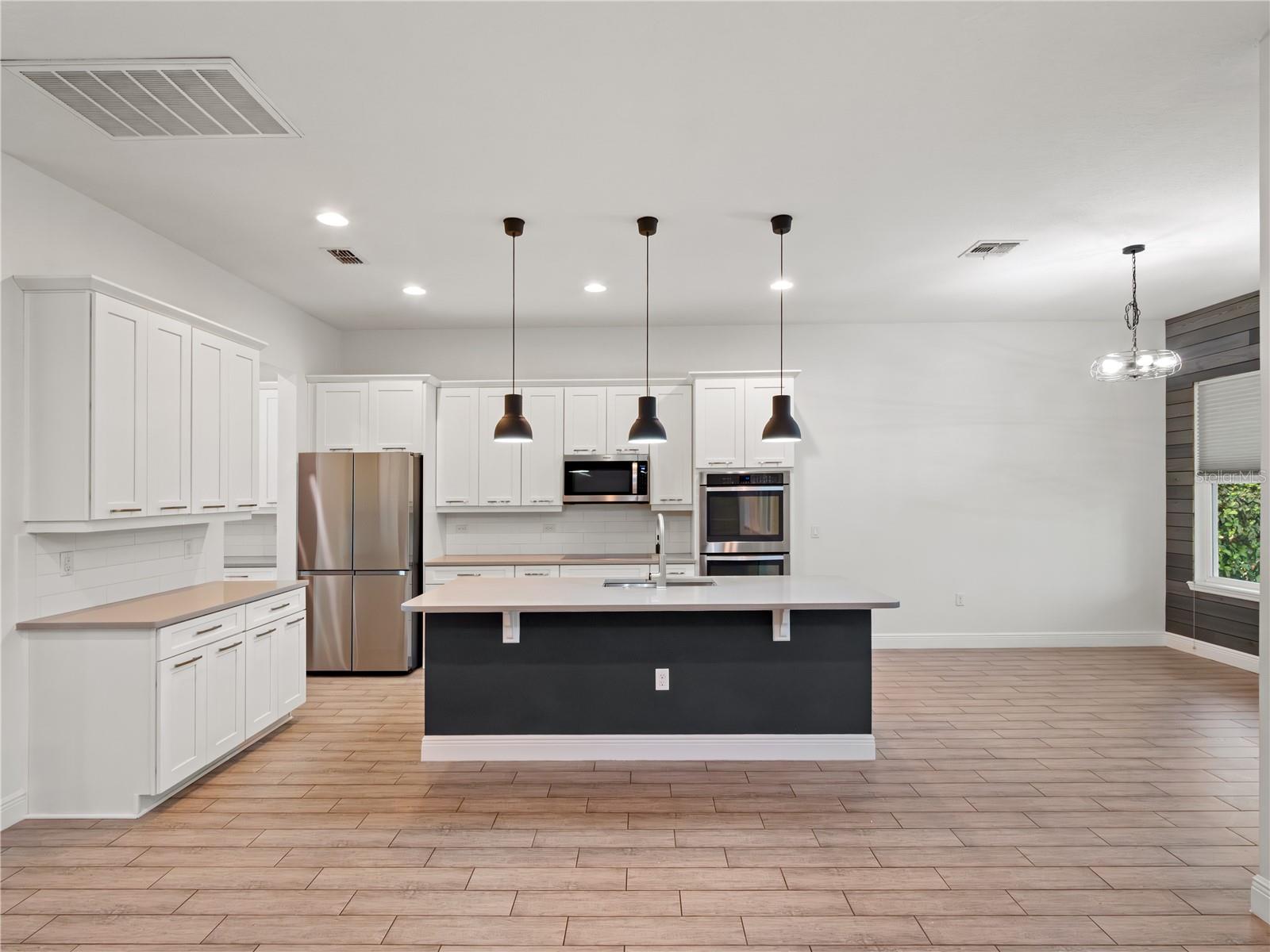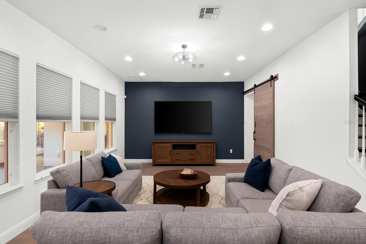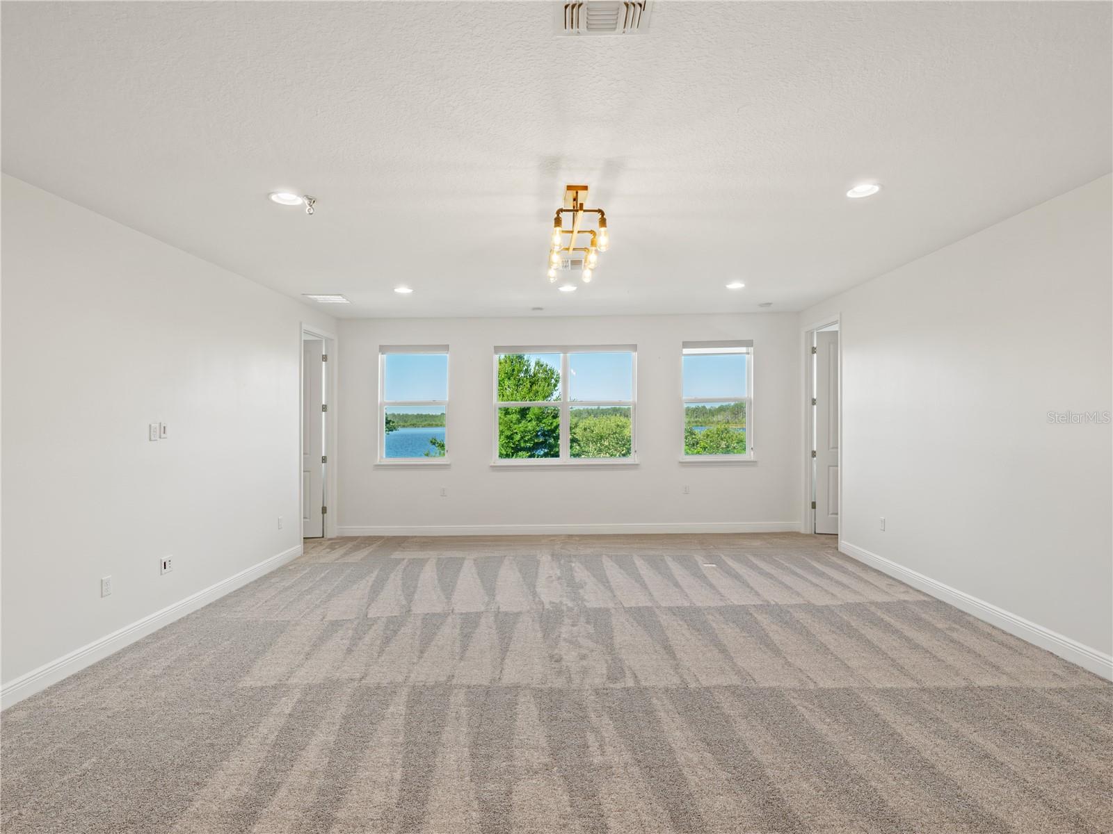 Sitting directly on LAKE REAMS with a serene lake view, this impeccably upgraded residence is nestled in the heart of the highly sought-after Windermere Trails community and offers an exceptional combination of elegance, comfort, and practicality. Featuring 6 bedrooms, 4.5 bathrooms—including TWO PRIMARY SUITES—a generous main living area, and a dedicated office or den, this home is thoughtfully designed to accommodate both refined entertaining and everyday living. Upon entry, tile flooring spans the majority of the main level, guiding you through bright, open-concept living spaces enhanced by abundant natural light. The gourmet kitchen serves as the centerpiece of the home, boasting quartz countertops, a designer tile backsplash, 42-inch cabinetry with soft-close drawers, premium stainless steel appliances, and a spacious walk-in pantry. The first-floor primary suite offers a serene retreat, highlighted by a custom barn door for enhanced privacy, luxury vinyl flooring, a sizable walk-in closet with built-in organizers, and a spa-inspired en-suite bathroom featuring dual quartz vanities, a semi-frameless glass shower, and refined tile finishes. The conveniently located main-level laundry room is equipped with a Samsung washer and dryer, cabinetry, and a built-in sink. Ascending the upgraded wood staircase, you’ll find brand new carpeting throughout the upper level, along with a spacious game room ideally suited for a secondary living area or recreational use. A notable highlight is the additional upstairs primary suite, complete with its own en-suite bathroom and ample closet space—perfect for multigenerational living or hosting long-term guests. A secondary full-size laundry area, furnished with an LG washer and dryer, provides added functionality for busy households. The home’s outdoor living areas are equally impressive. A fully enclosed sunroom with dedicated heating and cooling opens to a screened patio and a meticulously landscaped backyard, offering both privacy and a tranquil setting for relaxation or entertaining. The garage is outfitted with overhead storage racks and an EV charging outlet. Additional upgrades include fully owned SOLAR panels, fresh interior paint, a brand-new downstairs 2025 HVAC system, and a recently sealed driveway. Residents of Windermere Trails enjoy access to a wide array of community amenities, including a resort-style pool, playground, dog park, fitness area, scenic walking trails, and covered pavilions—offering an exceptional lifestyle experience. Zoned for top-rated schools and conveniently located near premier shopping, dining, and major attractions, this home exemplifies the perfect balance of luxury, location, and livability.