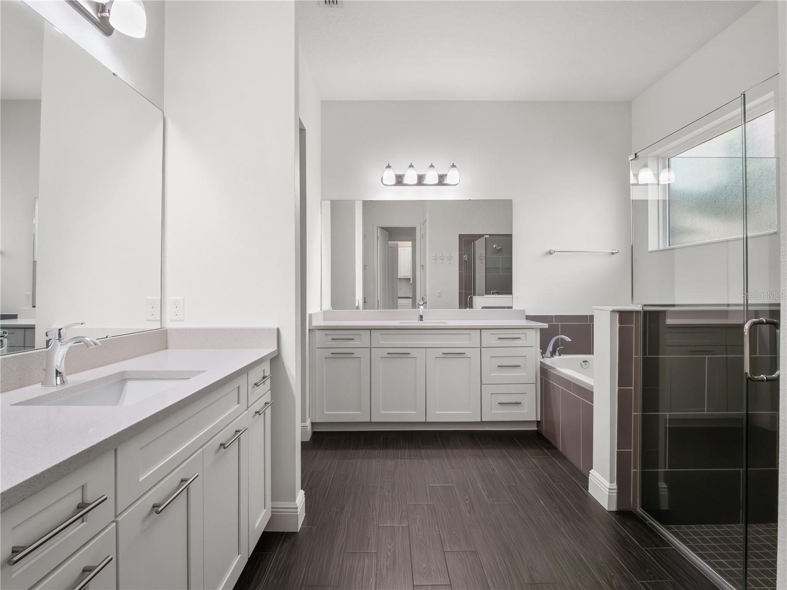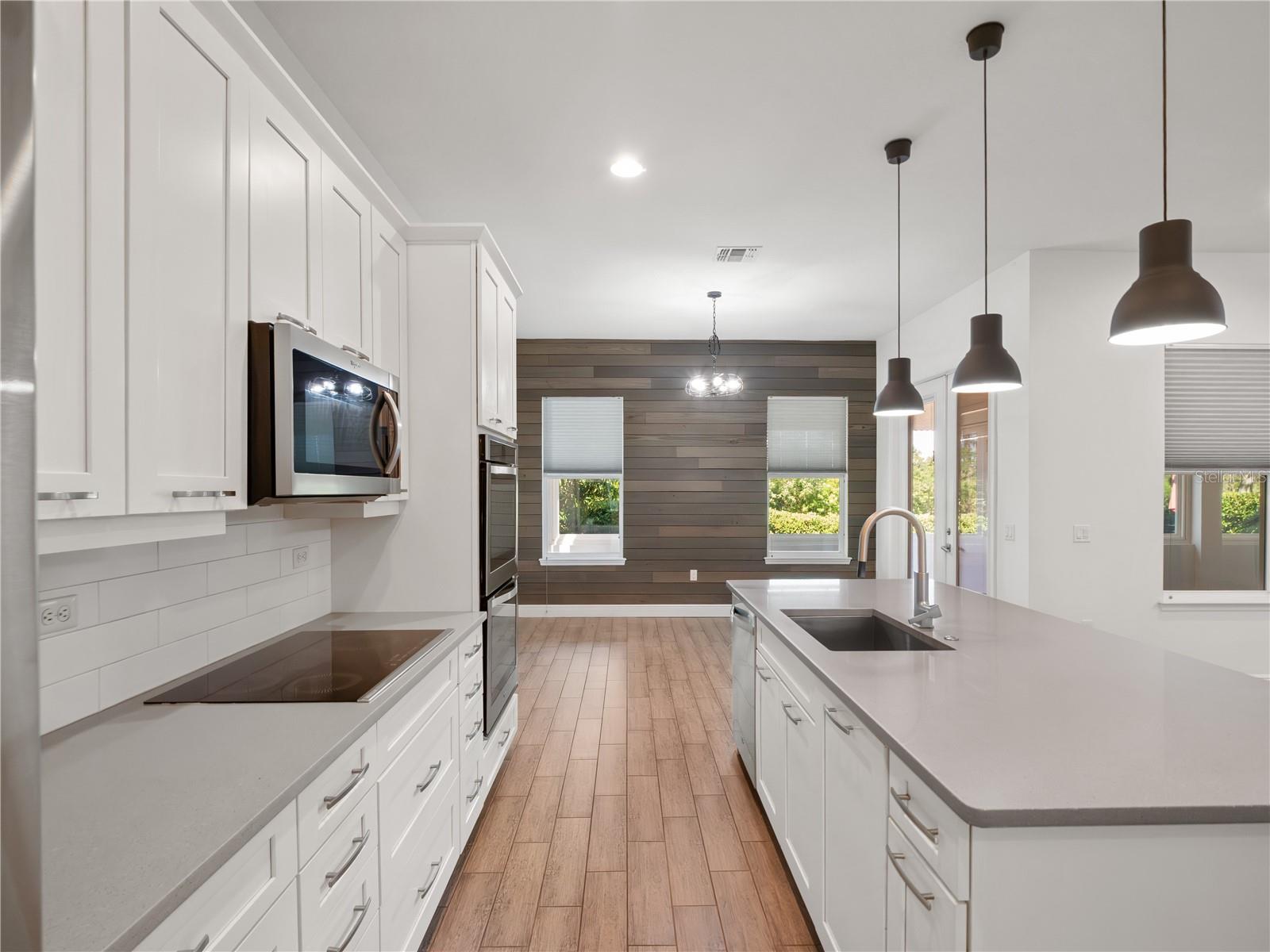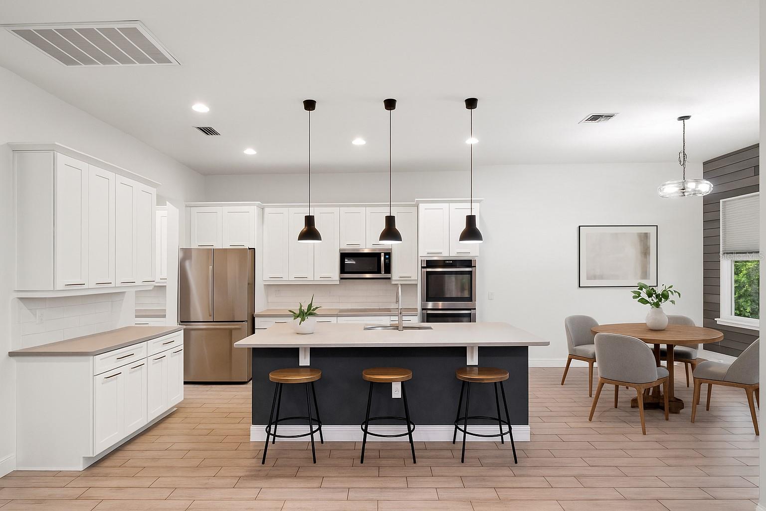 Sitting directly on LAKE REAMS with a serene lake view, this impeccably upgraded residence is nestled in the heart of the highly sought-after Windermere Trails community and offers an exceptional combination of elegance, comfort, and practicality. Featuring 6 bedrooms, 4.5 bathrooms—including TWO PRIMARY SUITES—a generous main living area, and a dedicated office or den, this home is thoughtfully designed to accommodate both refined entertaining and everyday living. Upon entry, tile flooring spans the majority of the main level, guiding you through bright, open-concept living spaces enhanced by abundant natural light. The gourmet kitchen serves as the centerpiece of the home, boasting quartz countertops, a designer tile backsplash, 42-inch cabinetry with soft-close drawers, premium stainless steel appliances, and a spacious walk-in pantry. The first-floor primary suite offers a serene retreat, highlighted by a custom barn door for enhanced privacy, luxury vinyl flooring, a sizable walk-in closet with built-in organizers, and a spa-inspired en-suite bathroom featuring dual quartz vanities, a semi-frameless glass shower, and refined tile finishes. The conveniently located main-level laundry room is equipped with a Samsung washer and dryer, cabinetry, and a built-in sink. Ascending the upgraded wood staircase, you’ll find brand new carpeting throughout the upper level, along with a spacious game room ideally suited for a secondary living area or recreational use. A notable highlight is the additional upstairs primary suite, complete with its own en-suite bathroom and ample closet space—perfect for multigenerational living or hosting long-term guests. A secondary full-size laundry area, furnished with an LG washer and dryer, provides added functionality for busy households. The home’s outdoor living areas are equally impressive. A fully enclosed sunroom with dedicated heating and cooling opens to a screened patio and a meticulously landscaped backyard, offering both privacy and a tranquil setting for relaxation or entertaining. The garage is outfitted with overhead storage racks and an EV charging outlet. Additional upgrades include fully owned SOLAR panels, fresh interior paint, a brand-new downstairs 2025 HVAC system, and a recently sealed driveway. Residents of Windermere Trails enjoy access to a wide array of community amenities, including a resort-style pool, playground, dog park, fitness area, scenic walking trails, and covered pavilions—offering an exceptional lifestyle experience. Zoned for top-rated schools and conveniently located near premier shopping, dining, and major attractions, this home exemplifies the perfect balance of luxury, location, and livability.
