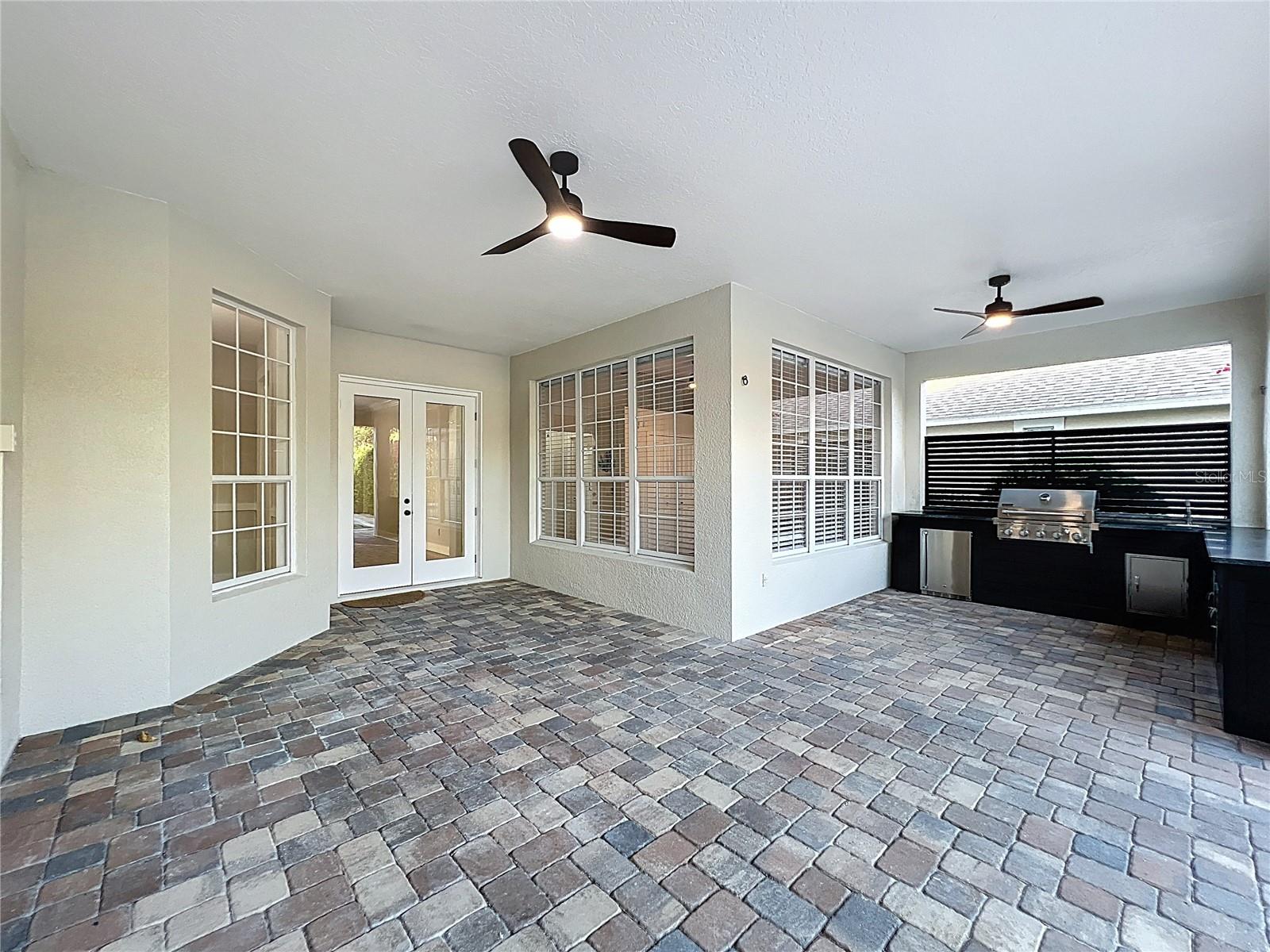 French Doors, Outdoor Grill, Outdoor Kitchen, Rain Gutters, Shade Shutter(s), Sidewalk