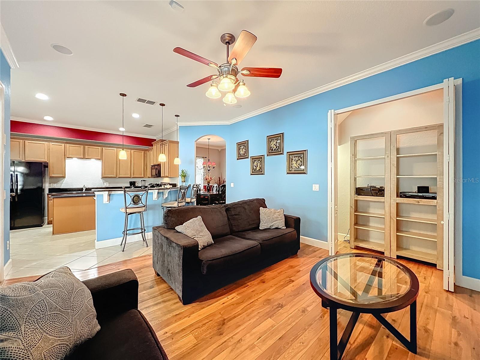 Located in the Preston Square community of Windermere, this 4-bedroom, 4-bath pool home offers 3400 sq ft of heated living space with a functional two-story layout. The home features multiple living areas, an open kitchen with an eat-in space, and architectural details including tray ceilings, built-in features, walk-in closets, and a bonus Room with ceiling fans through out. The layout provides flexibility for a variety of living and lifestyle needs. Enjoy a private saltwater pool with pond views in a fully fenced backyard. The pool pump was replaced approximately 2.5 years ago, and a pool safety door alarm is in place. The home was freshly painted approximately six months ago. Additional features include all appliances, washer and dryer, and a surround sound system in the downstairs family room.