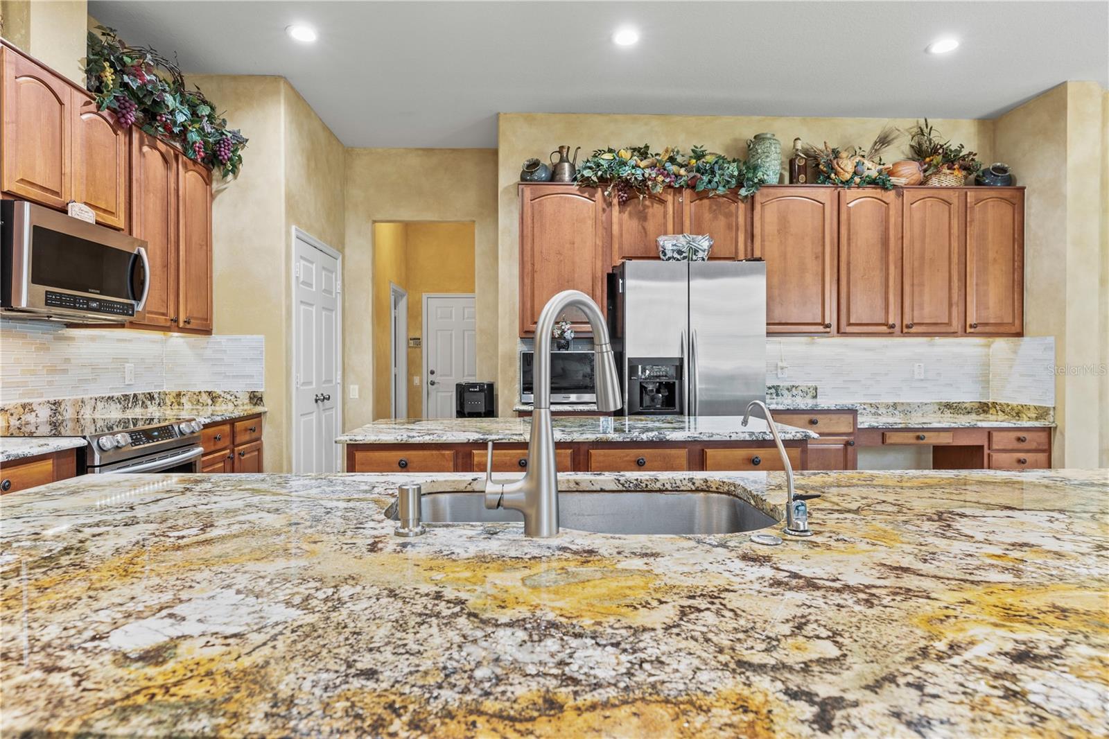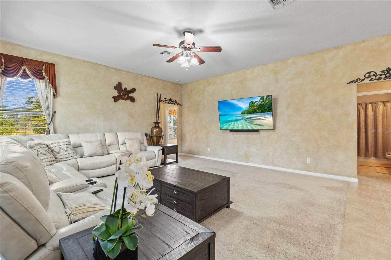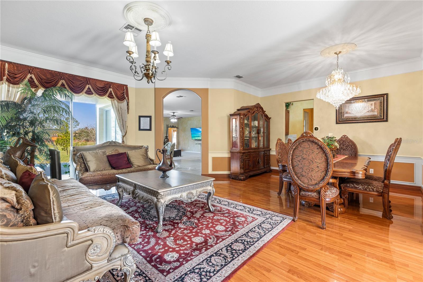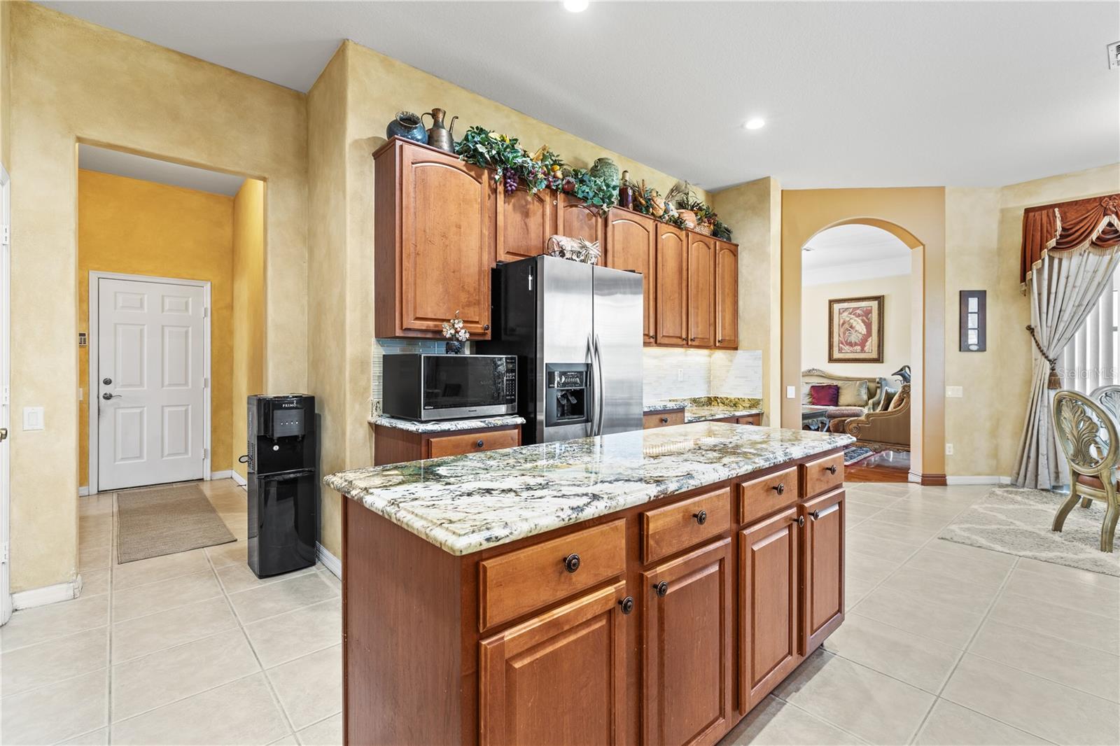 HUGE PRICE IMPROVEMENT!! SELLER MOTIVATED! Welcome to Glenmuir, one of Windermere’s most sought-after communities, where an elegant entrance sets the tone for this stunning tile-roof ranch home on an oversized 0.37-acre lot. Located within the zone of top-rated public schools and just minutes from Windermere Preparatory School, this home offers an excellent educational environment alongside luxury and convenience. Spanning 3,080 sq. ft., this thoughtfully designed 4-bedroom + den, 3.5-bathroom home boasts a spacious 3-car garage and an oversized driveway that can accommodate up to 9 vehicles. The open split-floor plan invites natural light and seamless flow throughout. Step through the elegant glass double doors into a welcoming foyer, where the custom-painted living and dining rooms create a refined ambiance. Adjacent to the dining area, a butler's pantry and half bath add both functionality and charm. To the right, a private den/office with French doors and an uplift standing desk provides the perfect space to work from home. The primary suite is generously sized and features a spa-like ensuite with a walk-in shower, soaking tub, double vanity, and large walk-in closet. The recently remodeled gourmet kitchen is a true showstopper, featuring exotic granite countertops, an island, 42” Cherrywood cabinets, ample storage, and stainless steel appliances. The breakfast nook seamlessly connects to the spacious family room, enhanced by a Samsung 75” wall-mounted TV and a sectional leather sofa, both included in the sale. A thoughtfully designed layout ensures privacy, with a guest suite offering an en-suite bath with pool access, while the remaining two bedrooms share a well-appointed third full bath. Additional highlights include a large laundry room with a Whirlpool Duet washer & dryer, cabinet storage, and a cooking range hookup, plus a whole-house water softener, reverse osmosis water filter, and rain gutters. Step outside to your backyard oasis, where a spacious screened-in patio overlooks two serene ponds, creating a tranquil setting with ample room to build your dream pool. The lush landscaping is a gardener’s paradise, featuring 3 mature mango trees, a jackfruit tree, banana trees, persimmon, lychee, fig, Hass avocado, sugar apple, and vegetable beds—a rare find! Additional upgrades include two A/C units (one replaced last year) and two Ring security cameras for added peace of mind. Majority of the furniture is negotiable if the buyer is interested (see the attached list for details). MOVE-IN READY—No stairs to climb, just plenty of space to spread out and enjoy! Don’t miss this incredible opportunity—schedule your private showing today!