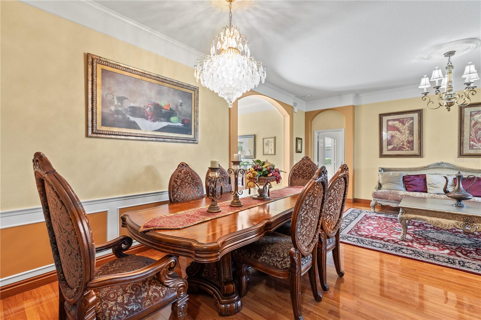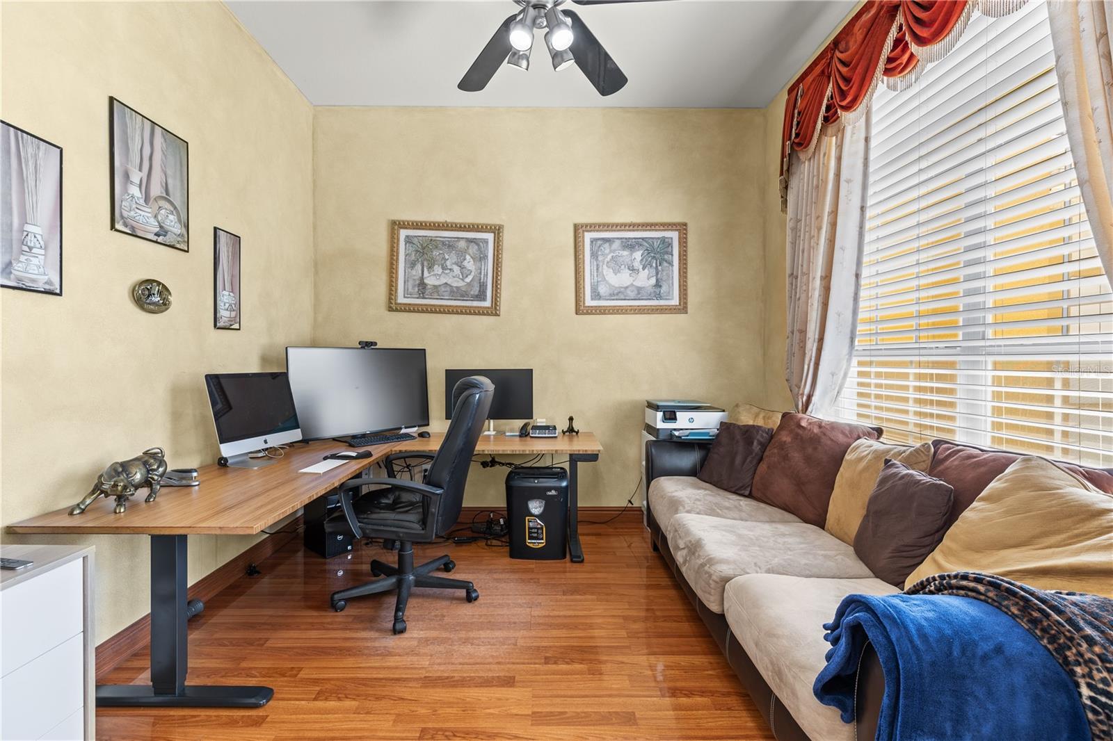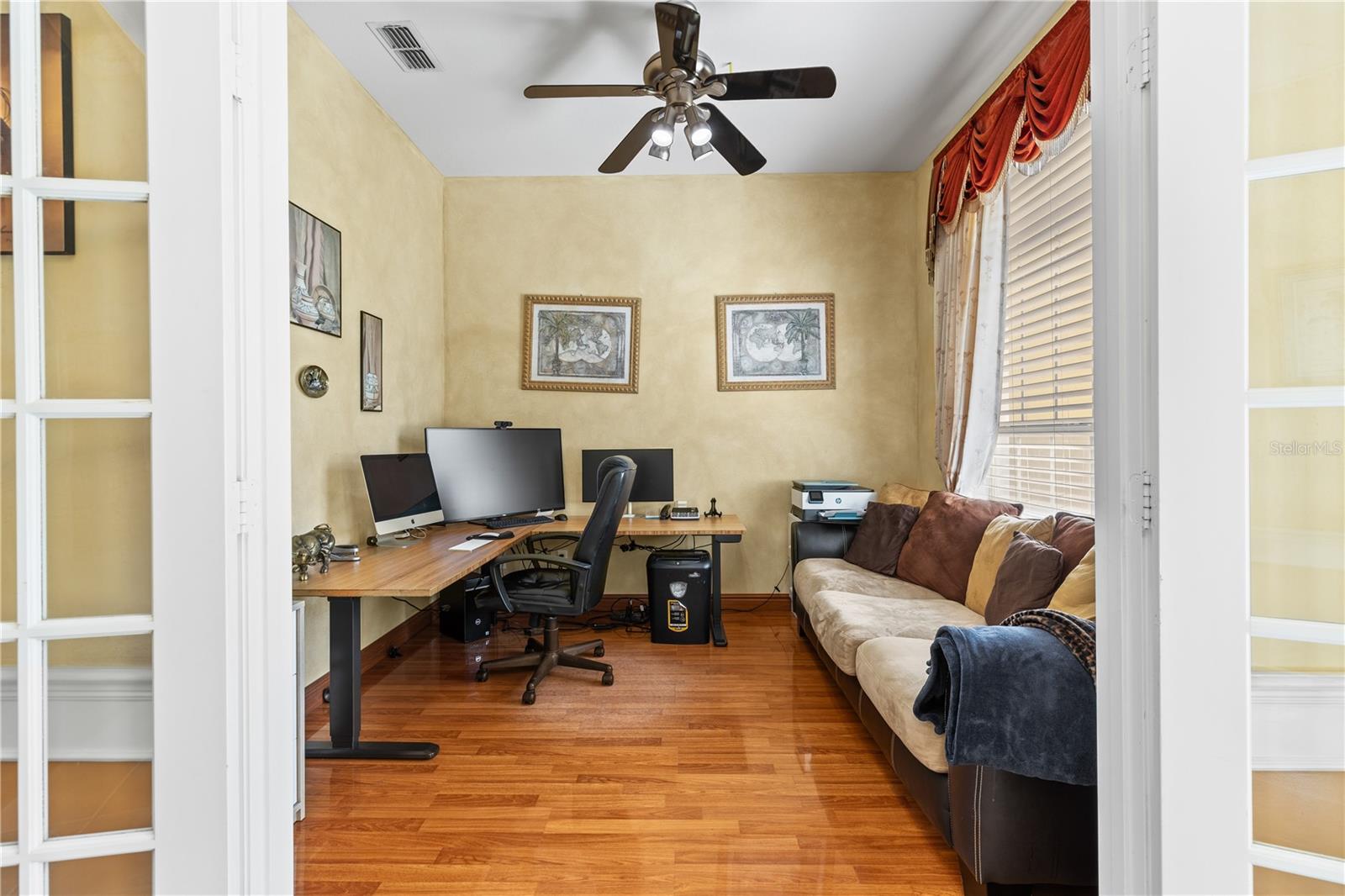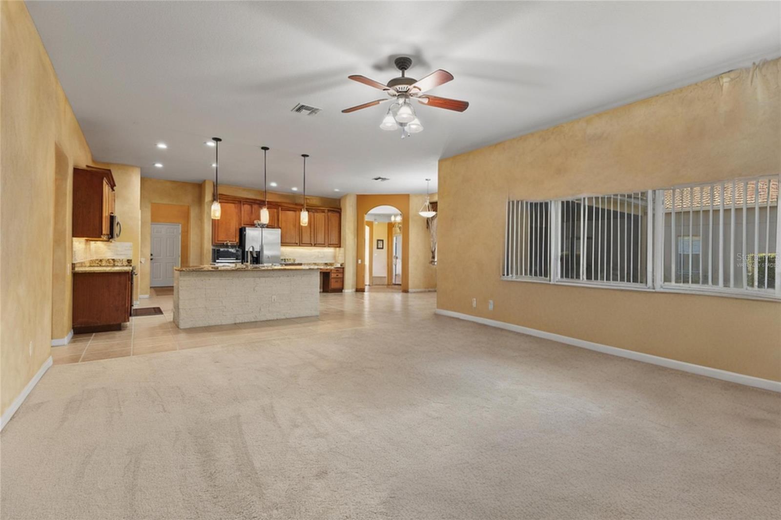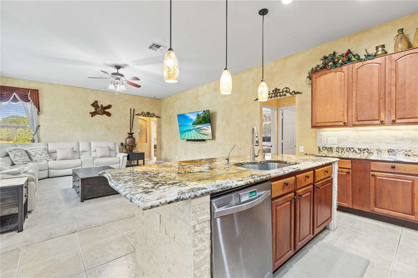 HUGE PRICE IMPROVEMENT!! SELLER MOTIVATED! Welcome to Glenmuir, one of Windermere’s most sought-after communities, where an elegant entrance sets the tone for this stunning tile-roof ranch home on an oversized 0.37-acre lot. Located within the zone of top-rated public schools and just minutes from Windermere Preparatory School, this home offers an excellent educational environment alongside luxury and convenience. Spanning 3,080 sq. ft., this thoughtfully designed 4-bedroom + den, 3.5-bathroom home boasts a spacious 3-car garage and an oversized driveway that can accommodate up to 9 vehicles. The open split-floor plan invites natural light and seamless flow throughout. Step through the elegant glass double doors into a welcoming foyer, where the custom-painted living and dining rooms create a refined ambiance. Adjacent to the dining area, a butler's pantry and half bath add both functionality and charm. To the right, a private den/office with French doors and an uplift standing desk provides the perfect space to work from home. The primary suite is generously sized and features a spa-like ensuite with a walk-in shower, soaking tub, double vanity, and large walk-in closet. The recently remodeled gourmet kitchen is a true showstopper, featuring exotic granite countertops, an island, 42” Cherrywood cabinets, ample storage, and stainless steel appliances. The breakfast nook seamlessly connects to the spacious family room, enhanced by a Samsung 75” wall-mounted TV and a sectional leather sofa, both included in the sale. A thoughtfully designed layout ensures privacy, with a guest suite offering an en-suite bath with pool access, while the remaining two bedrooms share a well-appointed third full bath. Additional highlights include a large laundry room with a Whirlpool Duet washer & dryer, cabinet storage, and a cooking range hookup, plus a whole-house water softener, reverse osmosis water filter, and rain gutters. Step outside to your backyard oasis, where a spacious screened-in patio overlooks two serene ponds, creating a tranquil setting with ample room to build your dream pool. The lush landscaping is a gardener’s paradise, featuring 3 mature mango trees, a jackfruit tree, banana trees, persimmon, lychee, fig, Hass avocado, sugar apple, and vegetable beds—a rare find! Additional upgrades include two A/C units (one replaced last year) and two Ring security cameras for added peace of mind. Majority of the furniture is negotiable if the buyer is interested (see the attached list for details). MOVE-IN READY—No stairs to climb, just plenty of space to spread out and enjoy! Don’t miss this incredible opportunity—schedule your private showing today!