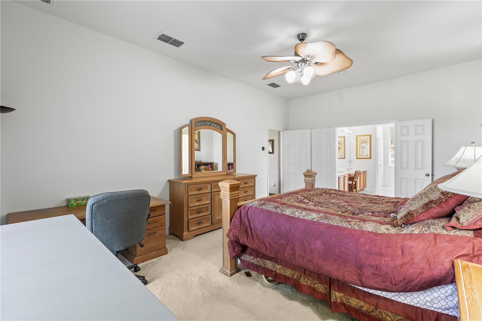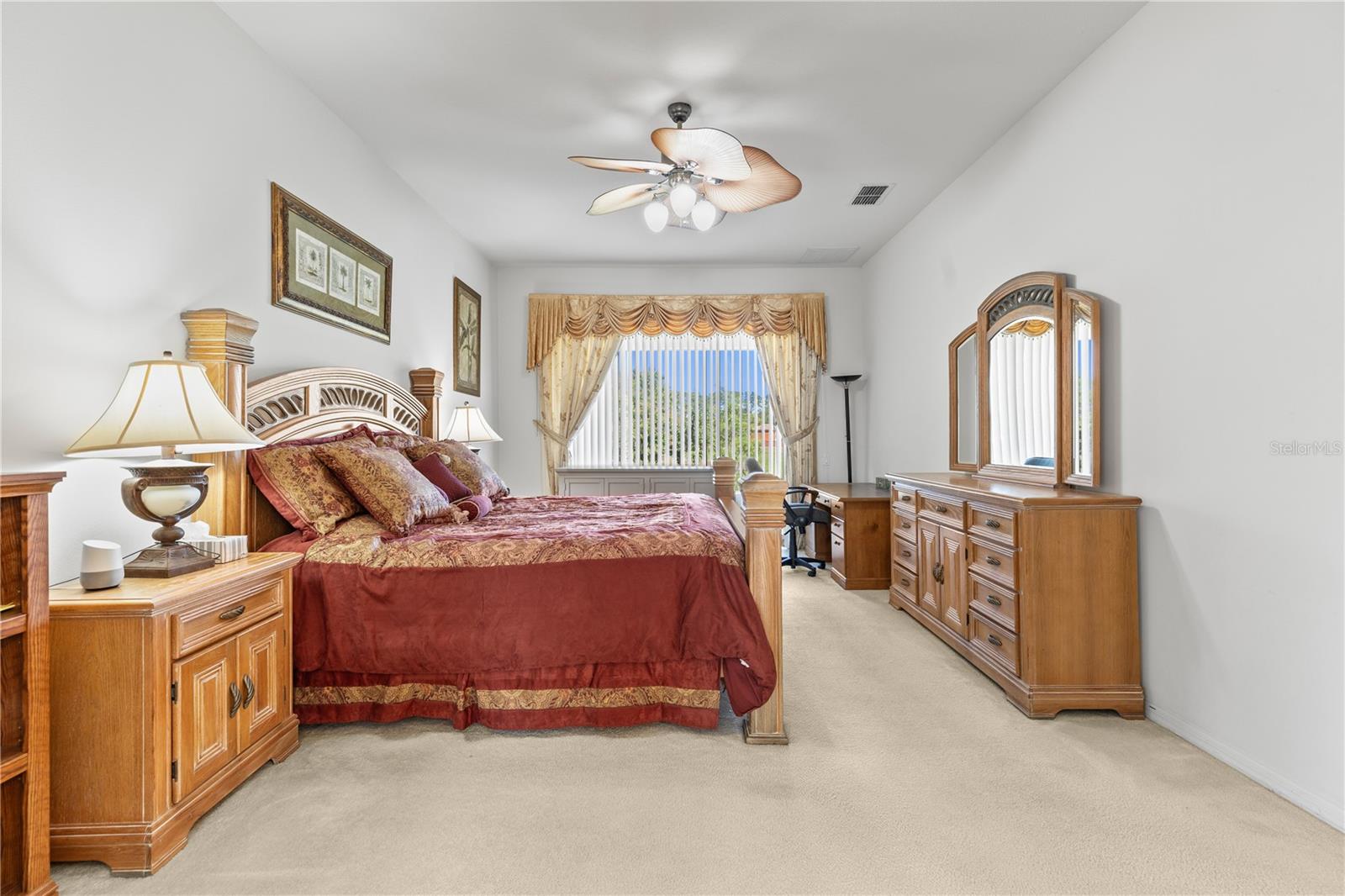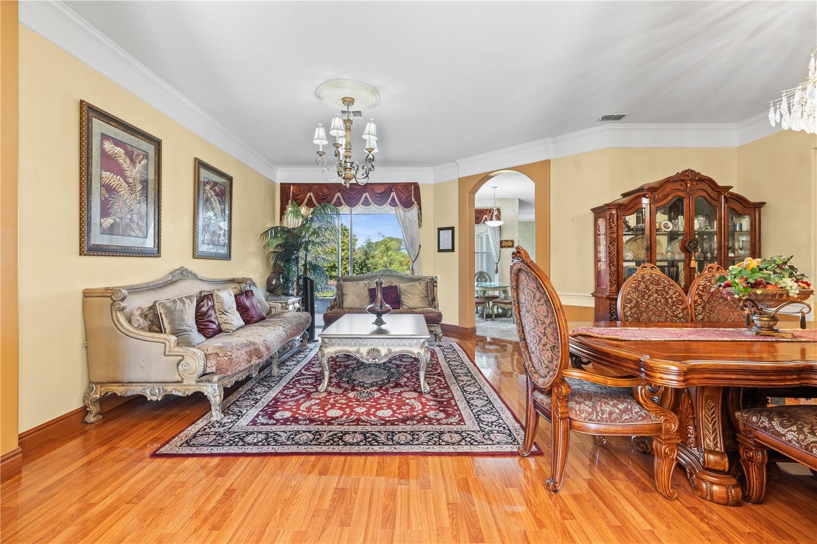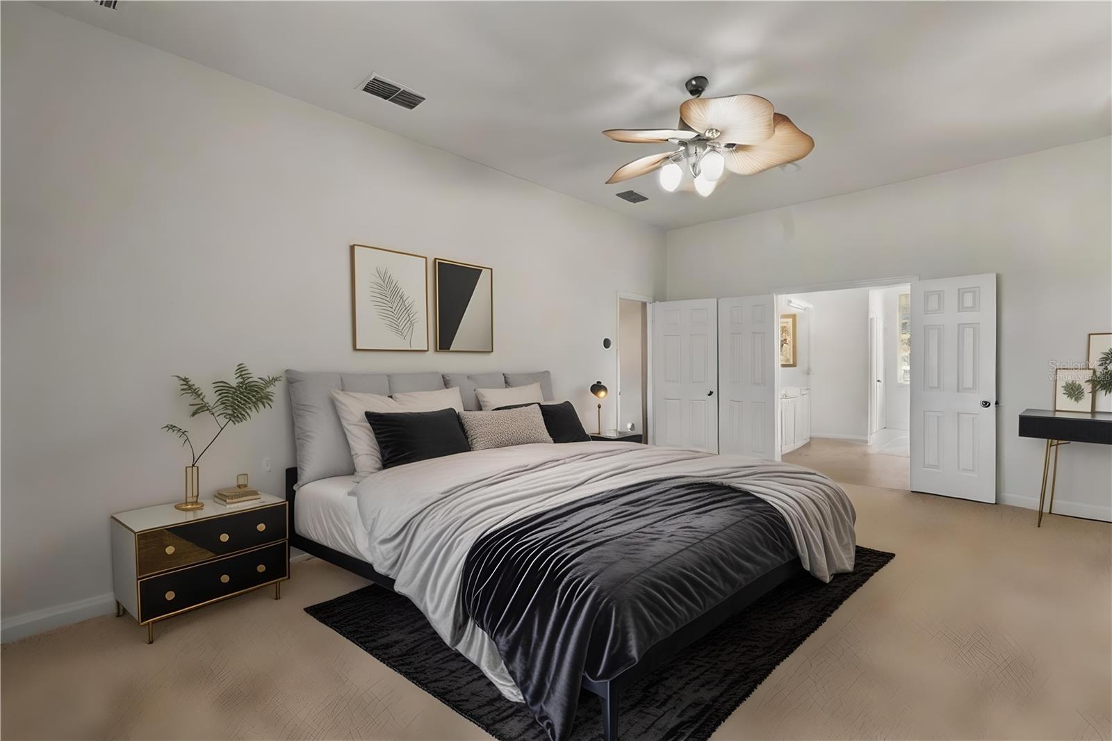 HUGE PRICE IMPROVEMENT!! SELLER MOTIVATED! Welcome to Glenmuir, one of Windermere’s most sought-after communities, where an elegant entrance sets the tone for this stunning tile-roof ranch home on an oversized 0.37-acre lot. Located within the zone of top-rated public schools and just minutes from Windermere Preparatory School, this home offers an excellent educational environment alongside luxury and convenience. Spanning 3,080 sq. ft., this thoughtfully designed 4-bedroom + den, 3.5-bathroom home boasts a spacious 3-car garage and an oversized driveway that can accommodate up to 9 vehicles. The open split-floor plan invites natural light and seamless flow throughout. Step through the elegant glass double doors into a welcoming foyer, where the custom-painted living and dining rooms create a refined ambiance. Adjacent to the dining area, a butler's pantry and half bath add both functionality and charm. To the right, a private den/office with French doors and an uplift standing desk provides the perfect space to work from home. The primary suite is generously sized and features a spa-like ensuite with a walk-in shower, soaking tub, double vanity, and large walk-in closet. The recently remodeled gourmet kitchen is a true showstopper, featuring exotic granite countertops, an island, 42” Cherrywood cabinets, ample storage, and stainless steel appliances. The breakfast nook seamlessly connects to the spacious family room, enhanced by a Samsung 75” wall-mounted TV and a sectional leather sofa, both included in the sale. A thoughtfully designed layout ensures privacy, with a guest suite offering an en-suite bath with pool access, while the remaining two bedrooms share a well-appointed third full bath. Additional highlights include a large laundry room with a Whirlpool Duet washer & dryer, cabinet storage, and a cooking range hookup, plus a whole-house water softener, reverse osmosis water filter, and rain gutters. Step outside to your backyard oasis, where a spacious screened-in patio overlooks two serene ponds, creating a tranquil setting with ample room to build your dream pool. The lush landscaping is a gardener’s paradise, featuring 3 mature mango trees, a jackfruit tree, banana trees, persimmon, lychee, fig, Hass avocado, sugar apple, and vegetable beds—a rare find! Additional upgrades include two A/C units (one replaced last year) and two Ring security cameras for added peace of mind. Majority of the furniture is negotiable if the buyer is interested (see the attached list for details). MOVE-IN READY—No stairs to climb, just plenty of space to spread out and enjoy! Don’t miss this incredible opportunity—schedule your private showing today!
