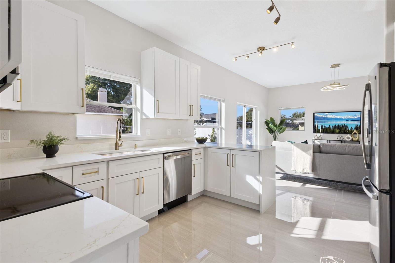 LUXURY RENOVATED 4-BED HOME WITH NEW ROOF + AC — OVERSIZED 3-CAR GARAGE — MOVE-IN READY This beautifully renovated 4-bed, 2.5-bath single-family home in the heart of Winter Garden (34787) is truly move-in ready — offering a luxury 2025 redesign from top to bottom. Located in the highly desirable Golf Cart District, this home sits on a quiet cul-de-sac just minutes from Downtown Winter Garden, Plant Street Market, and the West Orange Trail. The interior features a bright open floor plan with dramatic double-height ceilings, brand-new tile flooring downstairs and durable LVP upstairs, all-new baseboards and trim, and a fully updated 2025 kitchen with stone countertops and modern cabinetry. The spa-style primary suite includes two walk-in closets, a glass walk-in shower, and a soaking tub. Major upgrades include a new roof, new AC, updated electrical and plumbing, and fresh exterior paint — making this home feel like new construction. The oversized 3-car garage provides rare extra storage and golf cart space. Only 4 minutes to Newton Park with a public boat ramp — perfect for lake access, sunsets, and outdoor recreation. Schedule your private showing today!