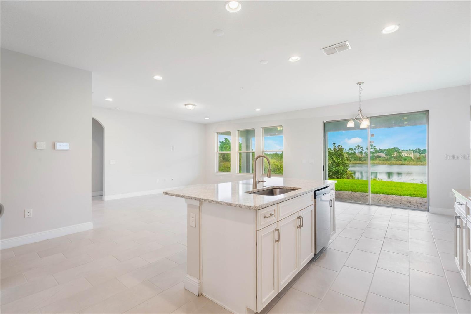 PRICE IMPROVEMENT! Fabulous Torrey model with stunning water views and amazing Disney fireworks! This spacious 5 bedroom, 4 1/2 bath home has room enough for everyone! The open concept gourmet kitchen comes complete with a butler pantry, beautiful stone countertops, and large island. Transitioning from kitchen to family room and lania is a breeze as the open floor plan and generous room sizes are a welcome theme throughout the home. A first floor guest bedroom and full bath is both accommodating and wonderfully private! Heading upstairs is also a delight! The massive loft is nicely bordered with three guest bedrooms, each one ample in size and comfort. The primary suite and private bath boast incredible sunrise lake views each morning! The Waterleigh amenities include 2 beautiful clubhouses with resort style pools, fitness centers, putt-putt golf, beach volleyball, tennis, lake view BBQ/picnic area, and dog park. Call and schedule a private tour today! You won't be disappointed!!