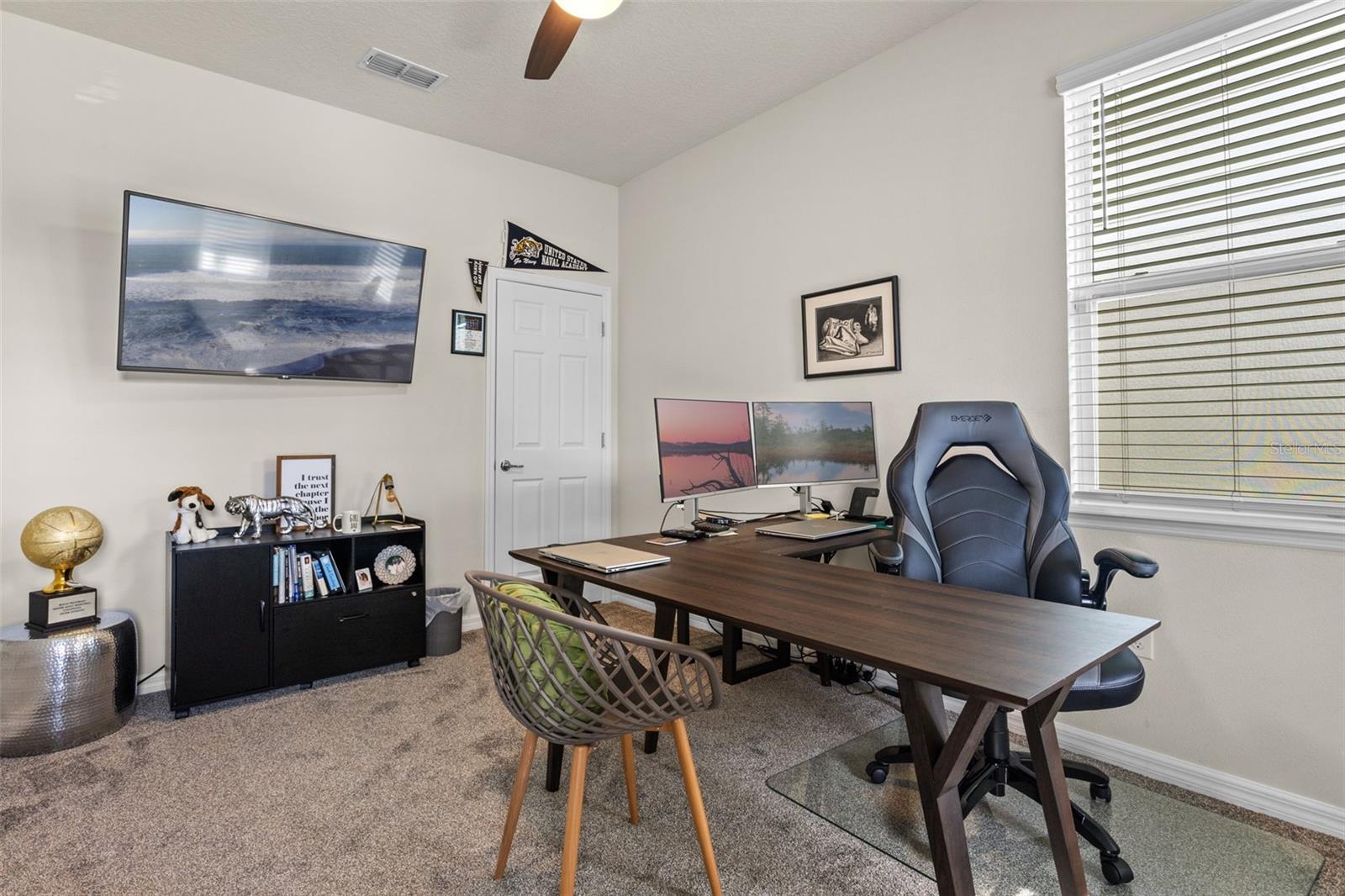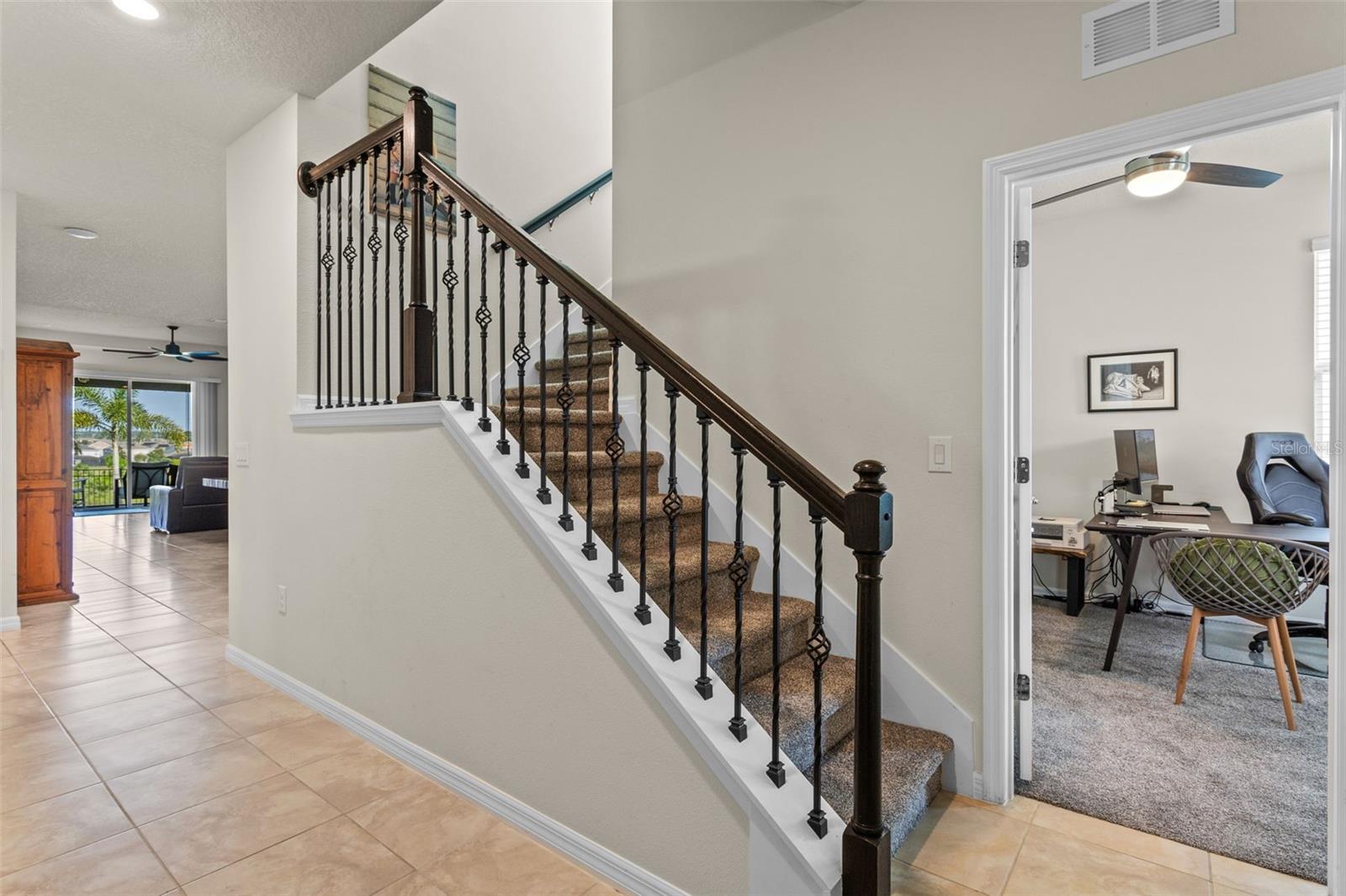 Welcome to this beautifully maintained, PRICED to SELL, 5-bedroom, 3-bathroom home nestled in a desirable GATED community with Community POOL and Fitness Center. Enjoy ultimate privacy with NO REAR neighbors and serene views of a lush conservation area—all from the comfort of your screened-in patio, perfect for relaxing or entertaining. The home features a thoughtfully designed split layout, including a private upstairs 5th bedroom with en-suite bath—ideal for guests, a teen suite, or bonus room. Freshly installed Brand-New Carpet throughout brings a clean, modern feel to this spacious home. Don’t miss the opportunity to own this peaceful retreat with gated security, natural views, and flexible living space.