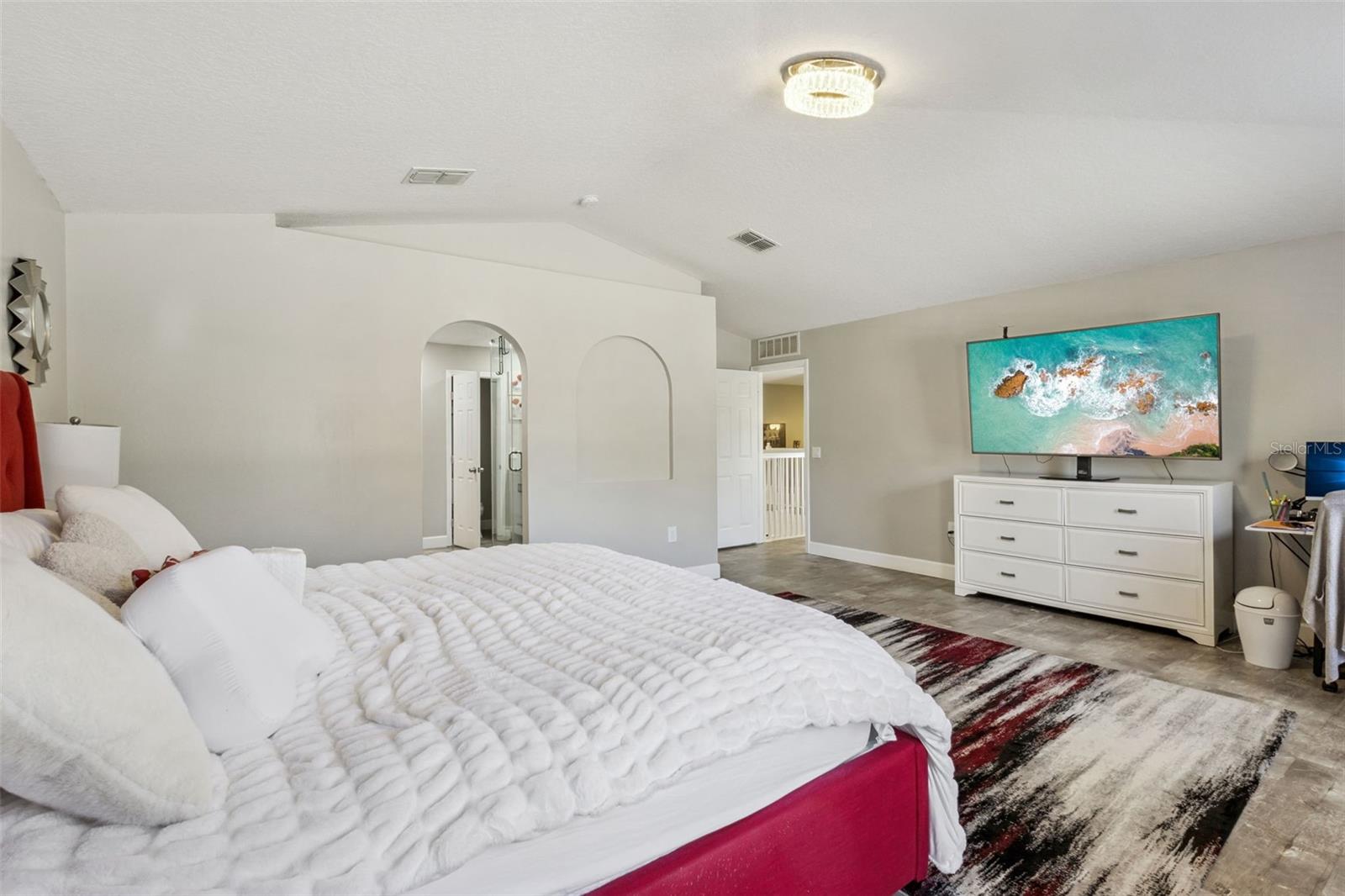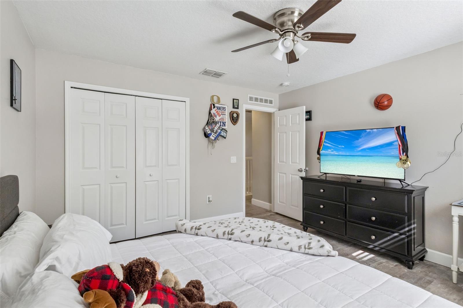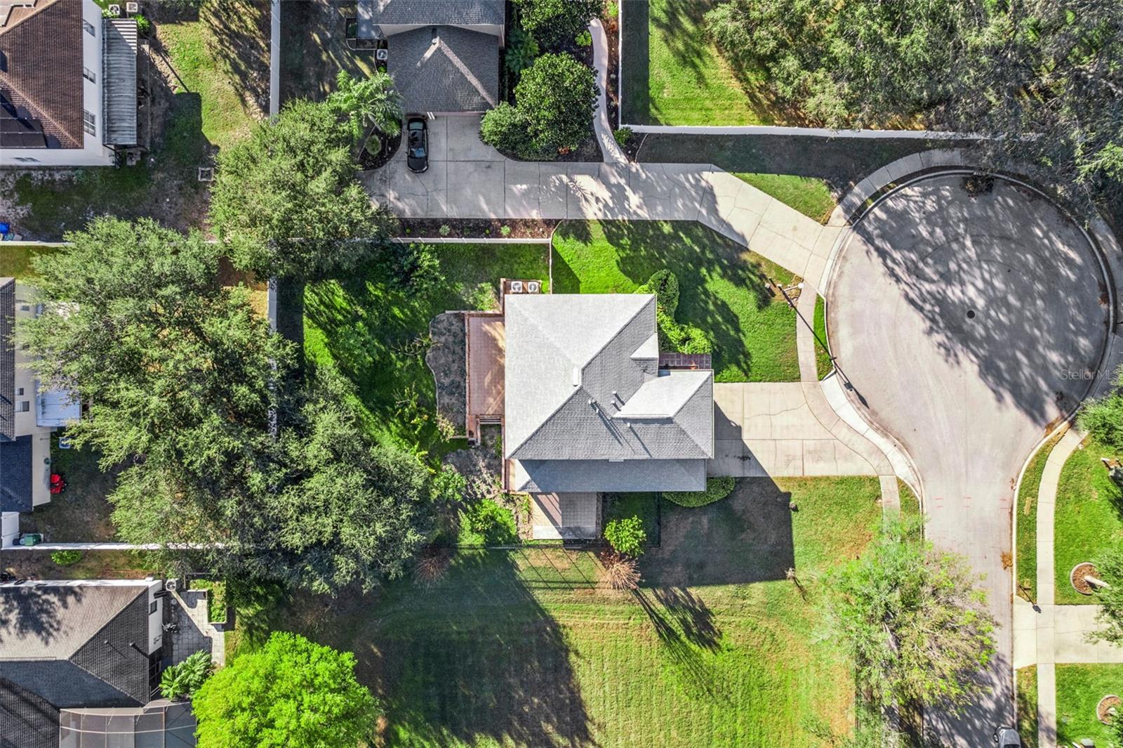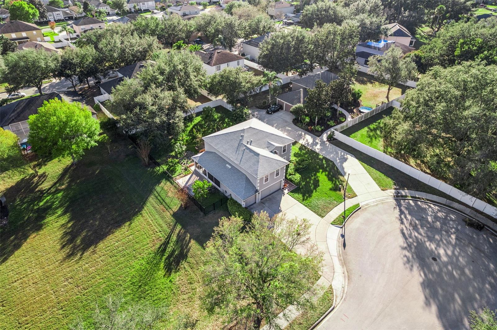 Beautifully appointed and thoughtfully updated, this 5-bedroom, 3.5-bath residence offers 2,868 sq. ft. of well-designed living space on an oversized cul-de-sac lot with serene retention pond views. Formal living and dining rooms create elegant spaces for entertaining, while the inviting family room flows seamlessly into the kitchen, making it ideal for everyday living. The kitchen is both stylish and functional, featuring granite countertops, 42" cabinets, stainless steel appliances, and a tile backsplash. All bedrooms are located upstairs, including the expansive primary suite with a spacious bedroom, dual walk-in closets, and an en suite bath with a double vanity and glass-enclosed walk-in shower. One guest bedroom features its own en suite bath, and all bathrooms throughout the home have been beautifully updated. Luxury vinyl flooring runs throughout the main living areas and bedrooms, and the home is equipped with a whole-house water treatment and softener system. Recent upgrades include new plumbing and a new roof in 2023, as well as a new A/C system with UV lighting installed in 2022. Enjoy outdoor living from the screened patio overlooking the fenced backyard—perfect for relaxing or entertaining. Ideally located just minutes from shopping, dining, major roadways, and Downtown Winter Garden, this home offers the perfect blend of space, comfort, and convenience. Schedule your private showing today before it's gone! *Aerial photo property lines are an estimate and to be verified by buyer.