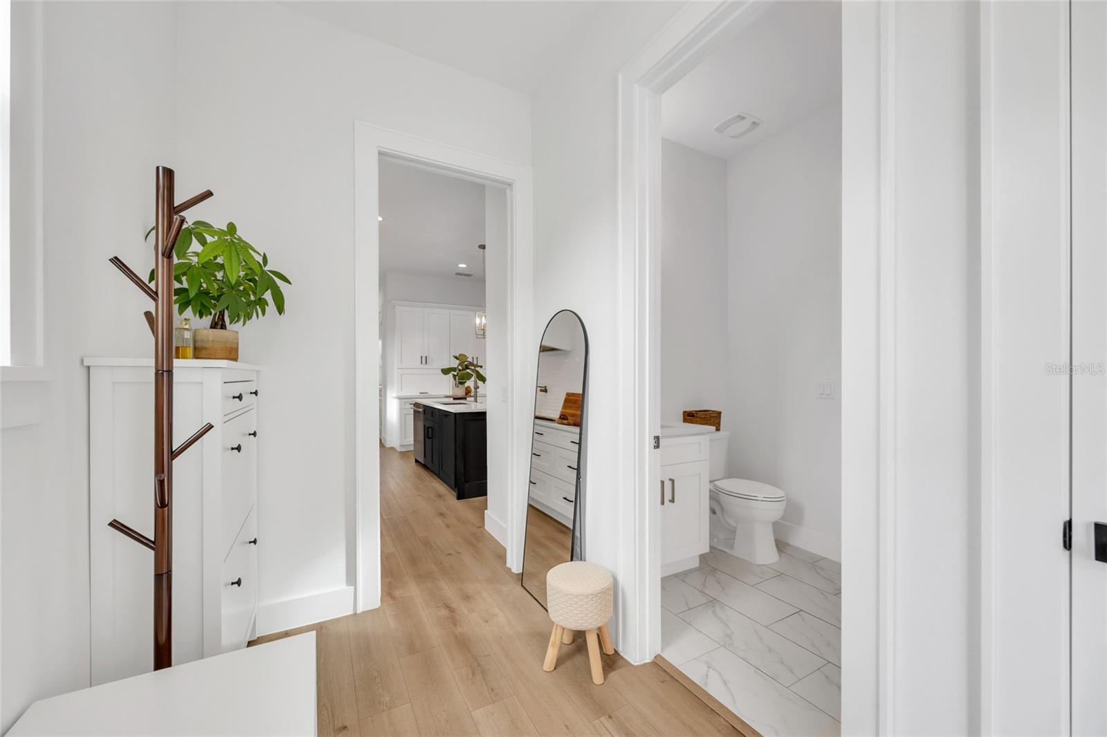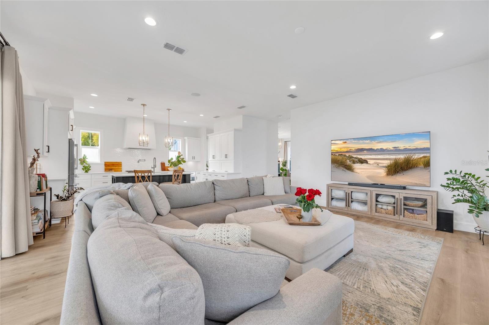Step into a custom residence where calmness, grace, and thoughtful design greet you from the moment you arrive. In the quiet part of community, overlooking peaceful pond views, this luxury home features an open, airy floor plan filled with natural light, upscale laminate planks throughout, large lot. The gourmet kitchen is a true centerpiece here, offering a commercial-grade hood ideal for entertaining, gas stove, Bosch appliances, pot filler, walk-in pantry, and an appliance garage. The living area flows seamlessly to the outdoors through fully retractable sliding glass doors, complemented by surround sound and custom-tinted windows for comfort and privacy. With 4 bedrooms and 3 full baths—including one with direct patio access—the layout is designed for both convenience and flexibility. One bedroom is located on the main level, while upstairs you’ll find a Jack-and-Jill setup and a spacious primary suite featuring a tray ceiling, spotlight accents, and a spa-inspired bath with walk-in shower, separate soaking tub, and a stunning built-in closet with natural light. An exceptional bonus is the private in-law suite above the garage, complete with its own kitchen, living area, bedroom, and stackable washer/dryer—perfect for guests or multi-generational living. The outdoor oasis is a destination of its own, surrounded by bamboo, olive, lime, and persimmon trees. The covered patio invites year-round enjoyment, and the fully fenced property offers privacy and space to unwind. From your backyard, you can even watch Space Shuttle launches light up the sky. Located in the highly desirable golf cart district, this home places you just a 2-minute walk from the West Orange Trail and only 3 miles from historic Downtown Winter Garden. Unbeatable location, unmatched lifestyle. Schedule your private showing today.