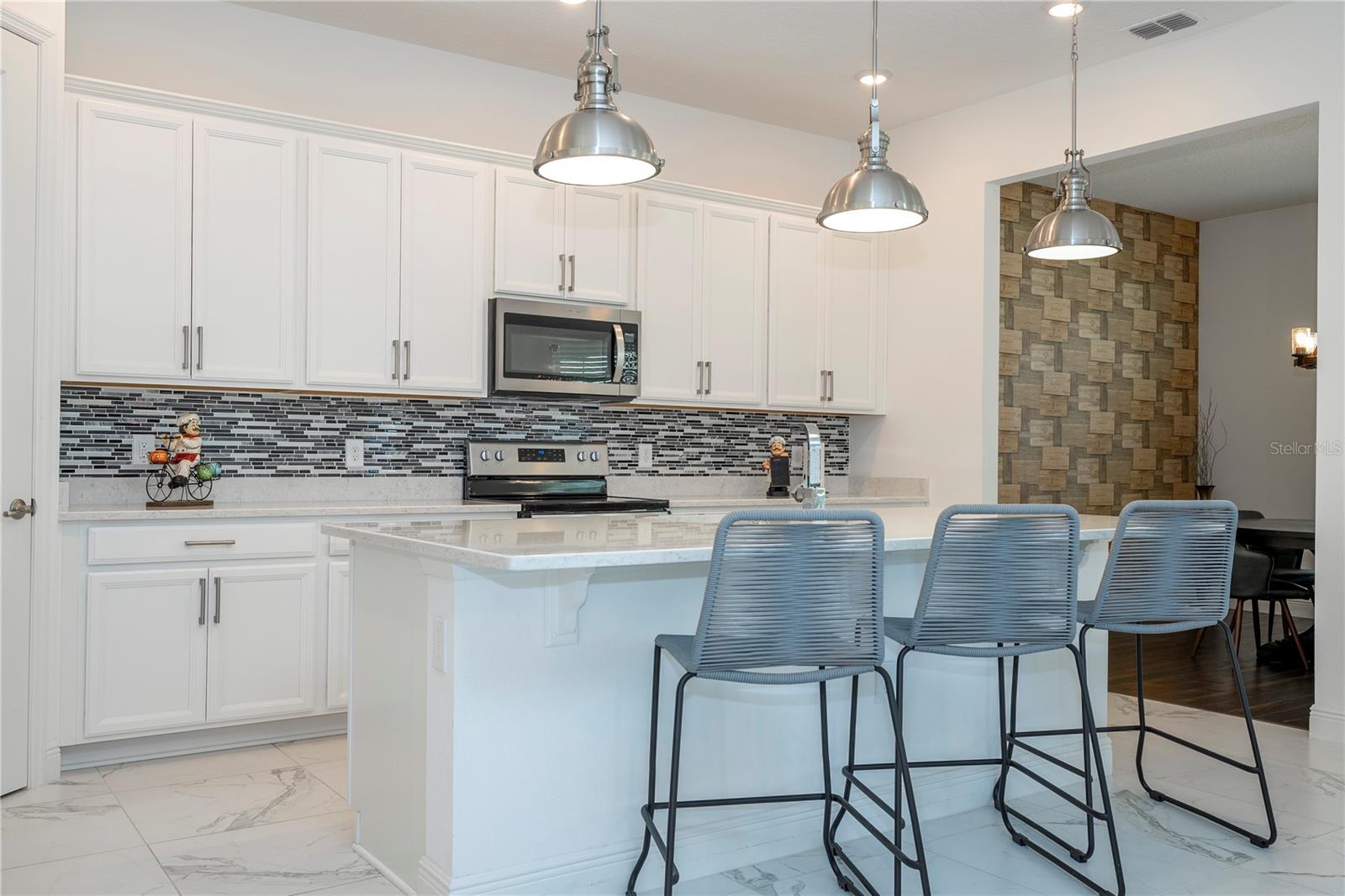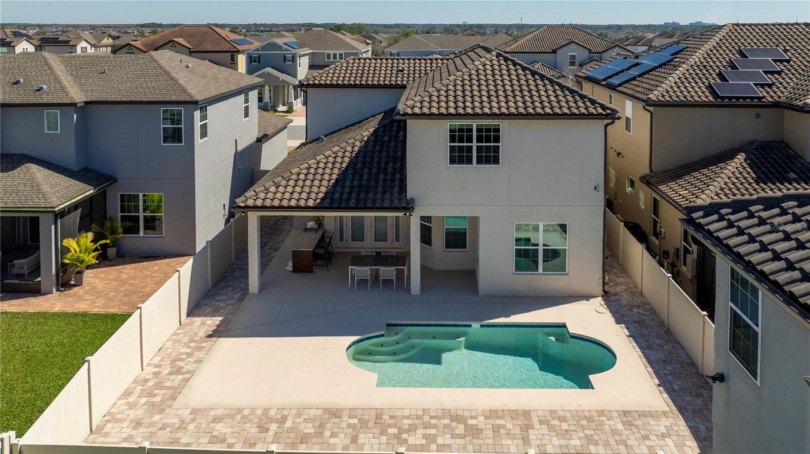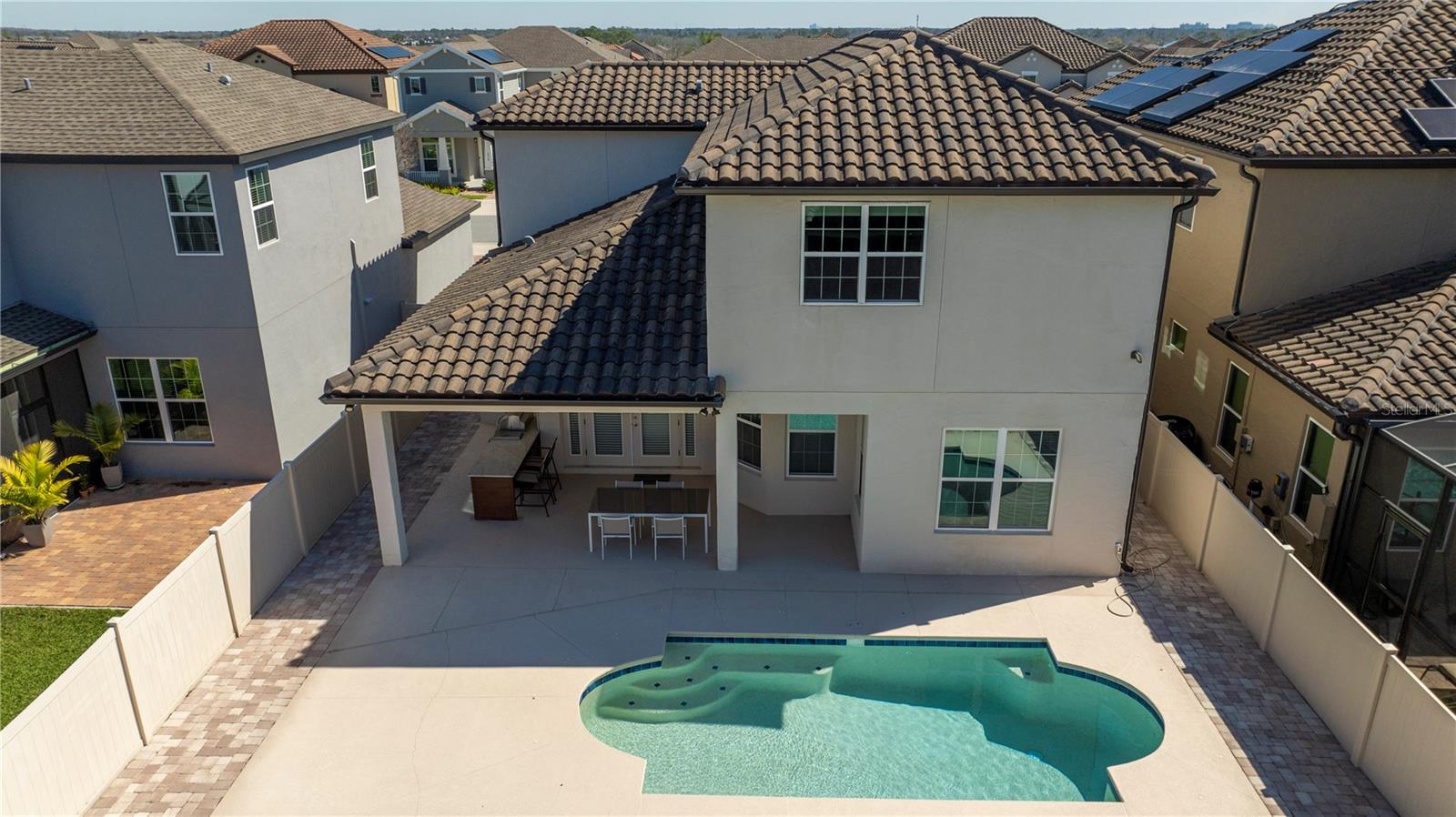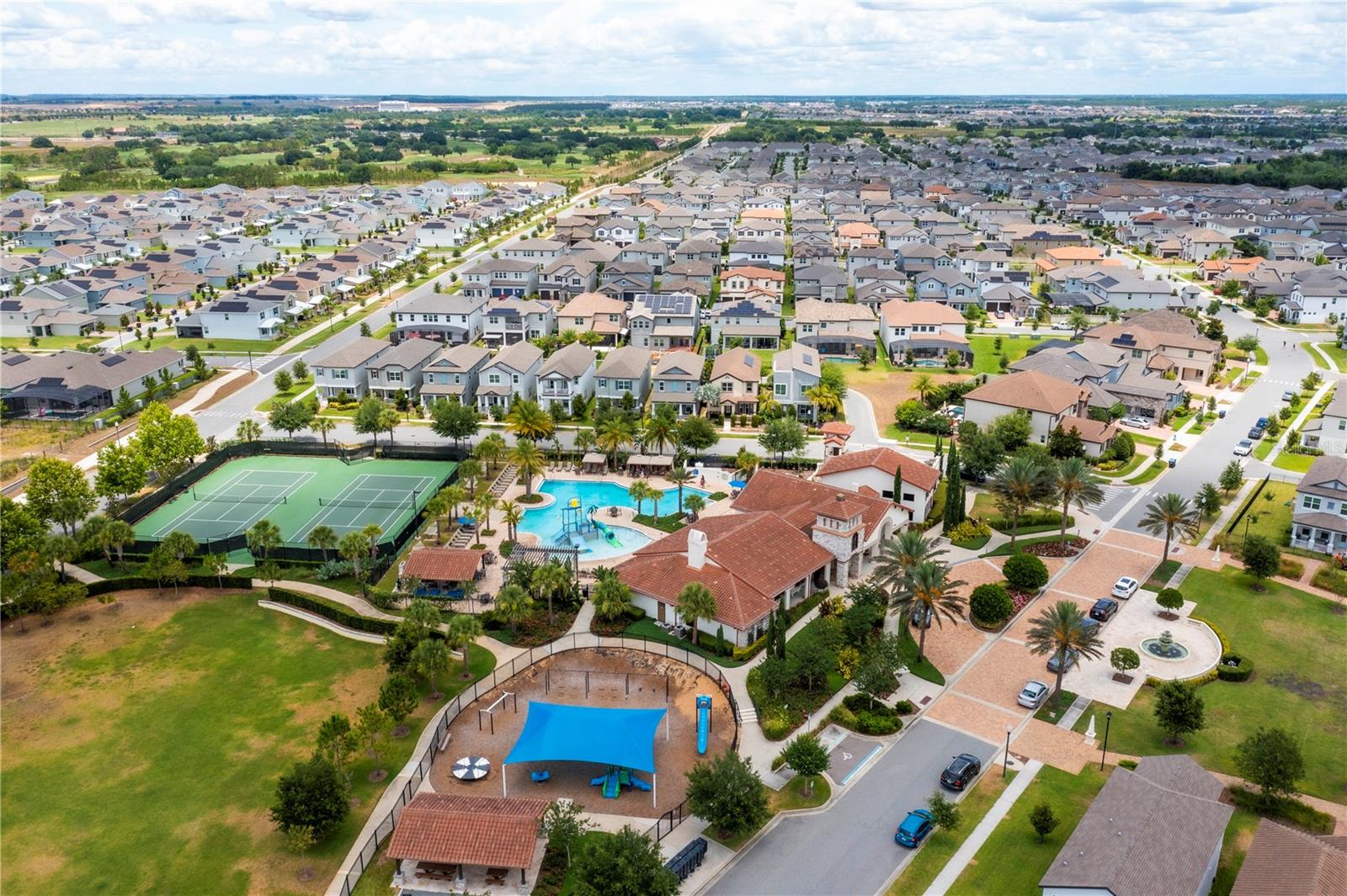 Welcome Home to Watermark. This beautiful community with Water Park, Tennis Court, Gym, Play area and lots of activities for entire Family located at Horizon West/ Hamlin, just two minutes from Disney, Orange County National Golf course and major highway. Elegant Thoreau Home with lots of upgrades. As you enter the open Foyer with beautiful porcelain floors throughout, a formal Living room and Dining Room. A spacious Family room with a Chef's Kitchen, large island quartz counter top a great place to entertain and a Nook for daily meals plus a Wine Room/ Home Office room. The Family room has surround sound ready for Movie Nights or a great Game day. The half bath has access to the pool. A designed outdoor Gourmet Kitchen/Grill by Elementar is the place for a Florida Day by the heated pool with Friends and Family. All Bedrooms are on the second floor. Spacious Master Suite with two walking closets nice size bathroom with duo showers , plus Jack & Jill Bedrooms, and the forth bedroom next to a third bathroom, an upstairs laundry room with laundry/utility sink plus washer & dryer included. Additionally, the water purification system hook up, and gutters recently installed. This is a fantastic opportunity to make this house your new Home! Come and visit this luxurious home and enjoy the lifestyle of Watermark at Horizon West.