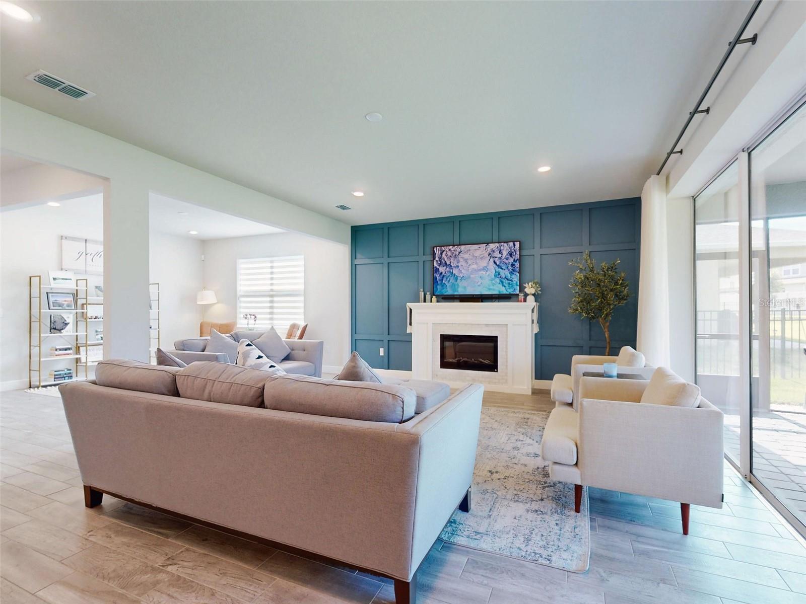 Welcome to your dream home, where luxury meets functionality! This exquisite property features a beautifully designed kitchen complete with a pantry showcasing custom organization solutions, making both storage and meal prep a breeze. The master bedroom boasts a spacious closet equipped with custom built-ins, ensuring ample storage in style. Enjoy cozy evenings in the inviting great room, featuring a built-in fireplace accented by a stunning wall that serves as the perfect focal point. Additional highlights include a water softener, a screened patio ideal for outdoor relaxation, and epoxy garage floors that add a polished touch. The modern kitchen is fitted with stainless steel appliances and elegant quartz countertops, making it a chef's delight. A versatile flex room and a dedicated office/den provide ample space for work or play. The oversized backyard offers a covered and screened porch, perfect for entertaining or enjoying quiet moments outdoors. Home furnishings were selected specifically for this home and are available for separate purchase. Not only does this home offer luxurious living, but it is also situated in a prime location within short driving distance to food, shopping, and downtown Clermont. The community boasts easy access to major highways, making commuting a breeze for busy professionals. In addition, the area is filled with shopping and dining options, providing convenience and entertainment at your fingertips.... and let's not forget the stunning St. John's Lake offers endless opportunities for outdoor activities. Located in a vibrant community with a security gate, clubhouse, pool, fitness center, splash pad, and access to St. John’s Lake, this home offers an unbeatable lifestyle. No expenses have been spared in upgrades, making this residence truly exceptional. Don't miss the opportunity to call this remarkable property yours!