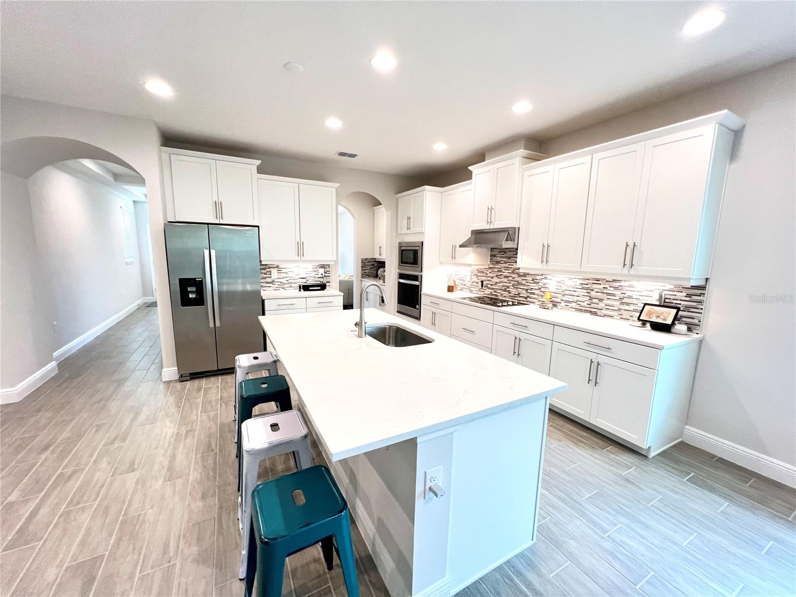 If you enjoy Amazing Sunsets over the water then..Here is your new home! This Sea Cliff model is a beautiful 4 bedroom 3.5 bath home with a spacious entry featuring tray ceilings, Formal dining room or possible flex space for entertaining. Gourmet kitchen features stainless steel appliances, smooth stone counter tops, and glass tile back splash, as well a convenient butlers pantry. Big comfy family room opens up to the covered lanai and landscaped back yard----all overlooking the lake! Owners retreat is on first floor with a huge walk-in closet, outstanding owner's bath with large walk in shower, tub and his and hers vanities. Waterleigh is a master planned community offering 2 stunning clubhouse's with resort style pools, fitness centers, putt putt golf, beach volleyball, tennis, pickle ball, BBQ/picnic areas, playground, dog park and more.