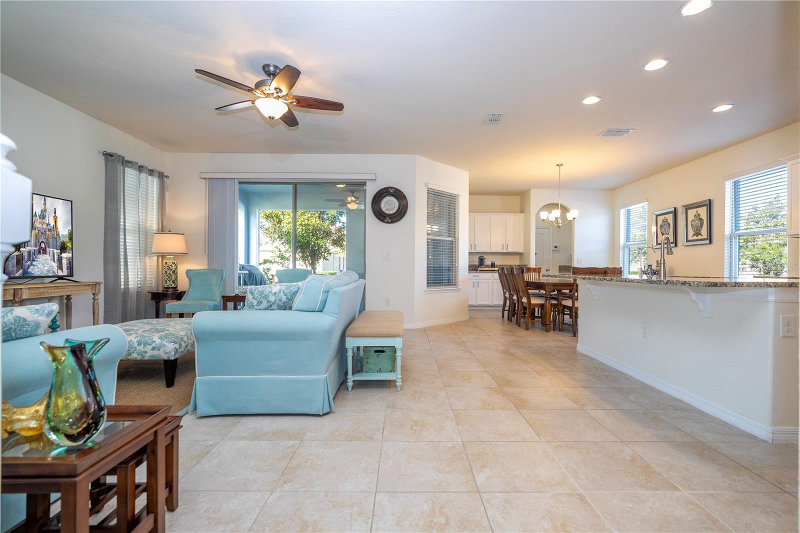 Welcome to the lifestyle community of Waterleigh! This Clearden model is in a corner lot in the quiet Waterleigh Phase 1 - MARINA BAY with a few steps to the hickory Nut Lake to walk around and enjoy the beautiful views every day. You will be 15 minutes from the Disney Magic Kingdom and 5 minutes from Orange County National Golf Center. This house features 4 bedrooms/3.5 baths, a two-story home with a fresh exterior painting, a secondary suite on the first level (like a minimal in-law suite without a kitchen), and a half bathroom serving the first floor. The kitchen features stainless steel appliances, and granite countertops and opens to the large family room. The family room leads to a cozy lanai perfect for enjoying a serene time outside. Upon entering, you are greeted by an airy, bright interior featuring large windows that flood the space with natural light. The main floor connects the living room, dining area, and gourmet kitchen, creating an ideal setting for daily living and entertaining guests. The main bedroom, two secondary bedrooms, laundry room, and loft can be found upstairs. The main bedroom offers an en-suite bathroom with a countertop vanity featuring double sinks, an oversized shower, and a designed built-in closet. All upstairs bedrooms include a walk-in closet and two designed built-in closets. The loft area leads to a spacious balcony that overlooks the street with beautiful trees. Waterleigh offers 3 clubhouses with 3 resort-style pools, 2 fitness centers, putt-putt golf, beach volleyball, tennis, lake view BBQ/picnic area, dog park, and more. Whether you want to settle down or expand your family, this residence promises to exceed your expectations of comfortable, modern living in a vibrant community setting with A+ rated elementary, middle, and high school nearby. Convenience is key, with a Publix supermarket right at the entrance of the community, perfect for quick grocery runs.