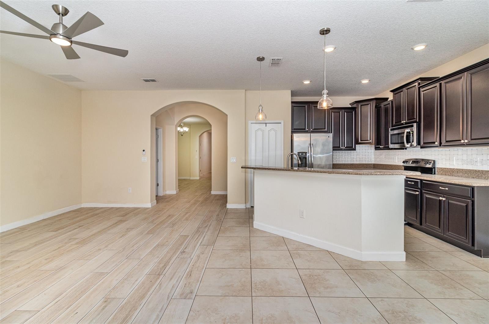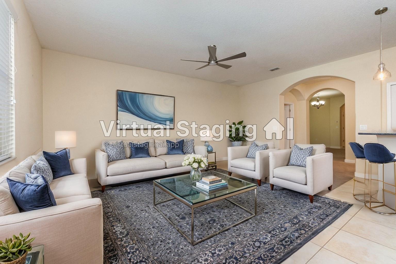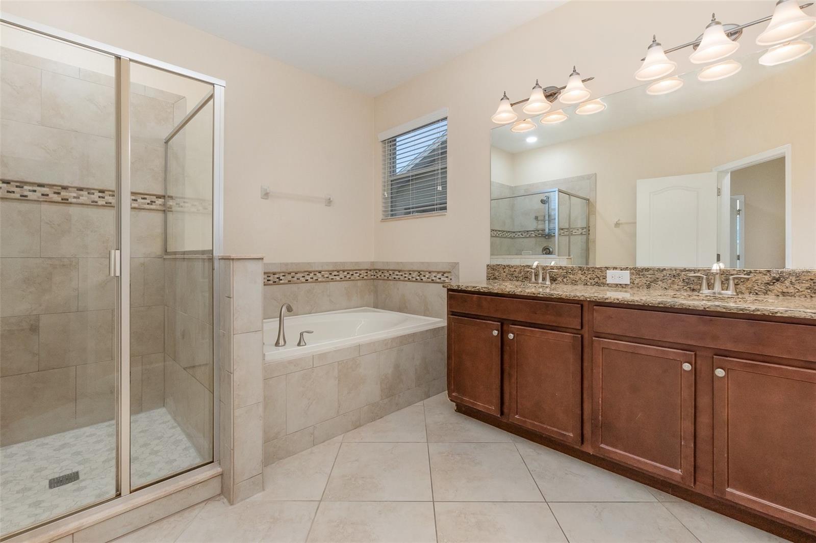 One or more photo(s) has been virtually staged. Rare Opportunity in Signature Lakes – Move-In Ready - New UPDATE : The living and dining rooms have been beautifully enhanced with BRAND NEW TILE flooring, offering a timeless, elegant look with lasting durability. 4-Bedroom Home! This stunning single-story home in the highly sought-after Signature Lakes/Independence community offers 4 spacious bedrooms and 2 bathrooms, blending comfort, style, and resort-style living. Step inside to an open floor plan featuring a beautifully upgraded bathroom, fresh exterior paint, and abundant natural light. The modern kitchen boasts an oversized island, breakfast bar, and stainless steel appliances, seamlessly flowing into the family room—perfect for entertaining. The private owner’s suite features a large walk-in closet, dual vanities, a luxurious garden tub, and a separate glass-enclosed shower, while the additional bedrooms are generously sized, with one offering direct access to a stylishly renovated full bath. Enjoy Florida living with a charming front porch and backyard oasis, ideal for relaxation. This vibrant community offers resort-style pools, tennis and basketball courts, scenic walking trails, two boat ramps, a fitness center, an arcade, and year-round community events. Located within walking distance to top-rated schools and just minutes from Hamlin Town Center, shopping, dining, and major highways, with easy access to Disney attractions, this home also includes HOA-covered cable and high-speed internet. Homes like this don’t last long—schedule your private tour today!