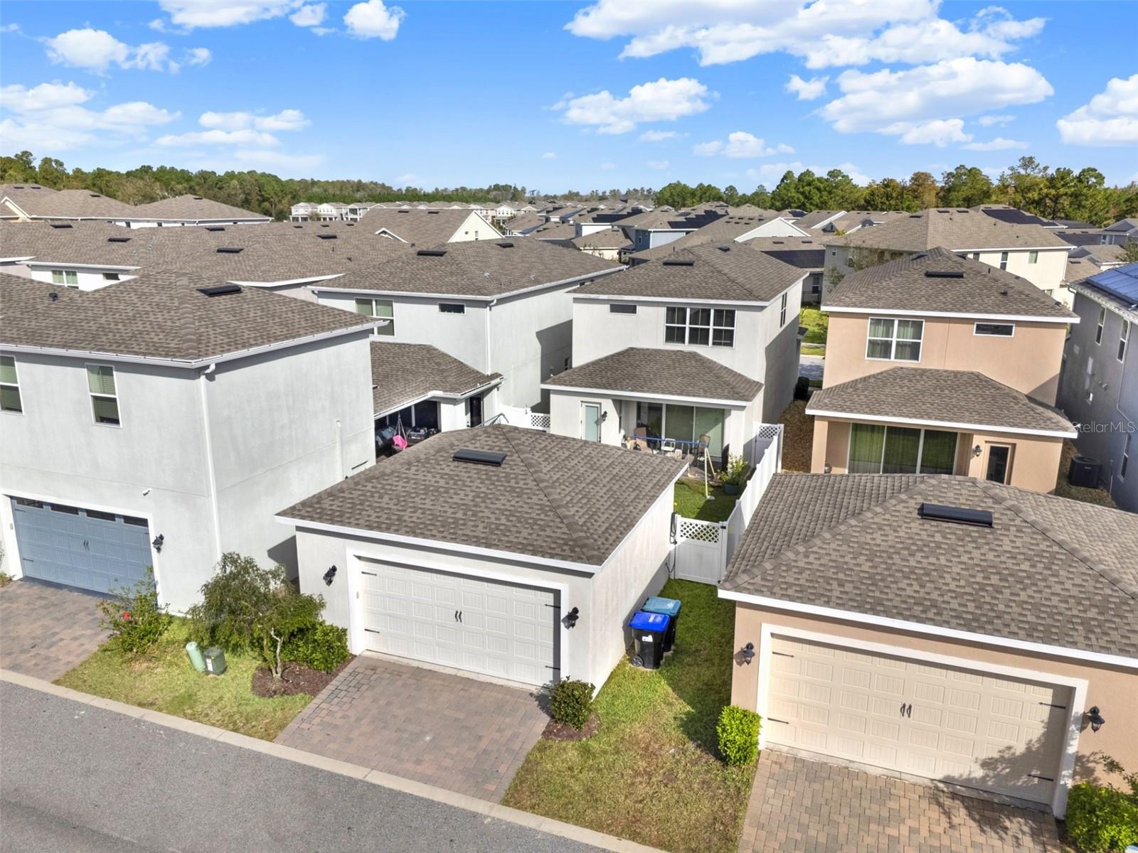 Welcome to this beautifully maintained 3-bedroom, 3-bathroom home offering a perfect balance of modern elegance and functional design. Nestled in a sought-after neighborhood, this home boasts a spacious layout and high-end finishes. As you step onto the charming front porch, you're welcomed into a bright and airy foyer that leads into an open-concept living and dining area designed for both comfort and entertaining. The gourmet kitchen is a chef’s dream, featuring sleek countertops, stainless steel appliances, a large island, and ample cabinet space. The inviting great room flows seamlessly into the dining area, making it the perfect space for gatherings. Step outside to the lanai, an ideal spot for relaxation and enjoying the fresh air. Upstairs, a spacious loft provides a second living area, media space, or playroom, offering endless possibilities. The owner’s suite is a true retreat, featuring a walk-in closet and a luxurious en-suite bath with dual sinks and a walk-in shower. Two additional bedrooms offer generous space, each with large closets and easy access to a full hall bath. The conveniently located laundry room on the second floor makes everyday living effortless. Additional highlights of this home include a DETACHED 2-CAR GARAGE with rear entry, modern craftsmanship, energy-efficient design, and an abundance of natural light throughout. Located in a prime area, this home is just minutes from shopping, dining, entertainment, and top-rated schools. Community amenities include parks, walking trails, and recreational spaces, making it a perfect setting for a vibrant and connected lifestyle. This immaculately maintained home is move-in ready and waiting for you to make it your own. Schedule your private tour today and experience the perfect blend of comfort, convenience, and modern living!