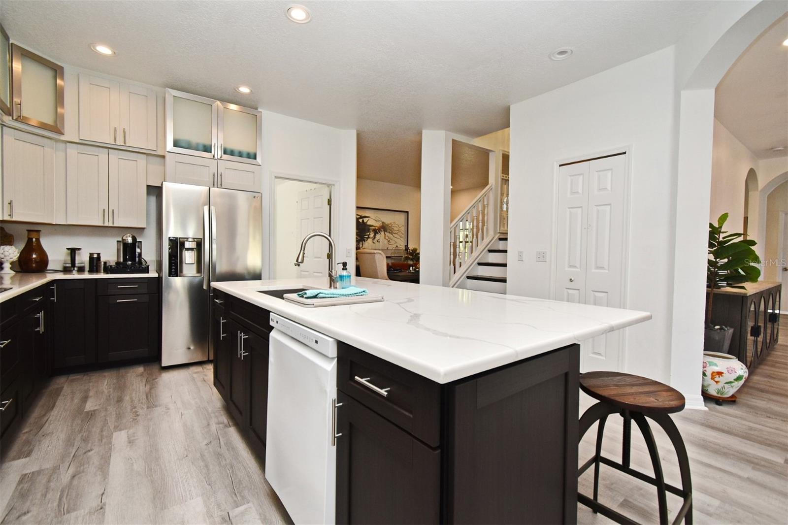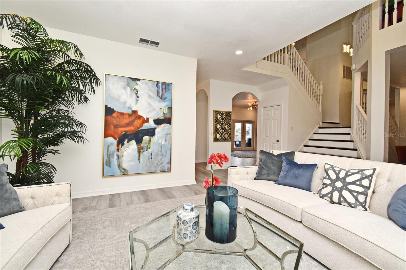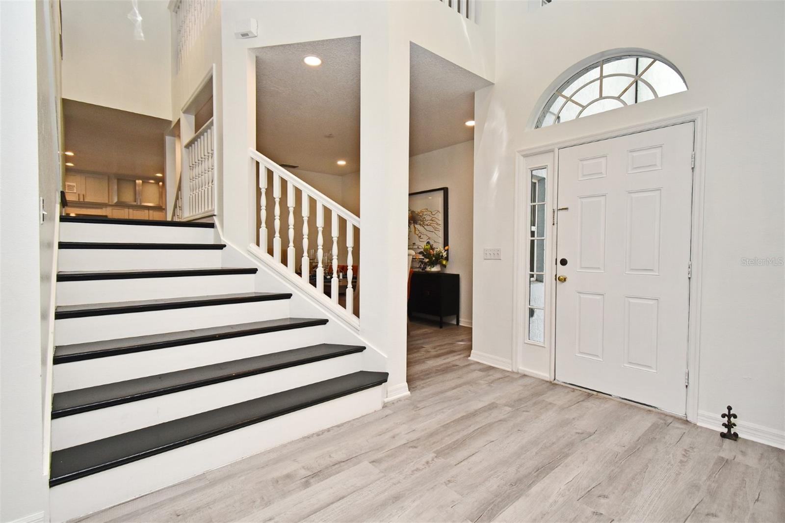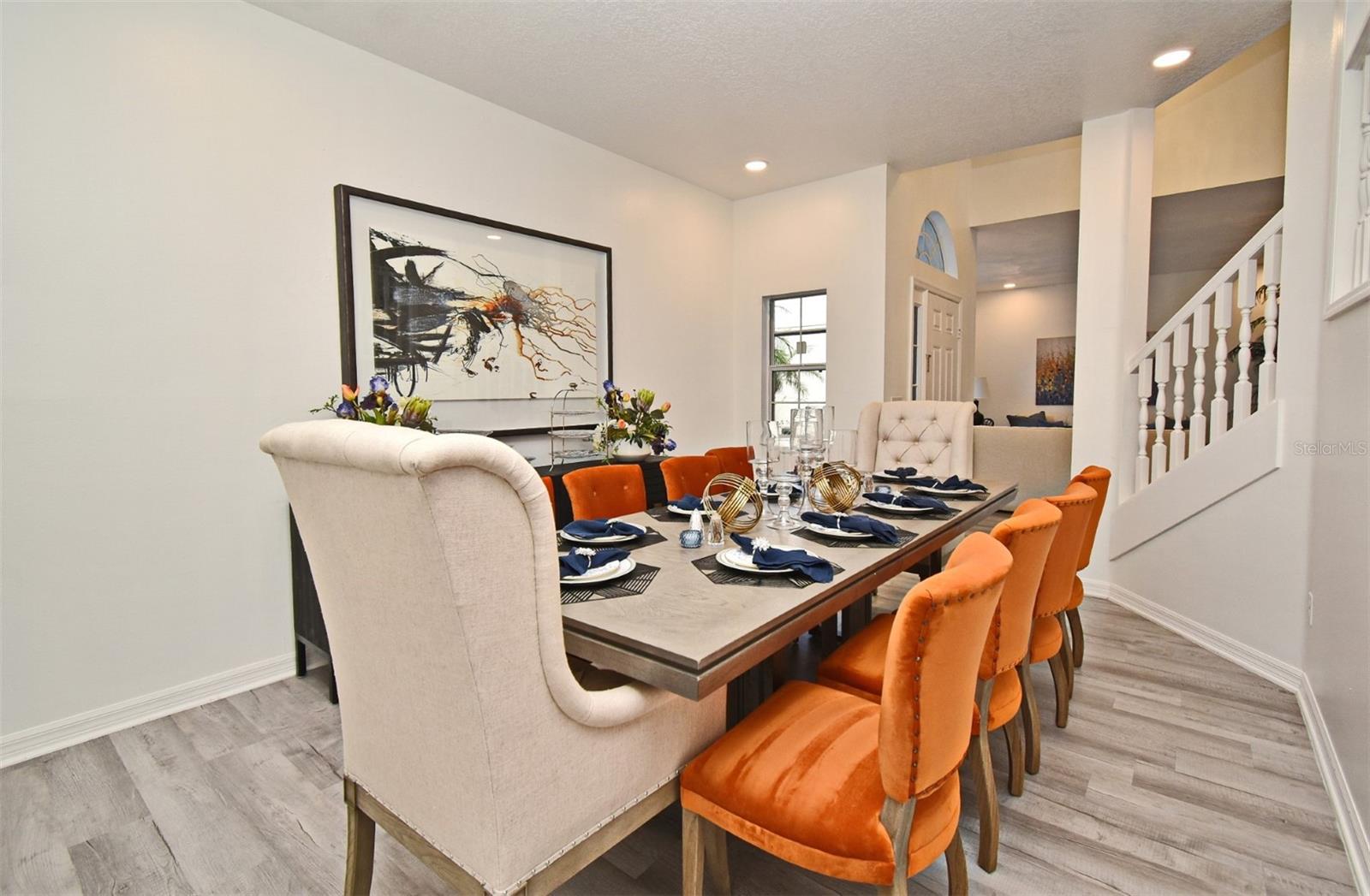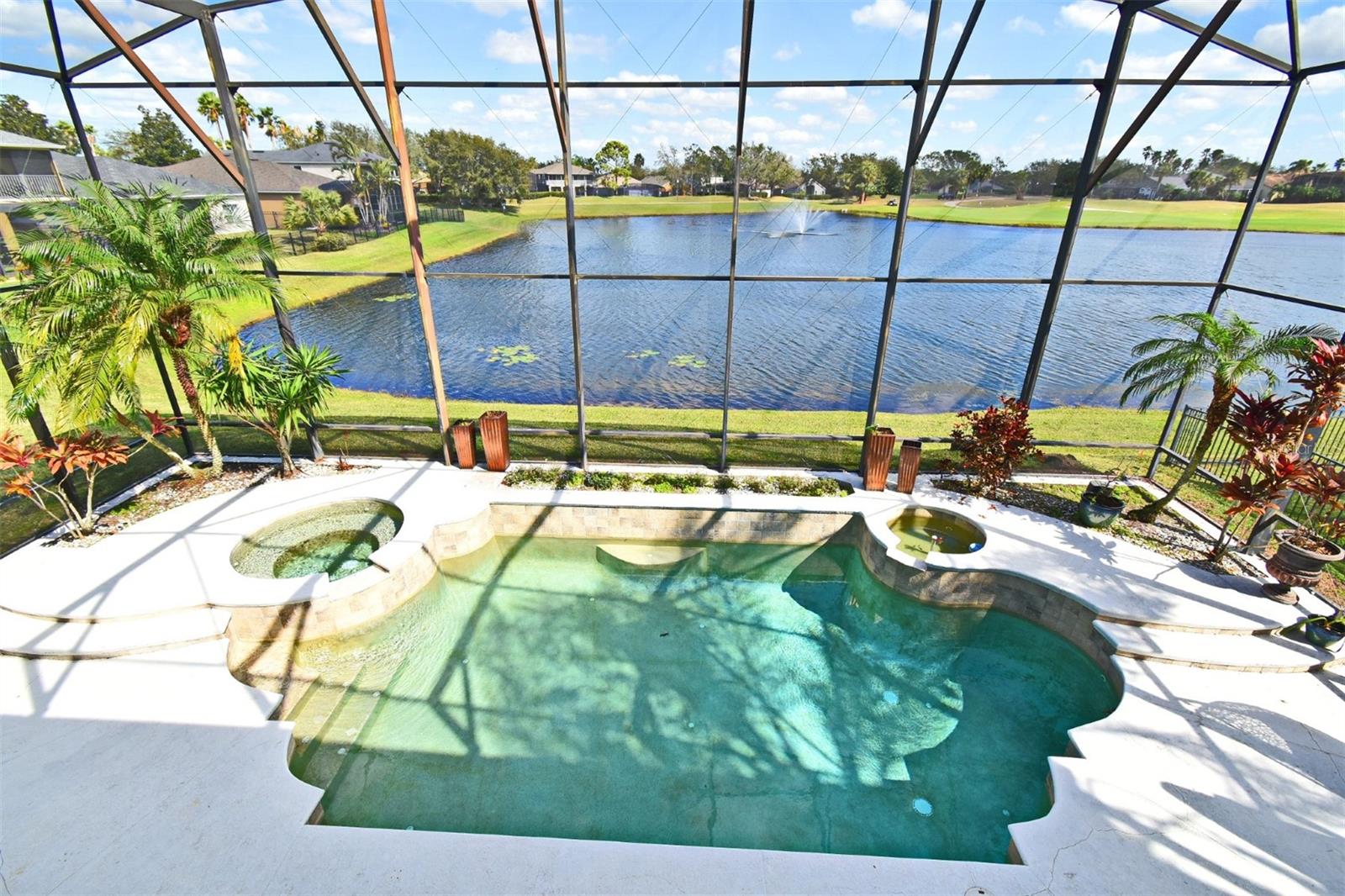 Welcome to 1215 Castleport Road, a beautiful 2-story single-family home nestled in a sought-after guard-gated community that combines tranquility with sophistication. This spacious property features four bedrooms and three bathrooms, offering the perfect blend of comfort and style. As you step through the front door, you are greeted by the warmth of vinyl plank flooring that seamlessly flows throughout the main living areas, creating a cohesive and inviting atmosphere and the plush carpeting in the bedrooms offers a cozy retreat. The heart of the home features a spacious and functional kitchen, complete with an abundance of cabinets to satisfy all your storage needs. Create amazing dinners to be served in your separate dining room or enjoy the space offered by your eat-in kitchen area. On the second floor, take advantage of the the large loft area plus a media room, allowing for a great movie theatre and flexible space. In addition, enjoy the comfort of your primary bedroom with an en-suite bathroom offering your escape with the jetted tub, separate from the shower. Step outside to your private oasis where a screened-in pool, with a brand-new screen installed in 2024, awaits. The serene backdrop is ideal for relaxation or lively pool gatherings. The covered area and balcony overlooking the pool provide additional spaces for hosting friends or enjoying quiet moments while savoring the view of the tranquil lake behind the home, ensuring no rear neighbors disturb your peace. The home's functionality is further enhanced by the recently replaced A/C units in 2024 and a roof from 2019, offering peace of mind and comfort for years to come. Living in this community means having access to many amenities, including a clubhouse, a community pool, basketball courts, tennis courts, pickleball, skating rink and a playground. Plus, with its proximity to shopping, dining, and entertainment options, you'll never be far from what you need. 1215 Castleport Road is more than just a home; it's a lifestyle waiting to be embraced. Don't miss the opportunity to make this your personal oasis.