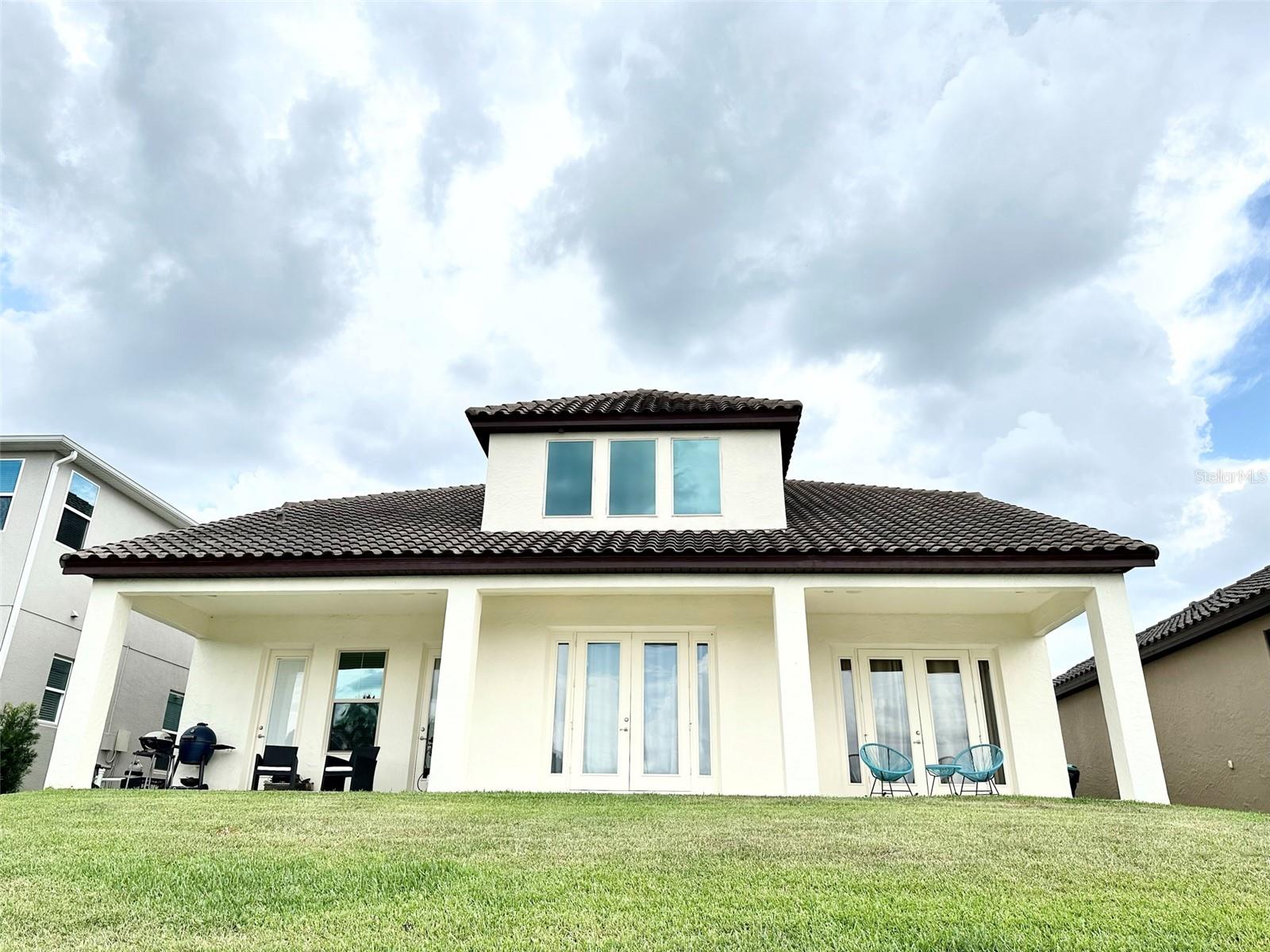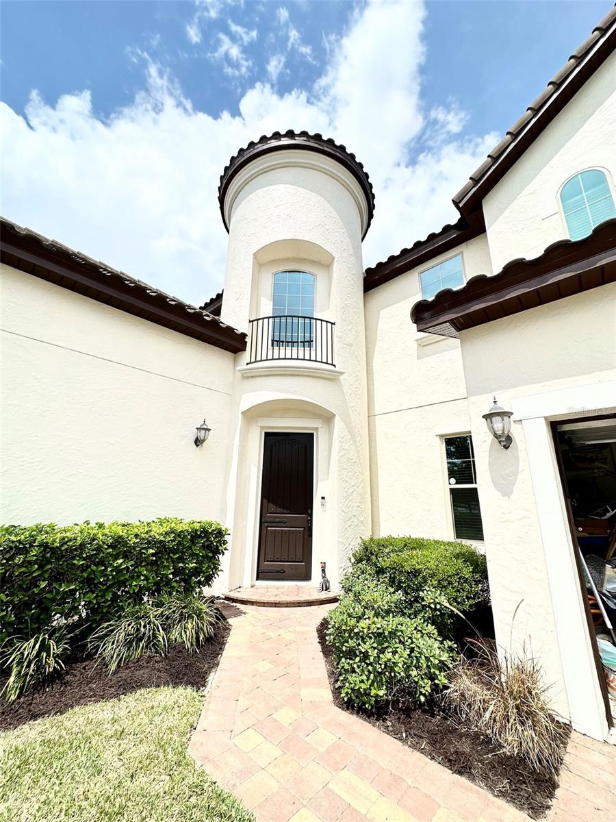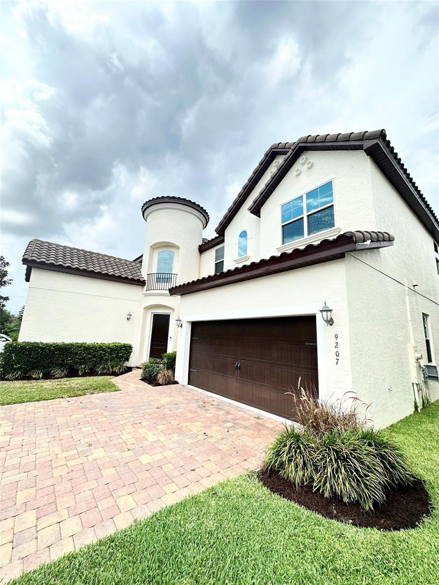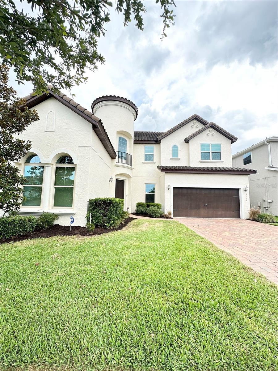 Luxury Spanish/Mediterranean style 2 story waterfront home, 5 bedrooms & 4 full bathrooms. This unique gem offers 3,200+ sf. along with many features and upgrades. To start, be amazed by the Cathedral ceiling entrance and an elegant hallway that leads you to a separate formal dining room and a fabulous gourmet kitchen with a stunning cooking island, breakfast bar, dry bar, walk-in pantry, one of a kind backsplash, 42in solid wood cabinets, granite countertops and high-end stainless-steel appliances. A Breathtaking high ceiling living room featuring a spectacular stone wall with built-in electric Fireplace and integrated surround system. A double-door that leads you to a magical water-view backyard looking to a conservation area and a partial view of Disney fireworks. The first level also has a casual dining room, a full guest bathroom with a pool door for a future pool, a guest bedroom with walk-in closet, laundry room (very convenient) & storage closets. A private master bedroom with double doors leading to backyard and in-suite full bathroom featuring separate granite vanities, soothing soaking tub, oversized shower, private toilet room and spacious walk-in closet. A stylish stair will take you to the second level which features a family room with integrated surround system, perfect for a home movie theater, or second living room with eye-catching view to open space and pond. The second level has a private bedroom next to a full bathroom and 2 bedrooms with Jack & Jill bathroom with tub. Huge 3-cars garage, paver driveway for 2 cars & tile Roof. This energy efficient home features smart thermostat, water filtration system, newer A/c units and irrigation system that will save you thousands of dollars!! Very well located in the desirable WATERMARK PH 1, a resort-style community offers many amenities such as pool, water park, cabanas, BBQ spaces, playground, dog park, tennis court, basketball court, sport center, clubhouse with rooftop, weekly activities for all residents, and walking trials with water view and swinging chairs. A block away from convenient stores, restaurants and bars, Top rated schools, and major highways. 4 minutes away from ORANGE COUNTY NATIONAL GOLF COURT AND LODGE for golf lovers and less than 5 miles away from the Magical Walt Disney World.