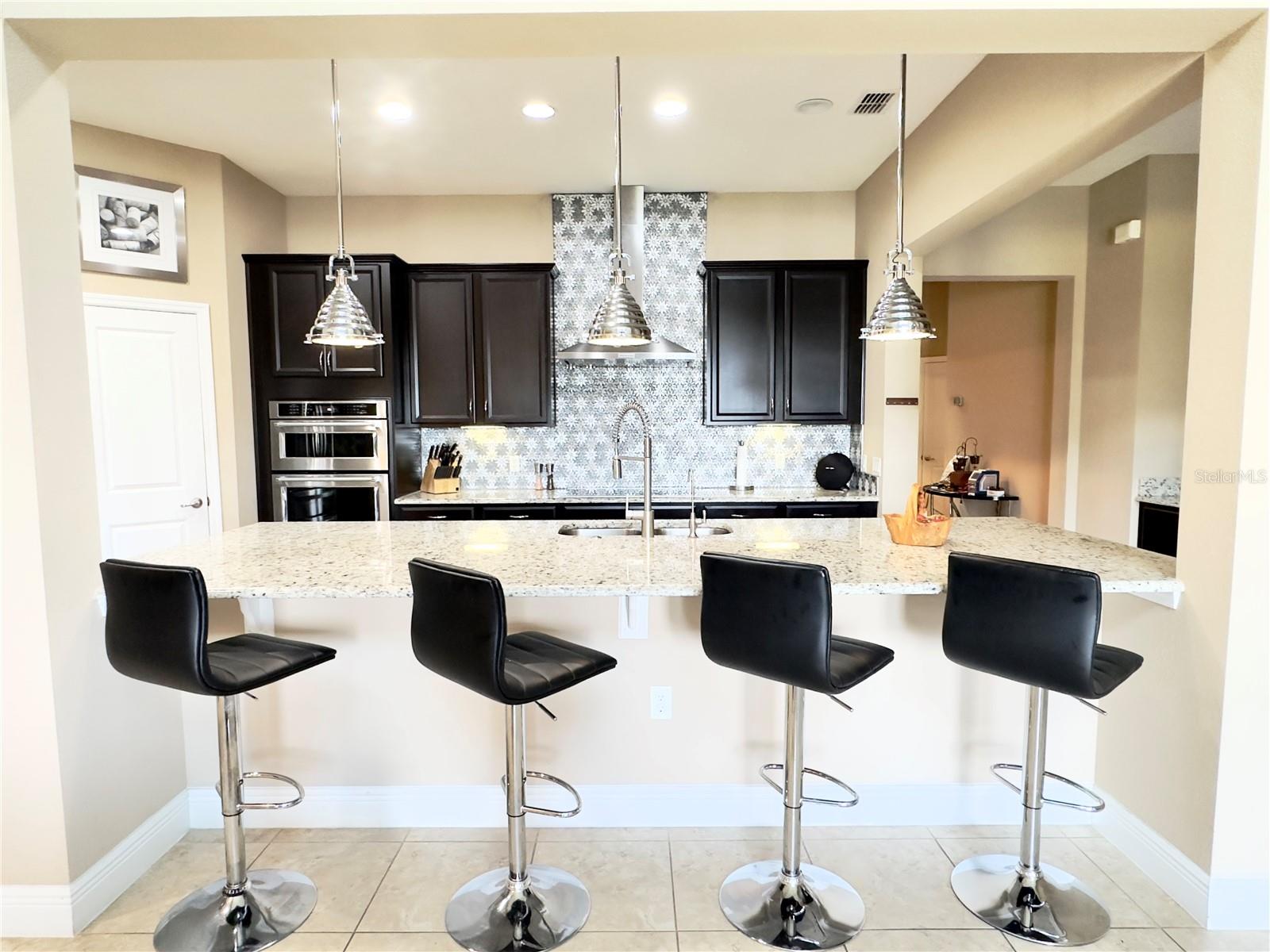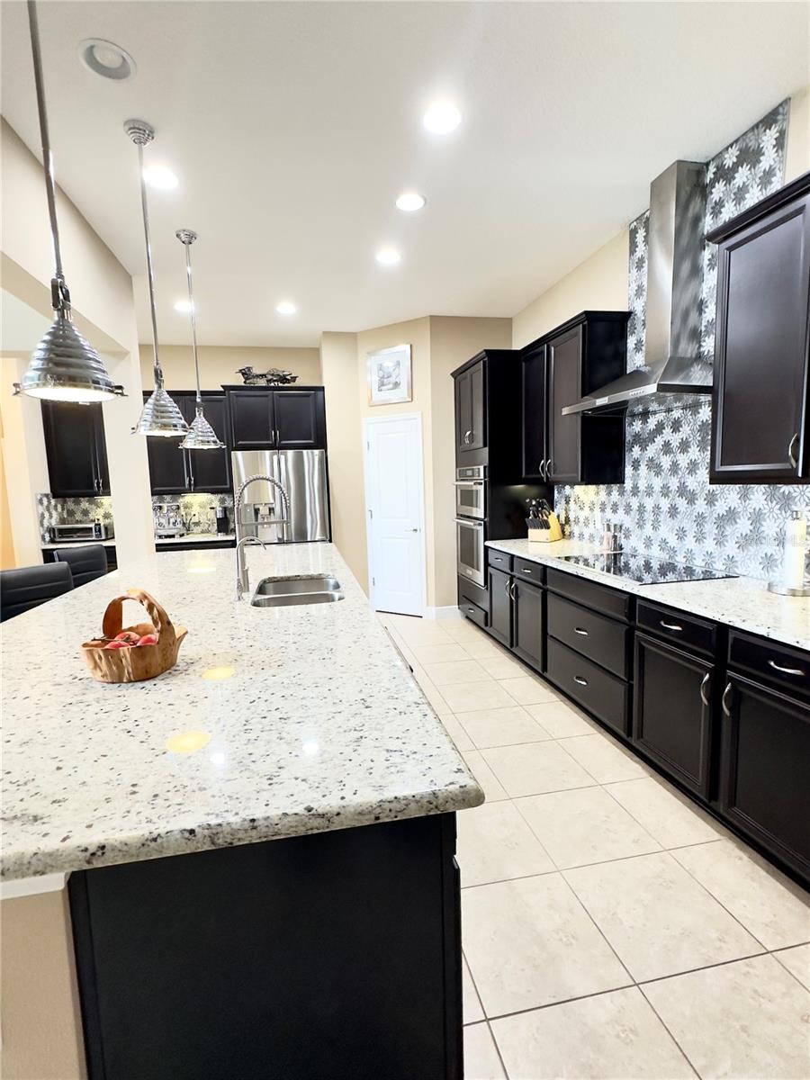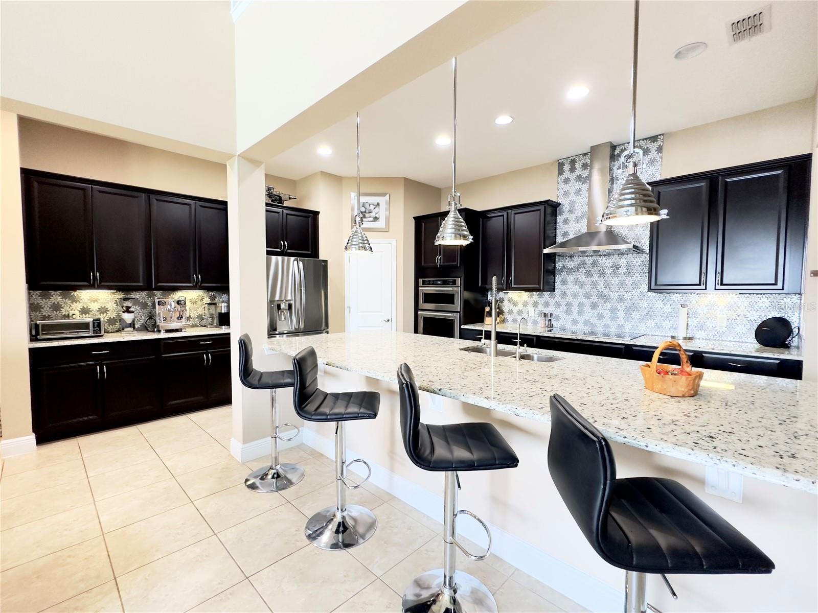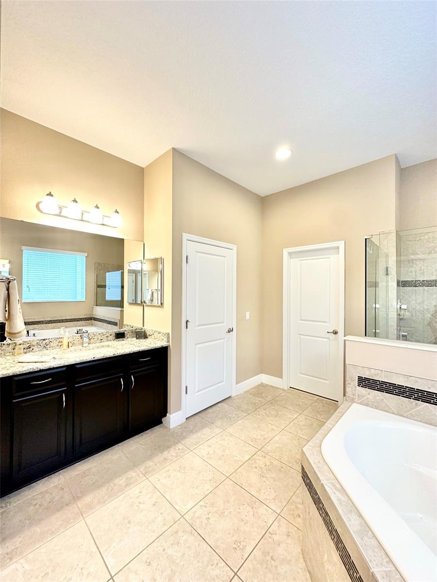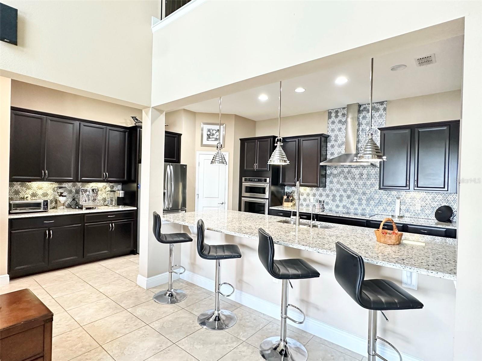 Luxury Spanish/Mediterranean style 2 story waterfront home, 5 bedrooms & 4 full bathrooms. This unique gem offers 3,200+ sf. along with many features and upgrades. To start, be amazed by the Cathedral ceiling entrance and an elegant hallway that leads you to a separate formal dining room and a fabulous gourmet kitchen with a stunning cooking island, breakfast bar, dry bar, walk-in pantry, one of a kind backsplash, 42in solid wood cabinets, granite countertops and high-end stainless-steel appliances. A Breathtaking high ceiling living room featuring a spectacular stone wall with built-in electric Fireplace and integrated surround system. A double-door that leads you to a magical water-view backyard looking to a conservation area and a partial view of Disney fireworks. The first level also has a casual dining room, a full guest bathroom with a pool door for a future pool, a guest bedroom with walk-in closet, laundry room (very convenient) & storage closets. A private master bedroom with double doors leading to backyard and in-suite full bathroom featuring separate granite vanities, soothing soaking tub, oversized shower, private toilet room and spacious walk-in closet. A stylish stair will take you to the second level which features a family room with integrated surround system, perfect for a home movie theater, or second living room with eye-catching view to open space and pond. The second level has a private bedroom next to a full bathroom and 2 bedrooms with Jack & Jill bathroom with tub. Huge 3-cars garage, paver driveway for 2 cars & tile Roof. This energy efficient home features smart thermostat, water filtration system, newer A/c units and irrigation system that will save you thousands of dollars!! Very well located in the desirable WATERMARK PH 1, a resort-style community offers many amenities such as pool, water park, cabanas, BBQ spaces, playground, dog park, tennis court, basketball court, sport center, clubhouse with rooftop, weekly activities for all residents, and walking trials with water view and swinging chairs. A block away from convenient stores, restaurants and bars, Top rated schools, and major highways. 4 minutes away from ORANGE COUNTY NATIONAL GOLF COURT AND LODGE for golf lovers and less than 5 miles away from the Magical Walt Disney World.