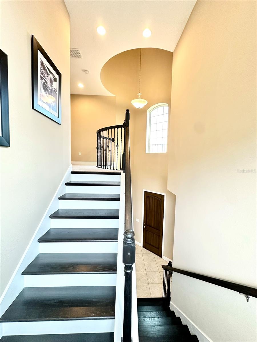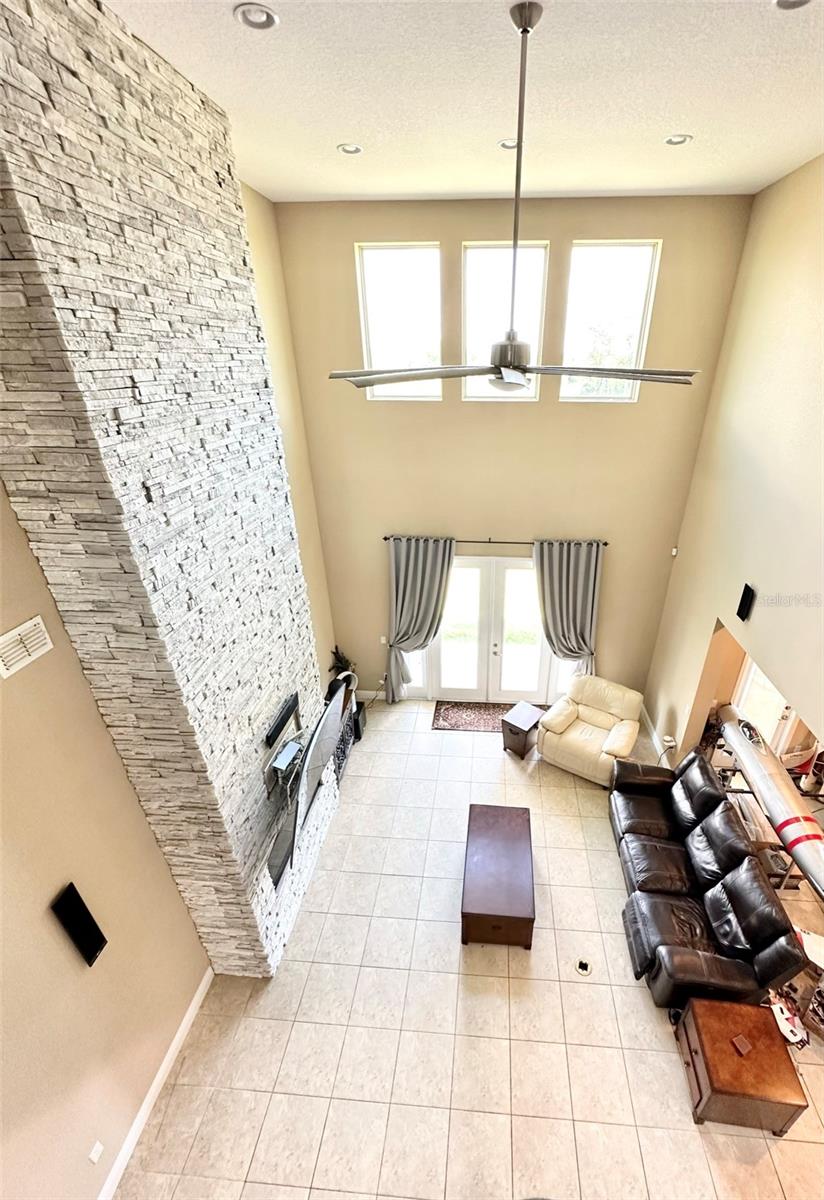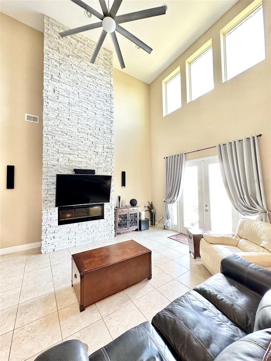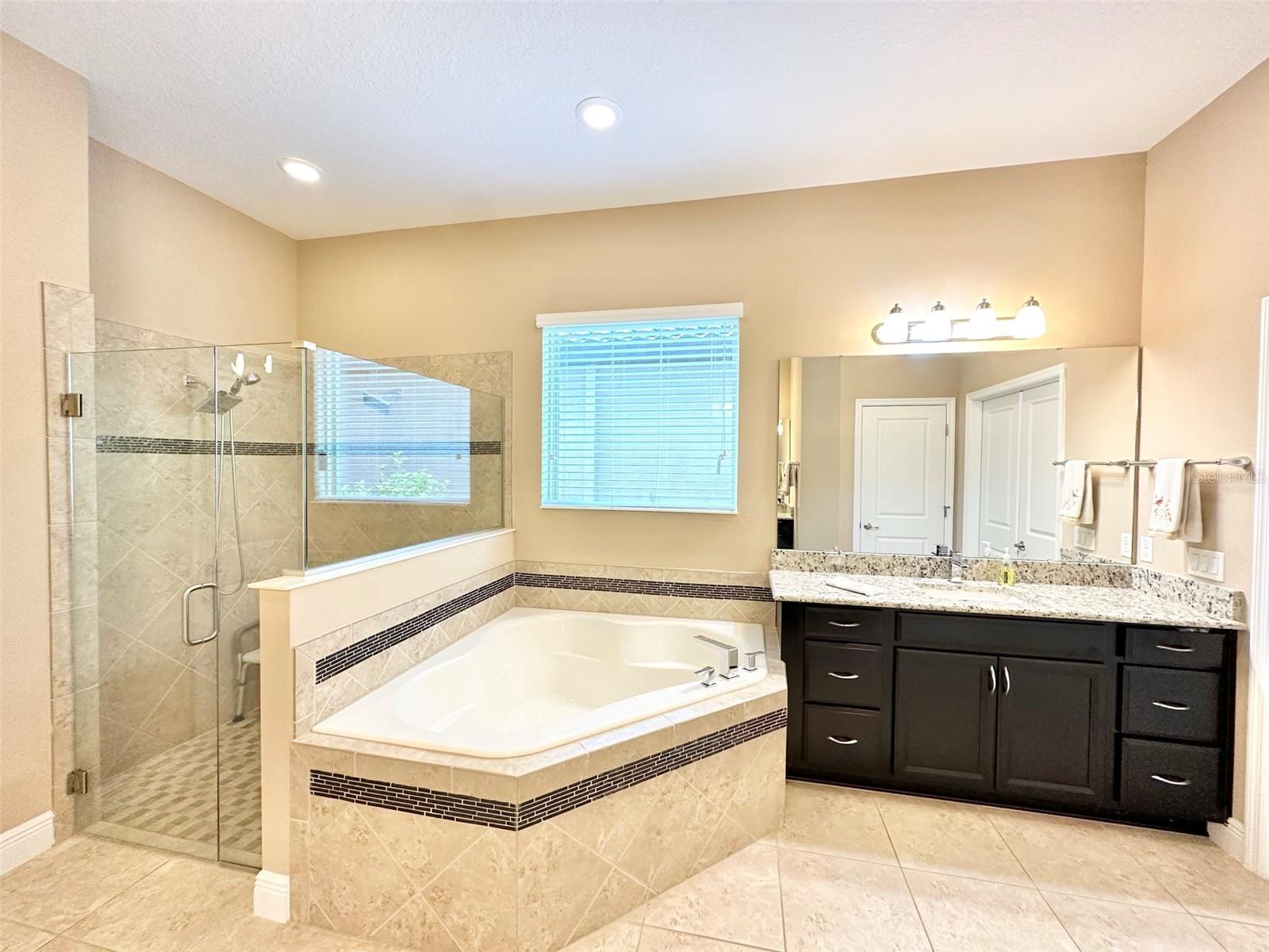 Luxury Spanish/Mediterranean style 2 story waterfront home, 5 bedrooms & 4 full bathrooms. This unique gem offers 3,200+ sf. along with many features and upgrades. To start, be amazed by the Cathedral ceiling entrance and an elegant hallway that leads you to a separate formal dining room and a fabulous gourmet kitchen with a stunning cooking island, breakfast bar, dry bar, walk-in pantry, one of a kind backsplash, 42in solid wood cabinets, granite countertops and high-end stainless-steel appliances. A Breathtaking high ceiling living room featuring a spectacular stone wall with built-in electric Fireplace and integrated surround system. A double-door that leads you to a magical water-view backyard looking to a conservation area and a partial view of Disney fireworks. The first level also has a casual dining room, a full guest bathroom with a pool door for a future pool, a guest bedroom with walk-in closet, laundry room (very convenient) & storage closets. A private master bedroom with double doors leading to backyard and in-suite full bathroom featuring separate granite vanities, soothing soaking tub, oversized shower, private toilet room and spacious walk-in closet. A stylish stair will take you to the second level which features a family room with integrated surround system, perfect for a home movie theater, or second living room with eye-catching view to open space and pond. The second level has a private bedroom next to a full bathroom and 2 bedrooms with Jack & Jill bathroom with tub. Huge 3-cars garage, paver driveway for 2 cars & tile Roof. This energy efficient home features smart thermostat, water filtration system, newer A/c units and irrigation system that will save you thousands of dollars!! Very well located in the desirable WATERMARK PH 1, a resort-style community offers many amenities such as pool, water park, cabanas, BBQ spaces, playground, dog park, tennis court, basketball court, sport center, clubhouse with rooftop, weekly activities for all residents, and walking trials with water view and swinging chairs. A block away from convenient stores, restaurants and bars, Top rated schools, and major highways. 4 minutes away from ORANGE COUNTY NATIONAL GOLF COURT AND LODGE for golf lovers and less than 5 miles away from the Magical Walt Disney World.
