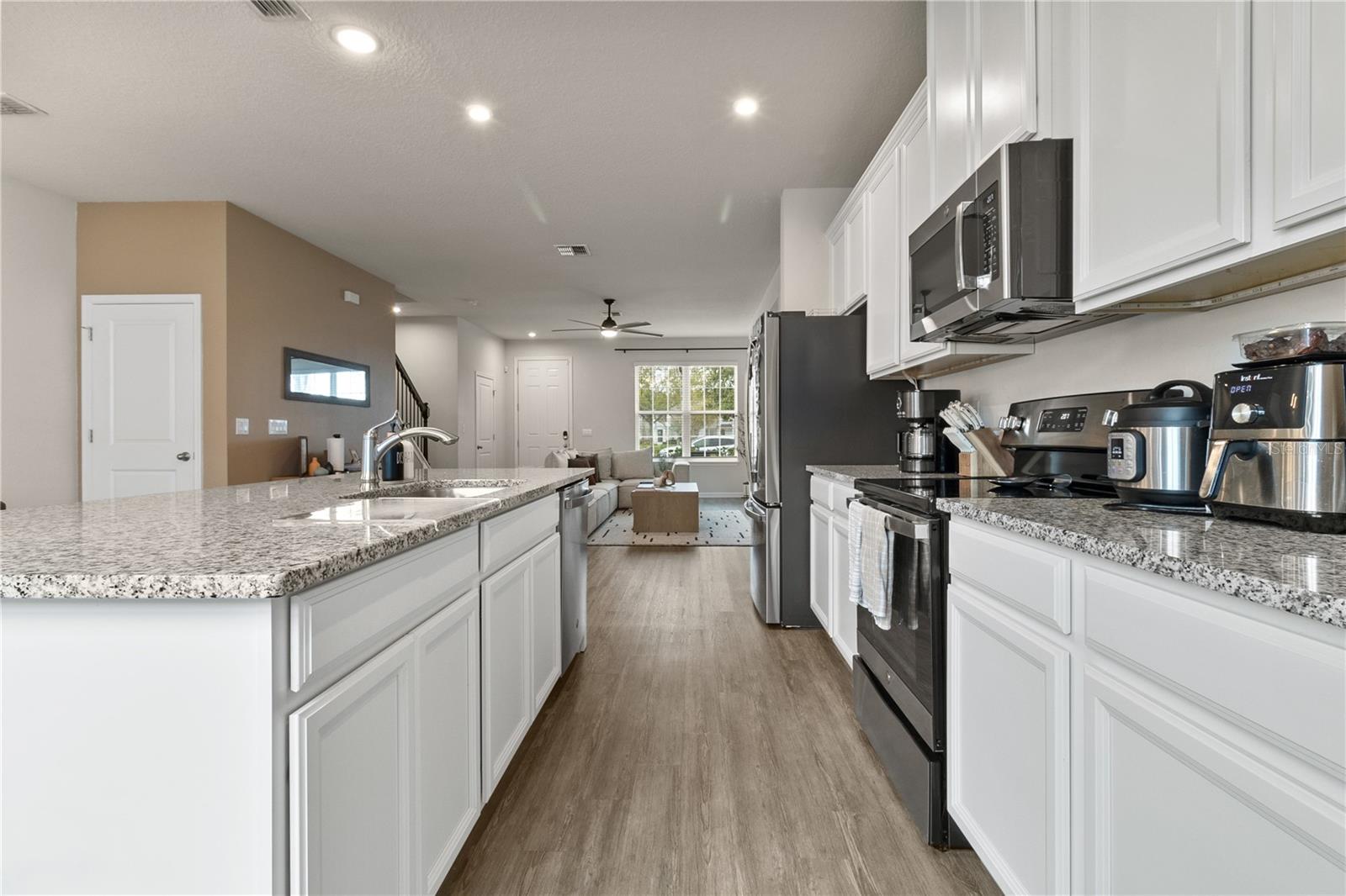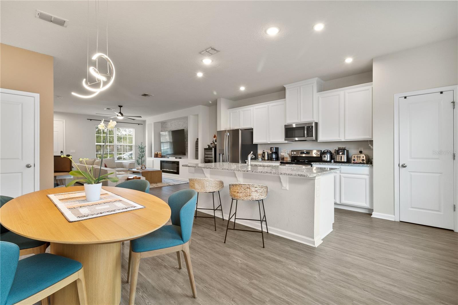 PRICE TO SELL, Welcome to 6067 Blue Lilly Lane, a stunning 3-bedroom, 2.5-bathroom townhome built in 2021, offering the perfect blend of modern comfort and community charm. This home boasts a prime location at the Hamlin and it is directly across from the community’s resort-style amenities, just steps away from the beautiful beach-entry pool and the convenient school bus stop, with serene green views. The thoughtfully designed layout features a bright and open-concept main floor with durable and stylish vinyl flooring throughout. The spacious living area includes a decorative electric fireplace, adding a cozy and welcoming ambiance. The well-appointed kitchen is a chef’s delight, showcasing GE stainless steel appliances, granite countertops, and 42” wood cabinets with crown molding. Ample storage is available in the pantry and the large under-stairs closet. Upstairs, the owner’s suite is a true retreat with an expansive walk-in closet and a private ensuite bathroom featuring a double sink vanity and a beautifully tiled shower. Two additional bedrooms, a full bathroom, and a conveniently located laundry room complete the second floor. Outdoor living is a breeze in the private courtyard, ideal for grilling, dining, or simply unwinding. The detached two-car garage offers easy rear entry and additional storage space. Community and Lifestyle Hamilton Gardens offers a vibrant lifestyle with amenities that include: Resort-style beach entry pool and cabana Dog park and sports field Playgrounds and green spaces Easy access to Hamlin Town Center, with dining, retail, and entertainment just a stroll away And as a unique perk, enjoy the nightly spectacle of Disney fireworks right from the community—adding a magical touch to your everyday living. Don't miss the opportunity to make this exceptional home your own. Schedule your private tour today!