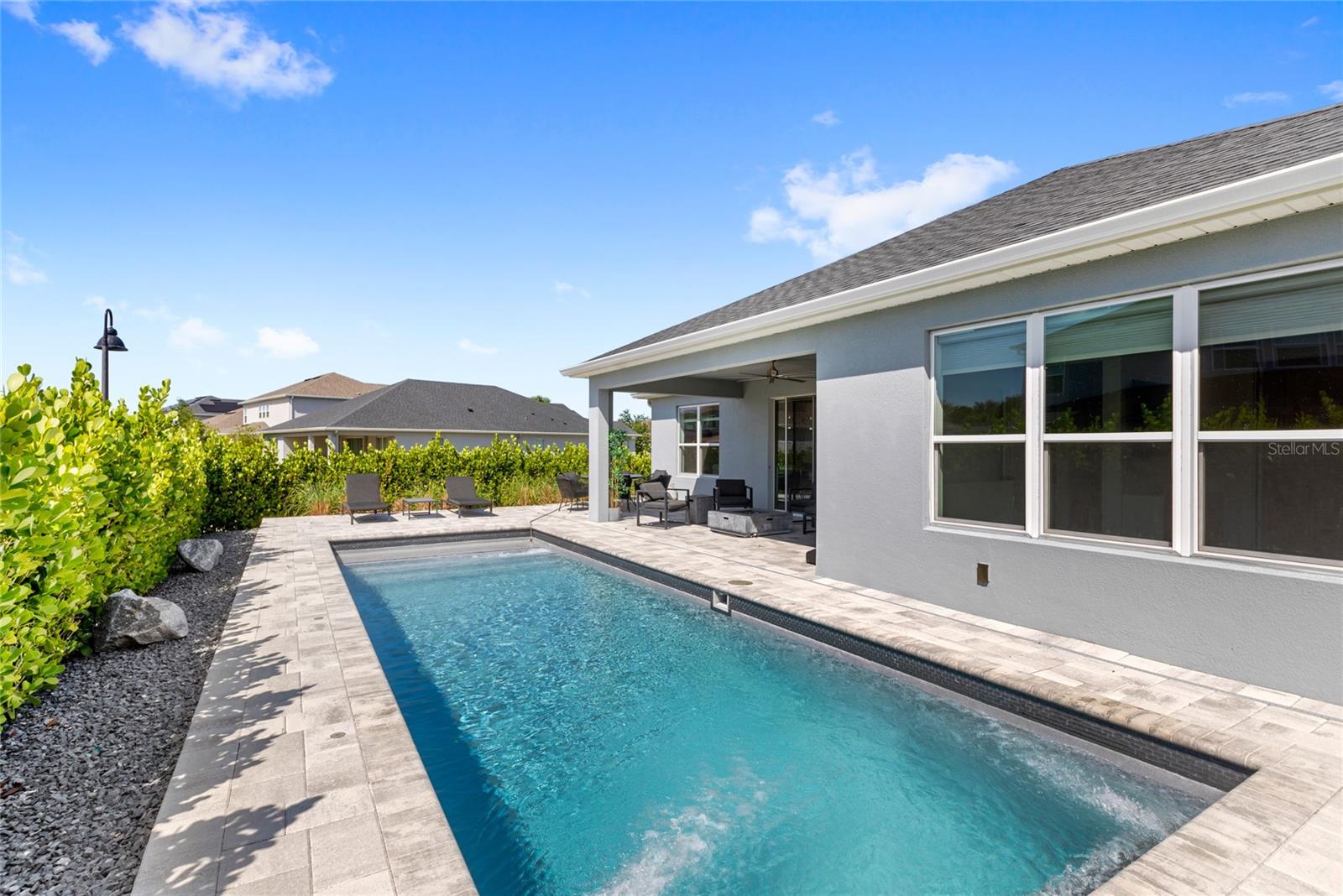 Tucked inside the gated community of Lakeview Preserve, this single-story 4-bedroom pool home offers a rare mix of space, style, and smart features. Sitting on a fully fenced corner lot, the home is surrounded by lush landscaping that gives the backyard a private, resort-like feel—complete with a sparkling pool and included outdoor furniture, so it's ready for summer from day one. Inside, 8 foot doors and custom built-ins add both character and function, while the gourmet kitchen features a center island with a second sink that makes prepping and entertaining a breeze. The primary suite has a spa-inspired ensuite with a soaking tub, walk-in shower, and dual vanities. The layout is thoughtfully designed with a split-bedroom floor plan for extra privacy. And with smart lights, thermostat, and other smart home features, convenience is built right in. One of the bedrooms has a gorgeous built-in Murphy bed, so it’s truly turnkey. Lakeview Preserve residents enjoy access to Johns Lake, a resort-style pool, clubhouse, fitness center, and more—all just minutes from Winter Garden’s shopping, dining, and commuter routes.