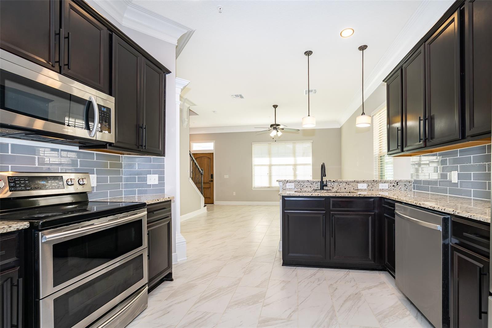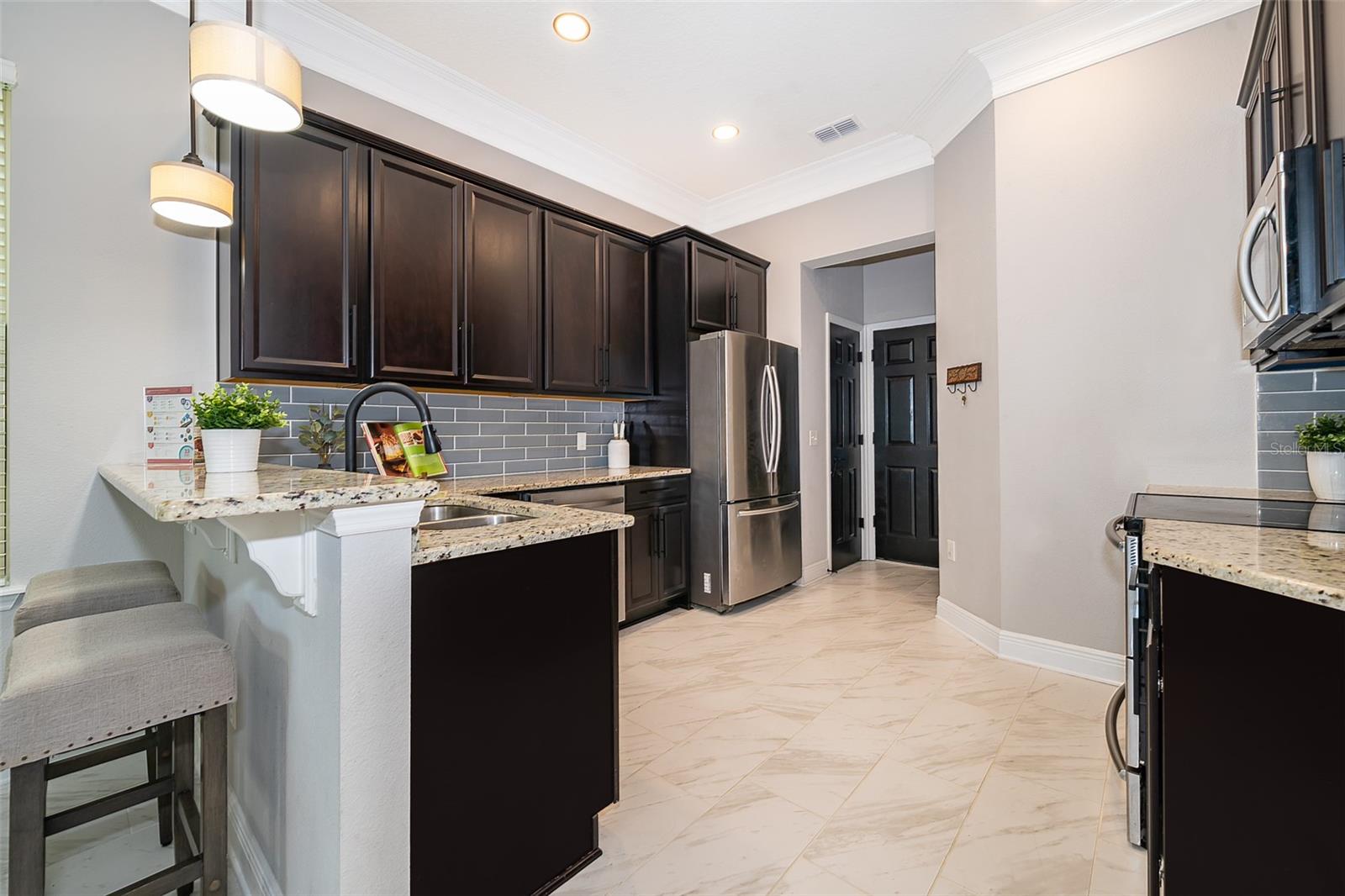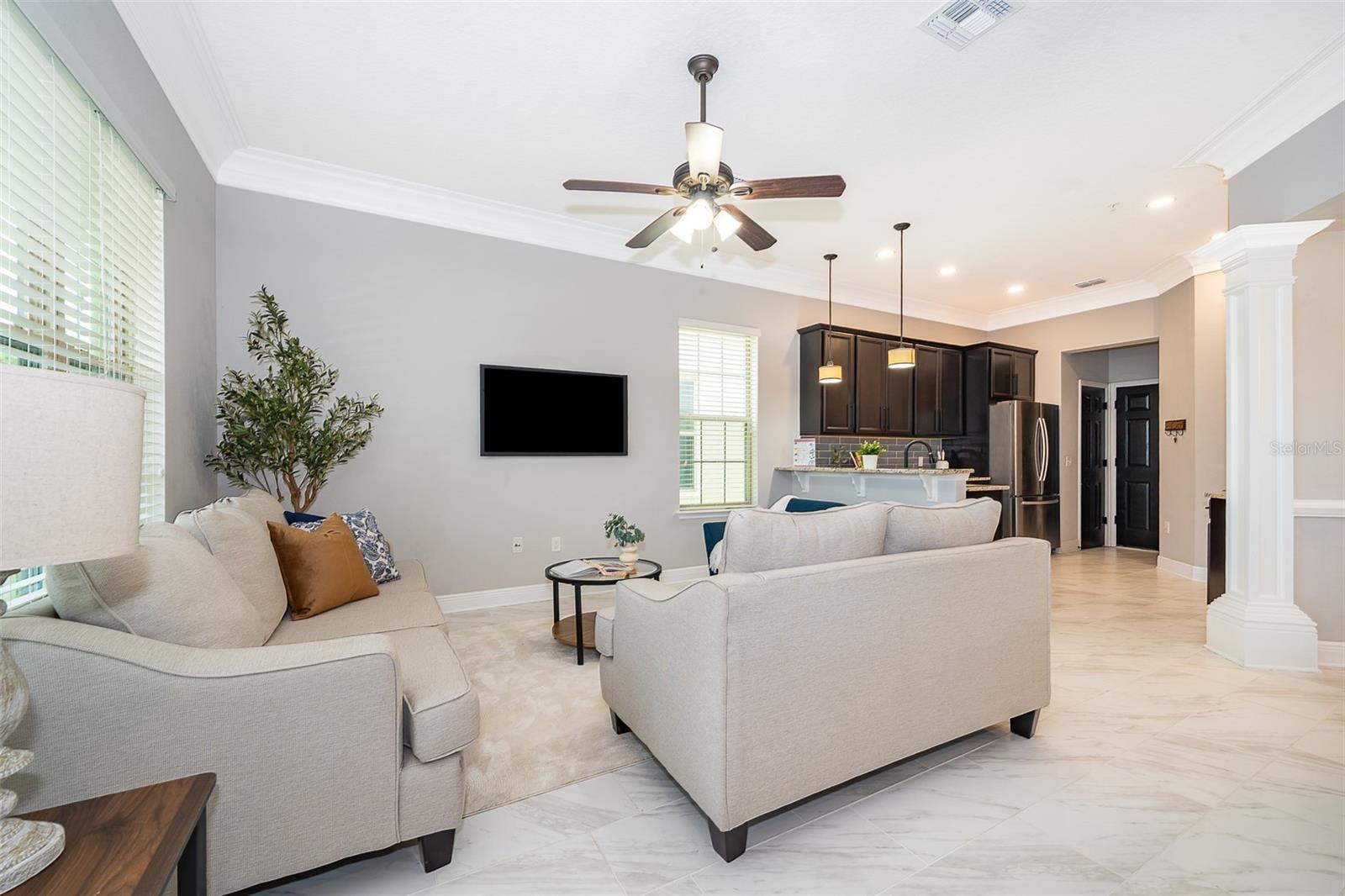 One or more photo(s) has been virtually staged. Welcome to 9330 Meadow Hunt Way, a stunning home in the highly sought-after Watermark community of Horizon West! Situated on one of the largest lots in the neighborhood, this exceptional property offers both outdoor and indoor living space and elegance. As you step inside, you'll be greeted by high ceilings, an open layout and elegant crown molding throughout. The dining room features a beautifully crafted built-in mantle, adding charm and sophistication. A striking staircase with stained wood flooring and iron railing leads you to the upper level where the floor plan continues. The primary suite is a true retreat, boasting a tray ceiling, a spacious walk-in closet, and an en-suite bathroom with a double-sink vanity, stone countertops, and a walk-in shower. Upstairs, you'll also find three additional generously sized guest bedrooms—two of which feature built-in closet shelving, a versatile open loft ideal for additional living space, and a conveniently located laundry room. The two-car garage is equipped with an epoxy-coated floor and a Tesla charging station. Beyond the home, the Watermark community offers exceptional resort-style amenities, including a sparkling pool with a splash pad, a playground, a sports court, and even a viewing deck for Disney fireworks! Enjoy easy access to Disney parks, Winter Garden Village, Hamlin Town Center, shopping, dining, and so much more. Don't miss your chance to own this exceptional home in one of the area's most desirable communities! Schedule you’re showing today.