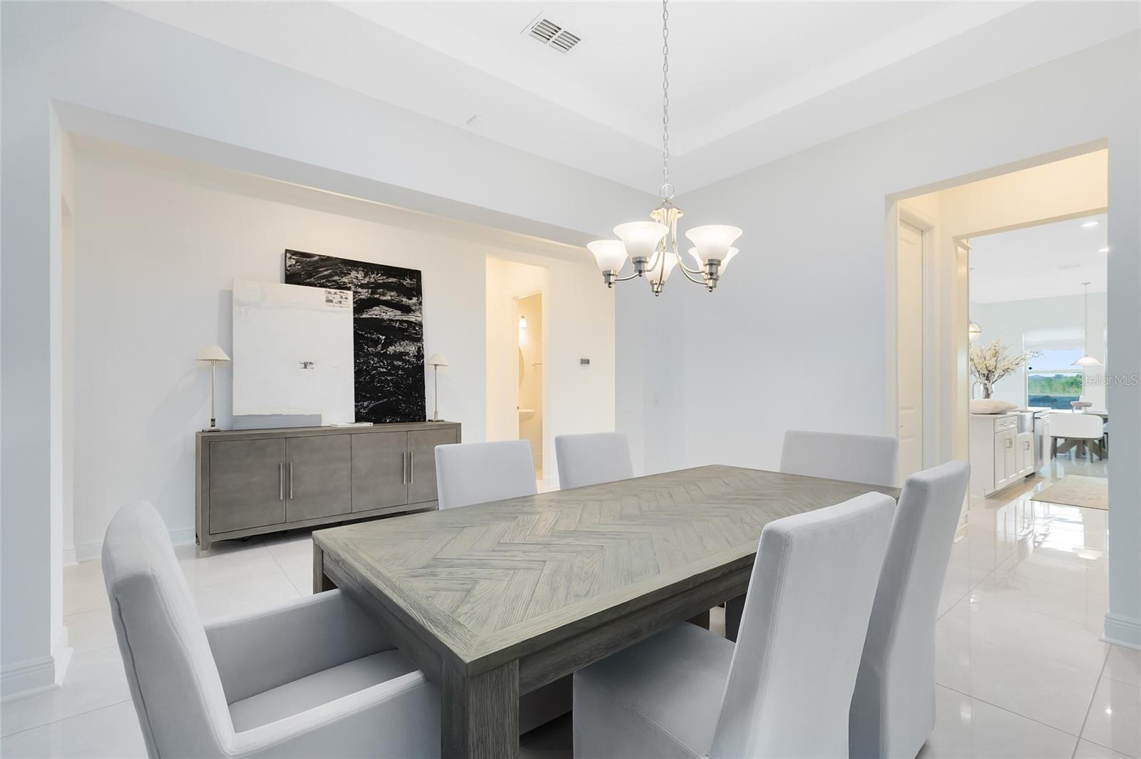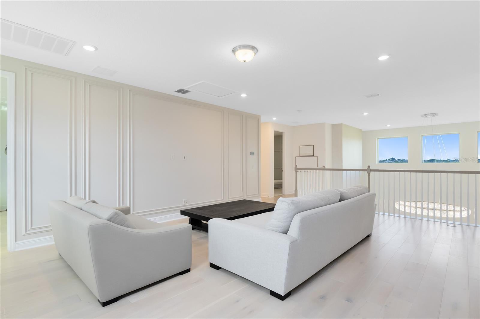 Welcome to 1675 Amsel Falls Park Terrace — where luxury and lifestyle come together in one of Twinwaters’ most sought-after conservation lots. This Meritage Lafayette model stands apart with no rear neighbors, peaceful sunrise views, and thoughtful upgrades throughout. From the moment you step through the oversized wood door, you’re greeted by soaring ceilings, imported porcelain tile, and natural light pouring in through grand windows. Just off the foyer, a refined sitting area offers the perfect space to welcome guests or unwind in style. Continue to the formal dining room, where a custom herringbone accent wall and modern lighting set the tone for elegant gatherings. Flow into the showstopping two-story great room, anchored by a sleek electric fireplace and a wall of glass sliders that draw the eye to serene conservation views. The gourmet kitchen is a dream for both everyday living and entertaining — complete with quartz counters, ceiling-height cabinetry with glass uppers, a wine fridge, walk-in pantry, and stainless steel appliances. A bright breakfast nook just off the kitchen makes the most of the morning light. Tucked at the rear of the home, the primary suite offers a true retreat, highlighted by tray ceilings, soft lighting, and direct views of the backyard. The spa-inspired bath features dual vanities, a soaking tub, a walk-in shower, and a spacious walk-in closet with custom storage. Upstairs, you'll find engineered hardwood throughout, along with a generous loft, game room, and three well-sized bedrooms — each with their own walk-in closet. A bonus sitting area opens to one of the few upstairs balconies in the community, perfect for enjoying evening breezes. The motorized screened lanai offers seamless indoor-outdoor living, with space to lounge, dine, and enjoy unmatched privacy. Additional features include ceiling speakers in the foyer, media room prewired for sconces, laundry pre-plumbed for a sink, two powder baths, attic access, and abundant storage throughout. Located near A-rated schools, Hamlin, Downtown Winter Garden, Disney, and the future Olympus project — and just minutes from shopping, dining, and community amenities like a resort-style pool, playgrounds, and scenic walking trails.