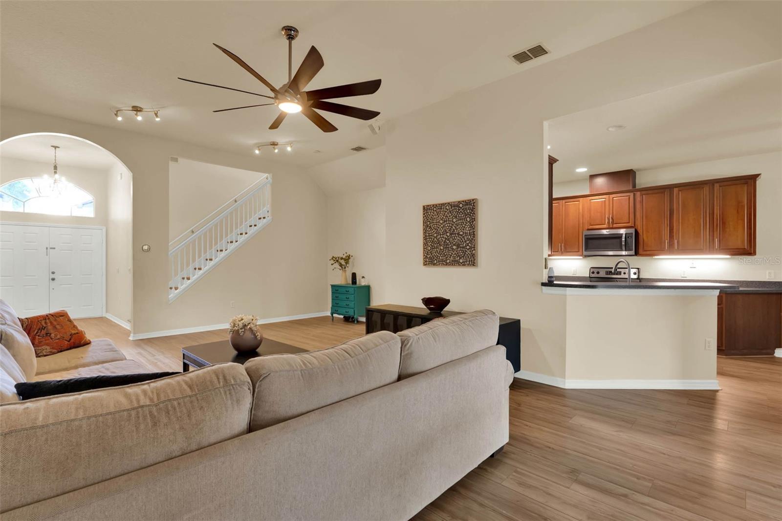 Welcome to this beautifully maintained and move-in ready 3-bedroom, 2-bathroom home located in the highly desirable Regency Oaks community. Offering 1,936 sq ft of living space plus an upstairs bonus room, this home combines comfort, function, and style. As you step in, you will love the open floor plan featuring a large great room with soaring ceilings and formal dining space—perfect for entertaining. The home has been thoughtfully updated with luxury vinyl plank flooring, interior and exterior paint (2023), A/C (2023), New Hot Water Heater (2021) & a brand-new roof (2025) for peace of mind. The kitchen is equipped with beautiful cabinetry, stainless steel appliances, and a charming breakfast nook, all conveniently located next to the laundry room. Enjoy seamless indoor-outdoor living with oversized sliding glass doors leading to a large screened-in lanai and a private, fenced backyard—ideal for relaxing or hosting gatherings. Retreat to the spacious primary suite filled with natural light and featuring a ensuite bath with custom cabinetry, dual vanities, a walk-in shower, and a garden tub. Tucked away down the hall you will find two additional bedrooms and a full guest bath nested in between them toward the front of the home, offering comfort and privacy for family or guests. Upstairs, the versatile bonus room makes a great space for a home office, playroom, media room, 4th bedroom or gym. This home has been meticulously cared for, with all major system upgrades. Regency Oaks is nestled within the Stonecrest community, offering access to amenities such as a community pool, playground, park, and walking trails. All just minutes from Winter Garden Village, top-rated schools, Florida Turnpike for easy commuting and All the major theme parks. Don't wait, book your showing today!