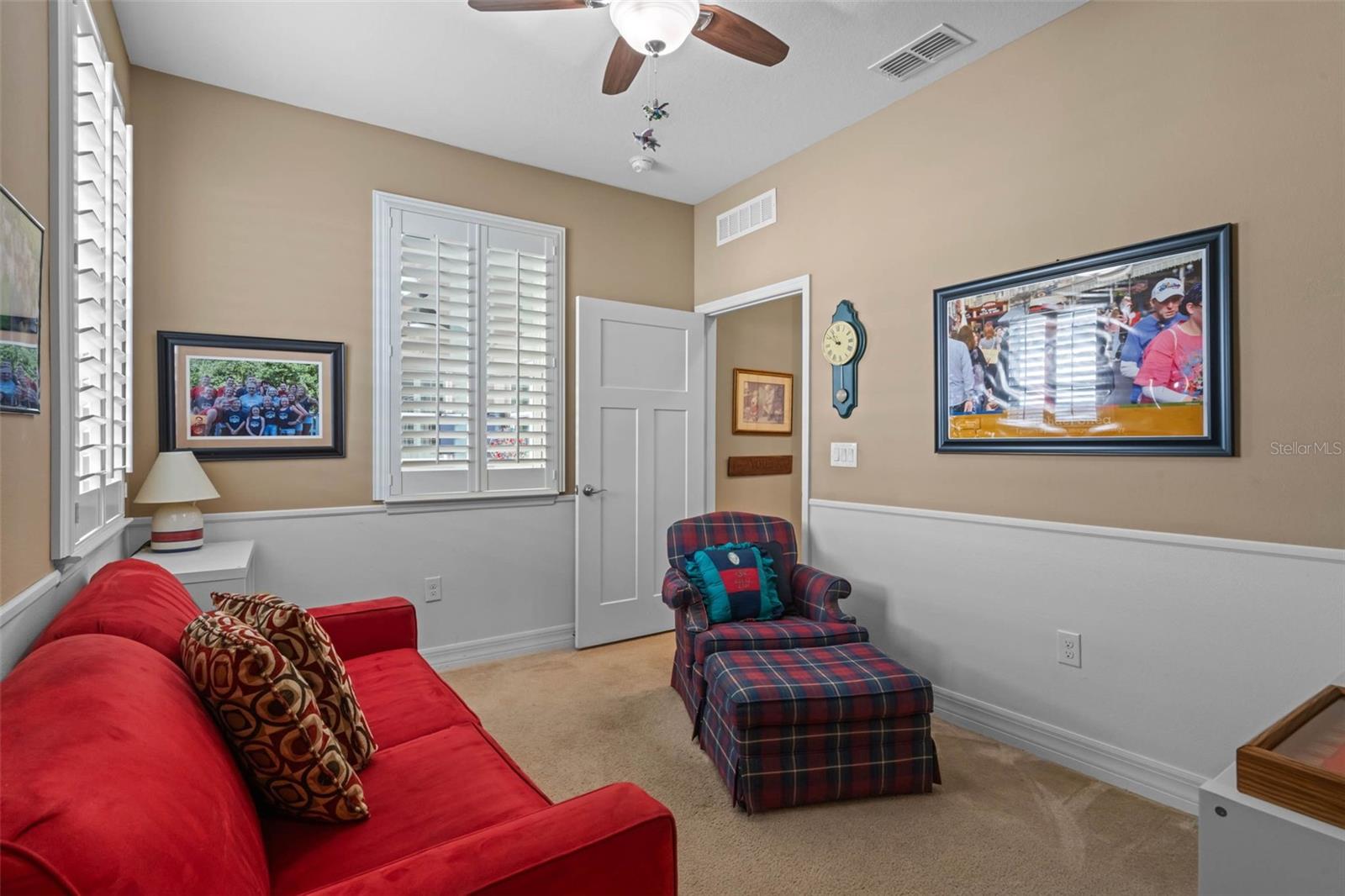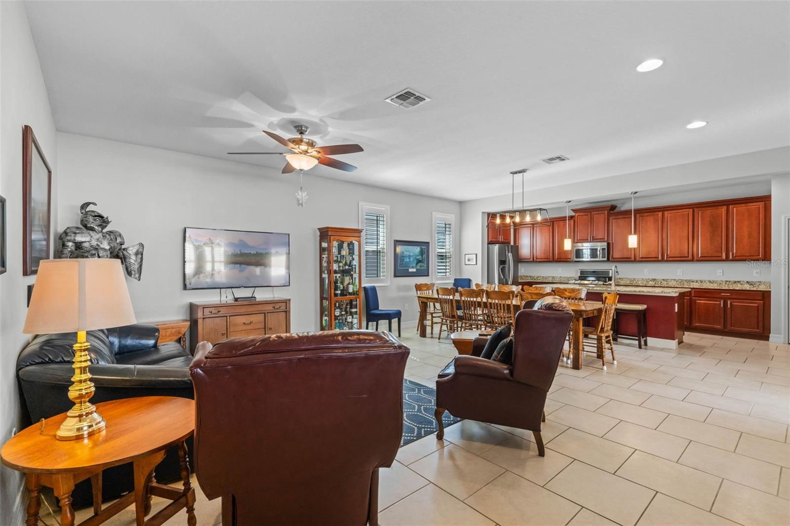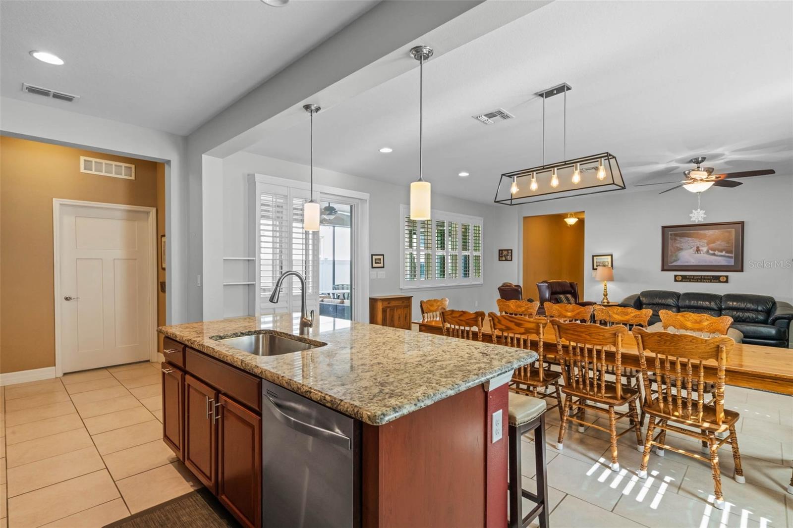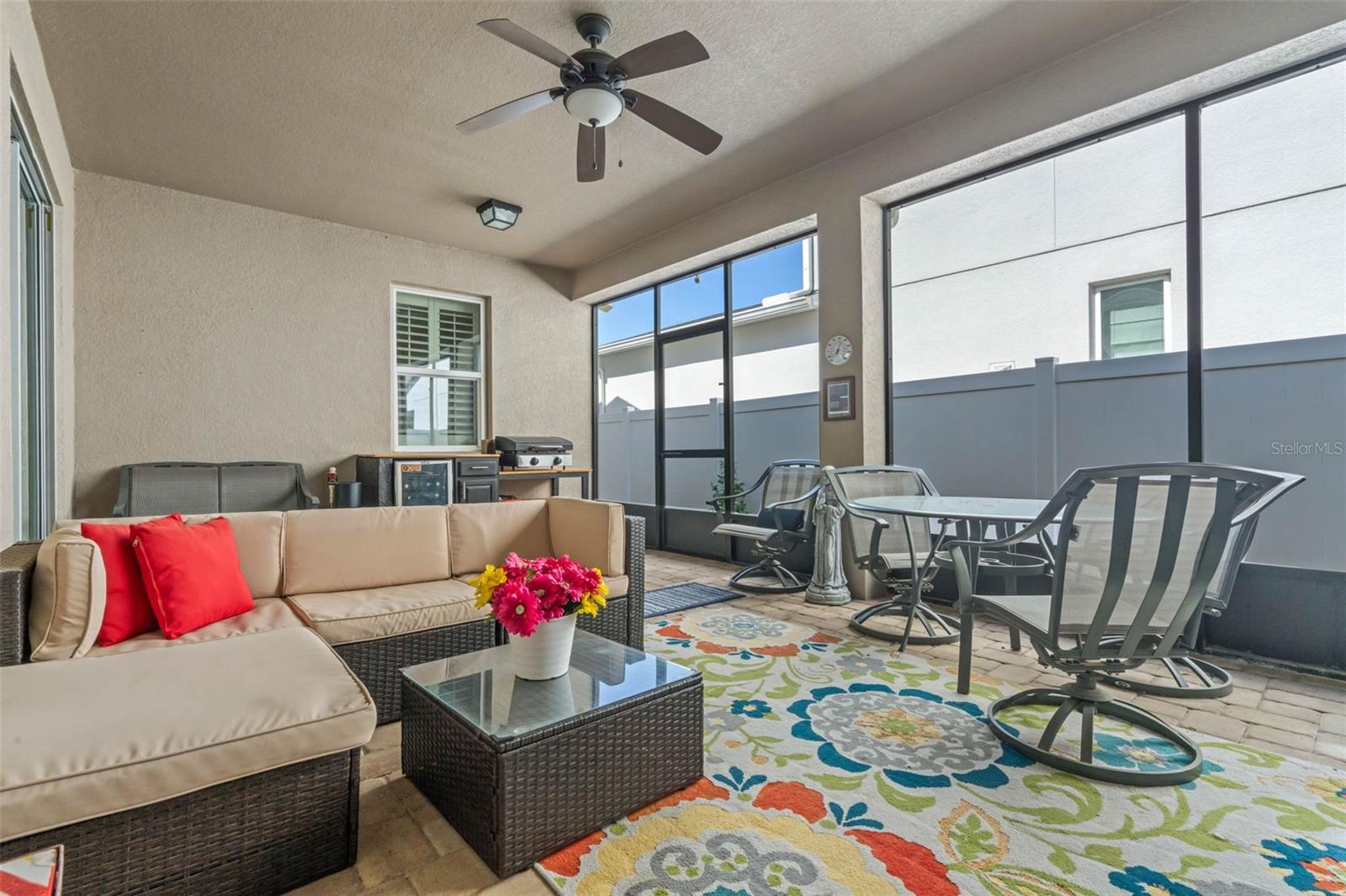 Welcome home to this beautiful residence in the highly desirable Summerlake community of Winter Garden! This charming single-story home features an open floor plan with 4 bedrooms, 2 bathrooms, and an oversized garage that accommodates two cars plus a golf cart. The spacious front porch invites you to relax and enjoy the friendly neighborhood vibe, with plenty of room for seating. Inside, you'll find extended tile flooring throughout the main living areas, elegant plantation shutters, and craftsman-style interior doors that add a touch of timeless character. At the heart of the home, the chef’s kitchen features a large granite island overlooking the family room, complete with a single basin sink and stylish pendant lighting. The kitchen is equipped with a gas range with double ovens, ample cabinetry with built-in trash cabinet and rollout drawers, and generous counter space—perfect for both everyday living and entertaining. Whether you're a passionate home cook or simply enjoy hosting family and friends, you’ll love the thoughtful features of this kitchen. The kitchen flows seamlessly into the dining area and spacious family room, creating an inviting and open atmosphere. A sliding glass door leads to the oversized, covered, and screened lanai—ideal for outdoor living. You'll enjoy the built-in grill area with a beverage refrigerator, perfect for weekend barbecues or evening relaxation. The fully fenced backyard adds privacy and charm, making it a cozy retreat. The primary suite is a true sanctuary, filled with natural light and designed for comfort. The ensuite bathroom features a walk-in shower, soaking tub, and a spacious walk-in closet. Additional bedrooms are well-sized, with the fourth bedroom also offering a walk-in closet. The secondary bathroom is finished with granite countertops and modern fixtures. The laundry room is generously sized, with space for a second refrigerator, and comes equipped with a washer and dryer. One of the standout features of this home is the added garage bay—perfect for storing a golf cart, bikes, workshop tools, or additional storage. The extended driveway also provides extra parking space. The Summerlake community offers resort-style amenities, including a pool with splash pad, clubhouse, fitness center, tennis courts, dog park, playgrounds, and a half basketball court. The HOA covers lawn maintenance, allowing for low-maintenance living. The home is zoned for A-rated schools, and Summerlake Elementary is conveniently located within the community. You’ll also love the convenience of being near the Hamlin retail center, with shops, dining, a hospital, theater, and more—all just minutes away from the 429 Expressway. Plus, you’re a short drive from Disney and other world-famous Orlando attractions. This home has been lovingly cared for and is ready for new owners to make lasting memories. Don’t miss the opportunity to make it yours—schedule your private showing today!