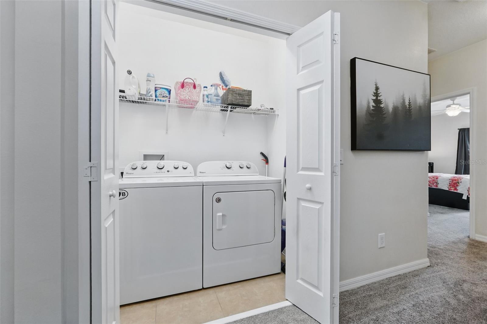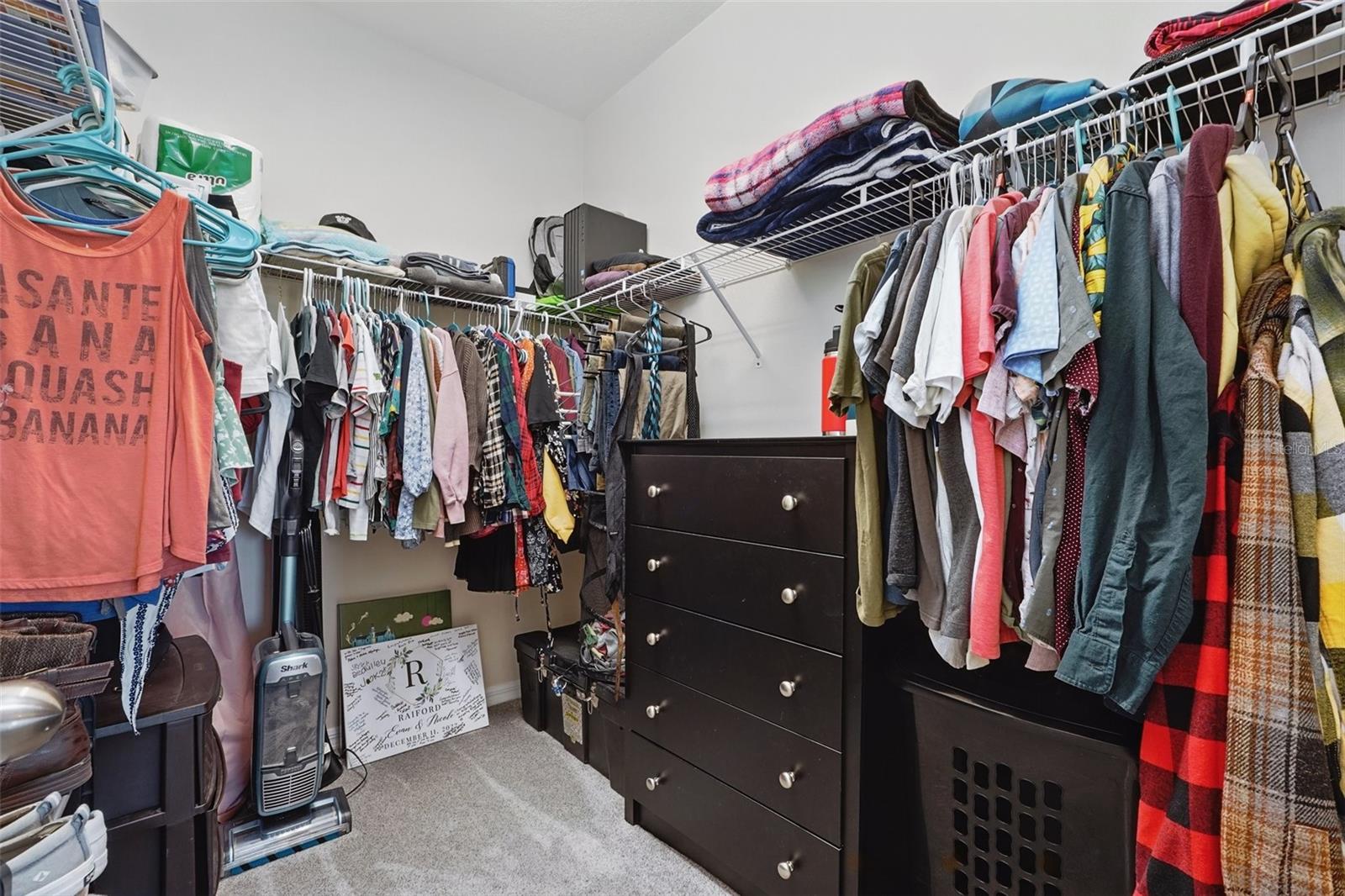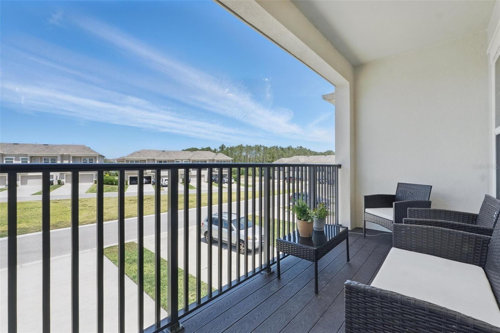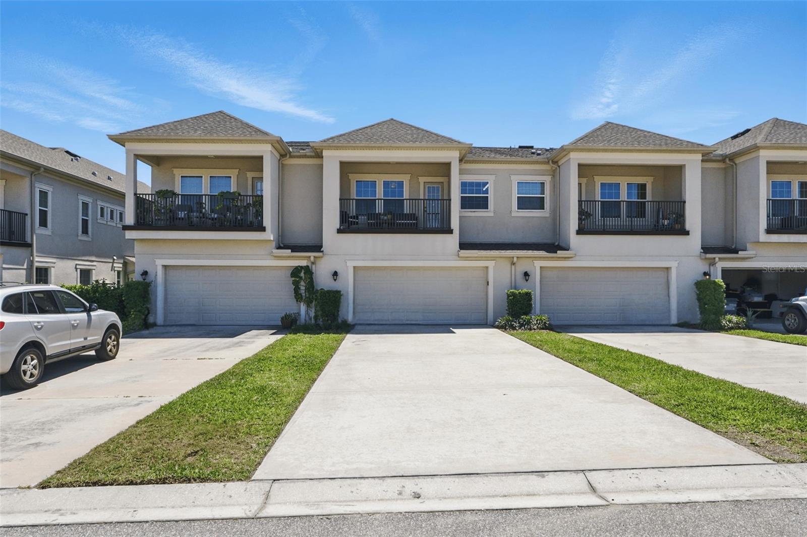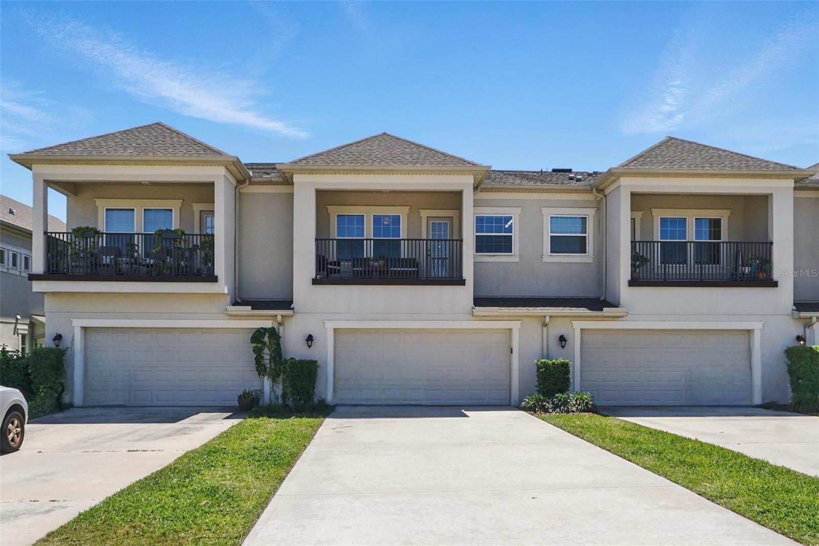 Welcome home to this spacious 2-story townhome featuring fresh interior paint, brand new carpet, and an ideal layout for modern living! The open-concept main floor boasts a large living and dining area with sleek laminate flooring, while the kitchen is equipped with stainless steel appliances and plenty of counter space. Upstairs, you’ll find a split-bedroom plan with all bedrooms conveniently located near the second-floor laundry room. The primary suite offers a walk-in closet, ceiling fan, and a luxurious bath with double sinks, a garden tub, separate shower, and a private water closet. The secondary bedrooms share a full bath with double sinks and a tub/shower combo. Enjoy quiet mornings on the covered balcony, and take advantage of the 2-car rear-entry garage plus a driveway that fits four more vehicles—plenty of space for guests or a growing household. This home is move-in ready and waiting for you! The community offers multiple playgrounds, play areas, dog parks, resort style pool with zero entry, fitness center, clubhouse - everything you need right here!