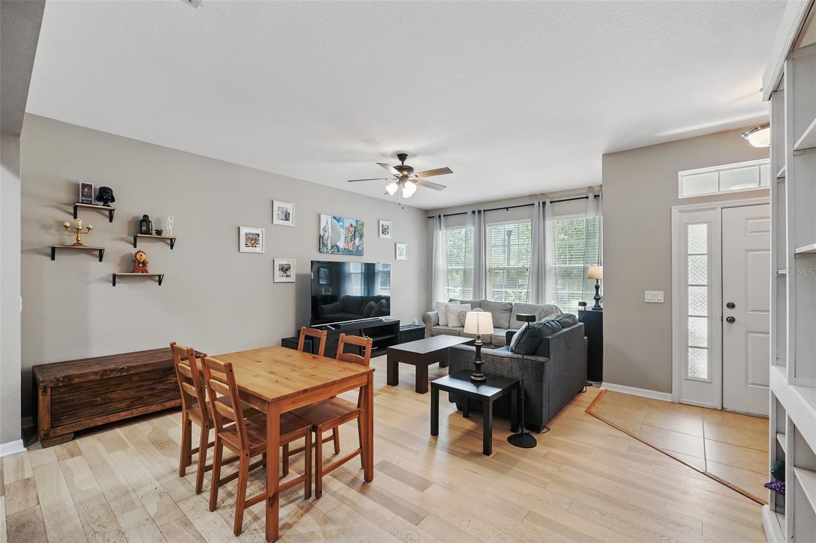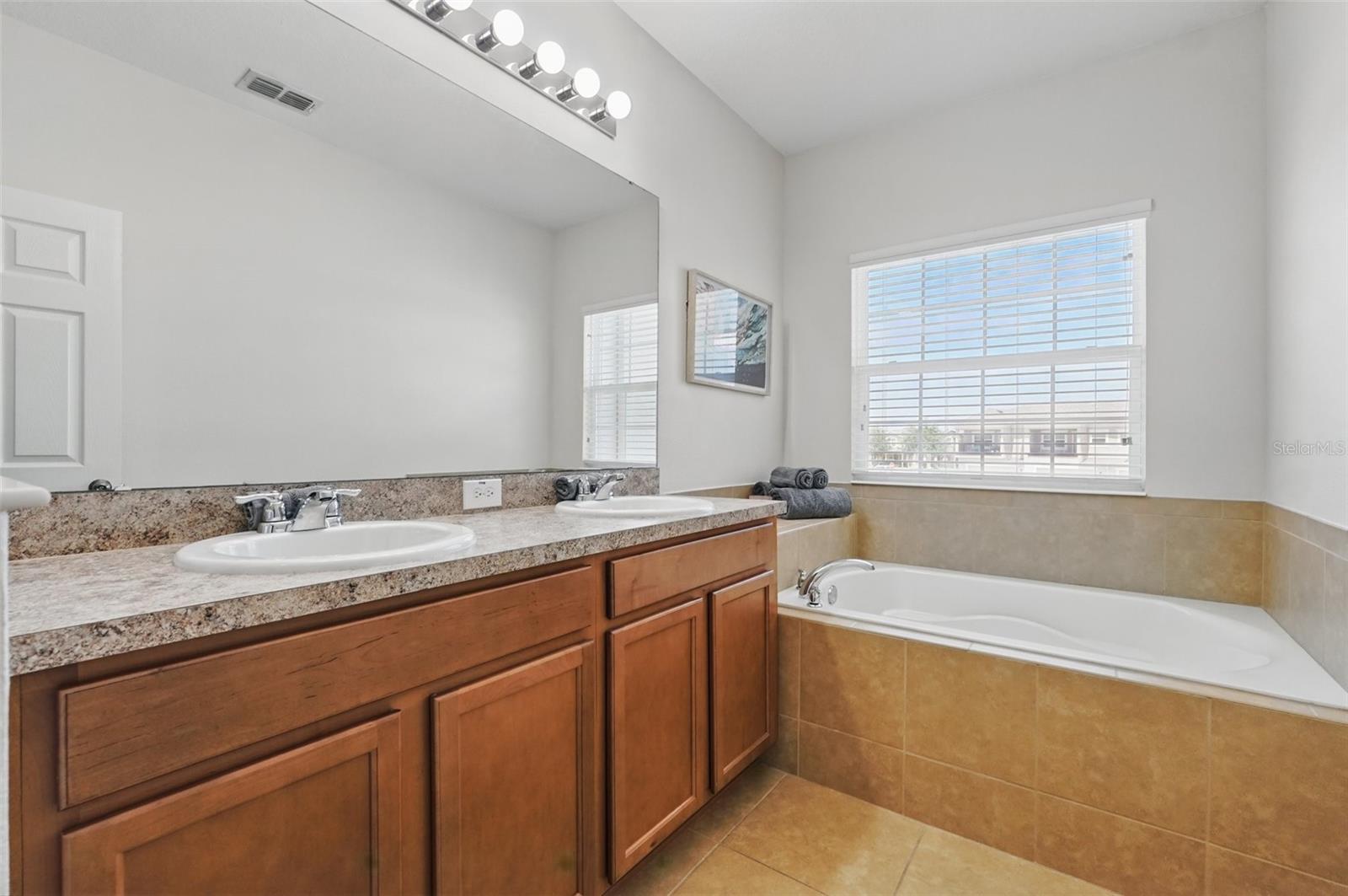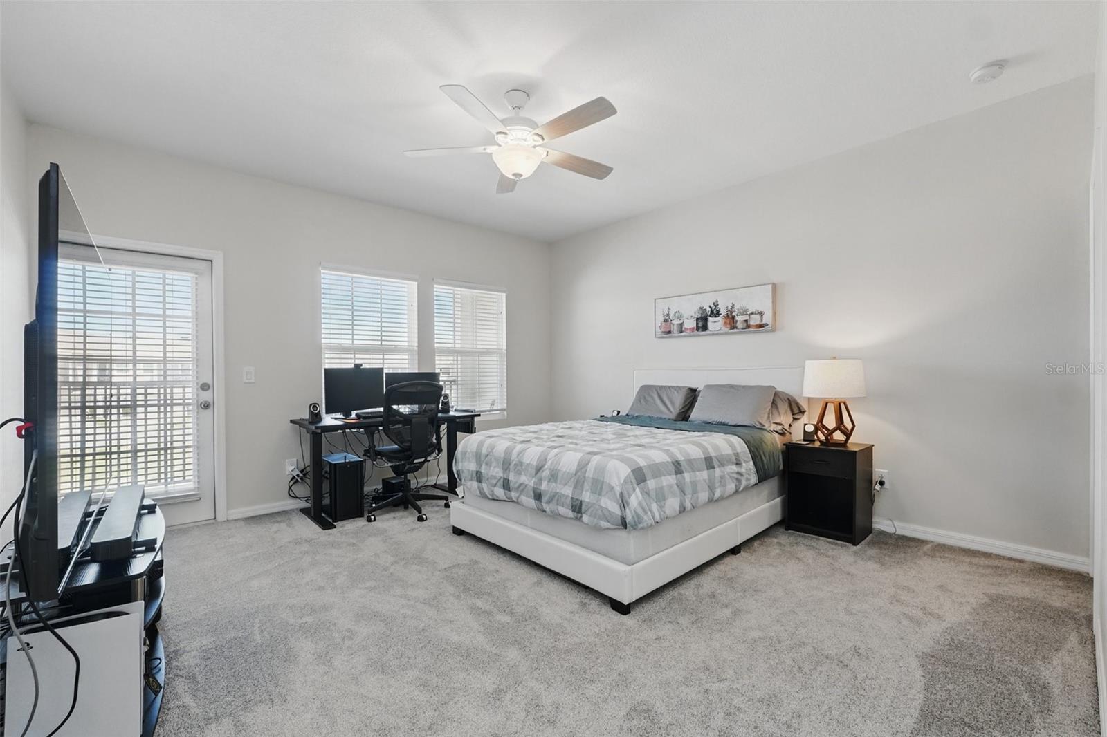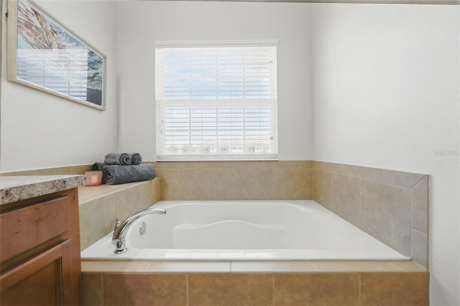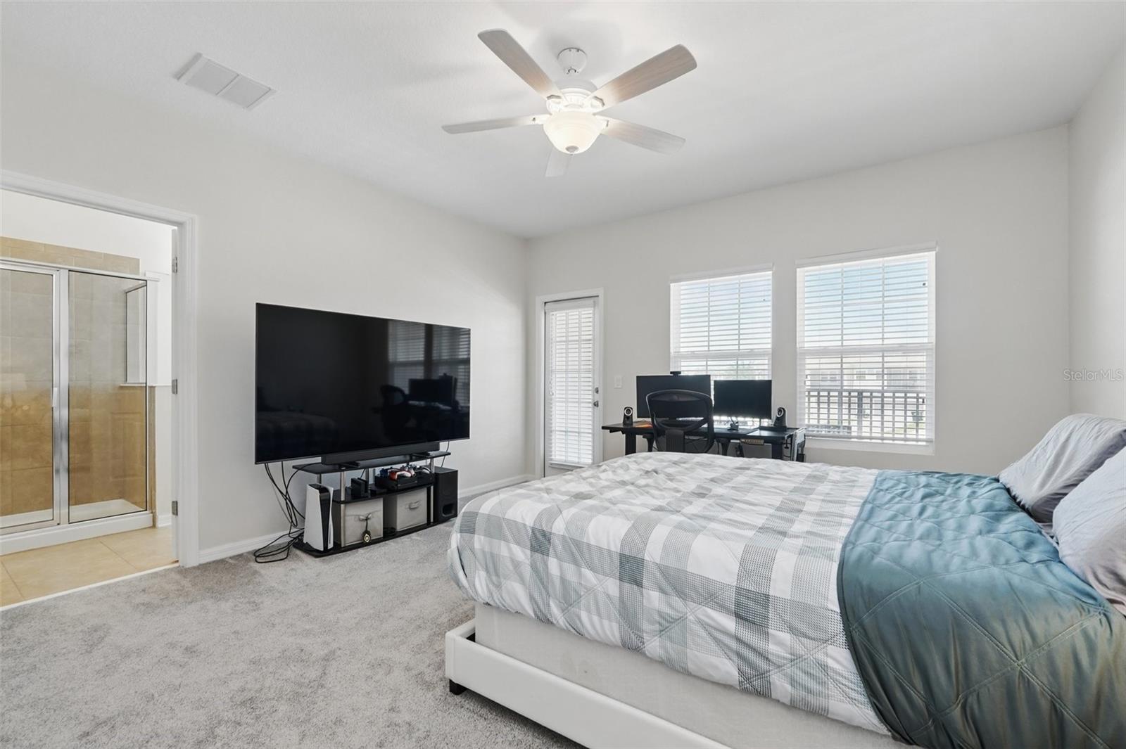 Welcome home to this spacious 2-story townhome featuring fresh interior paint, brand new carpet, and an ideal layout for modern living! The open-concept main floor boasts a large living and dining area with sleek laminate flooring, while the kitchen is equipped with stainless steel appliances and plenty of counter space. Upstairs, you’ll find a split-bedroom plan with all bedrooms conveniently located near the second-floor laundry room. The primary suite offers a walk-in closet, ceiling fan, and a luxurious bath with double sinks, a garden tub, separate shower, and a private water closet. The secondary bedrooms share a full bath with double sinks and a tub/shower combo. Enjoy quiet mornings on the covered balcony, and take advantage of the 2-car rear-entry garage plus a driveway that fits four more vehicles—plenty of space for guests or a growing household. This home is move-in ready and waiting for you! The community offers multiple playgrounds, play areas, dog parks, resort style pool with zero entry, fitness center, clubhouse - everything you need right here!