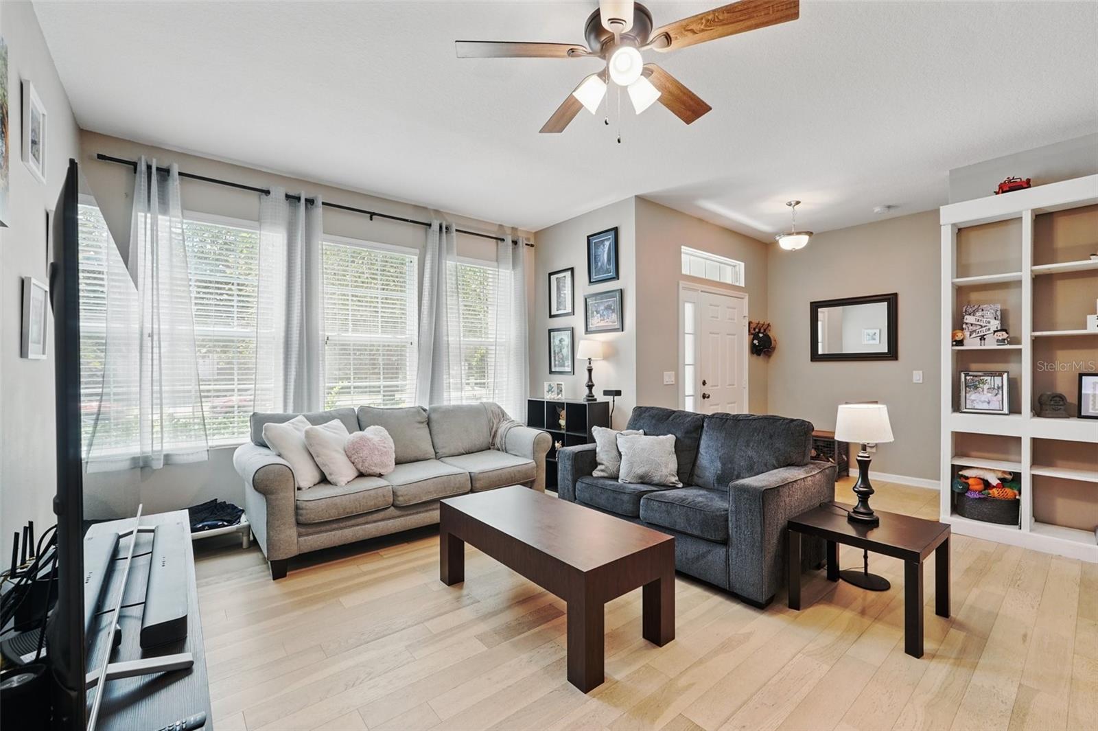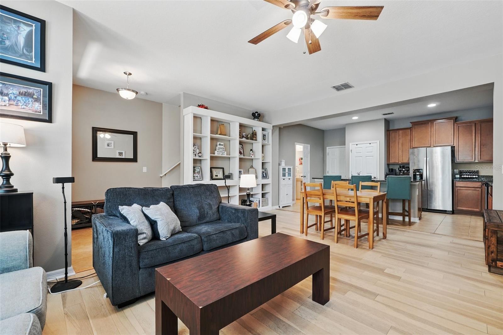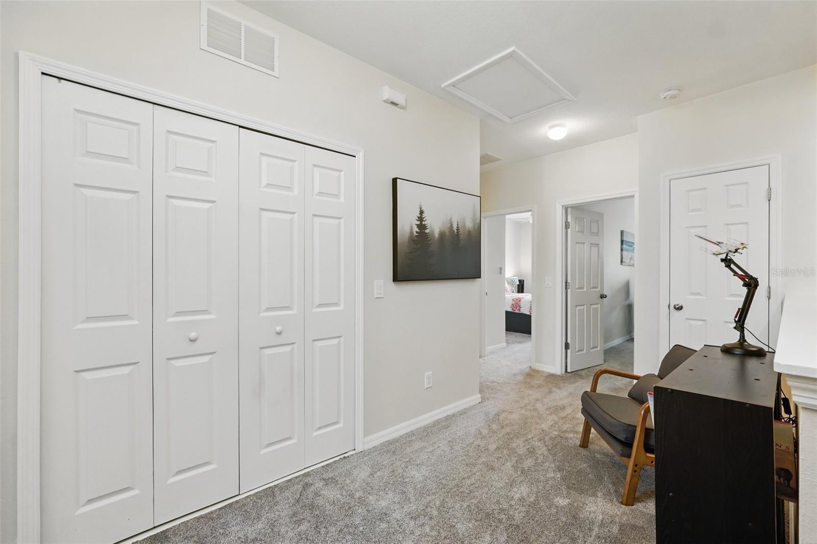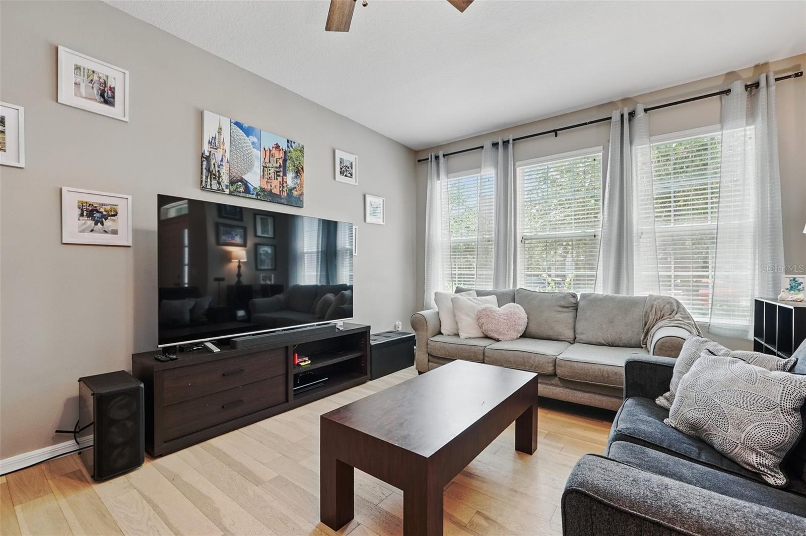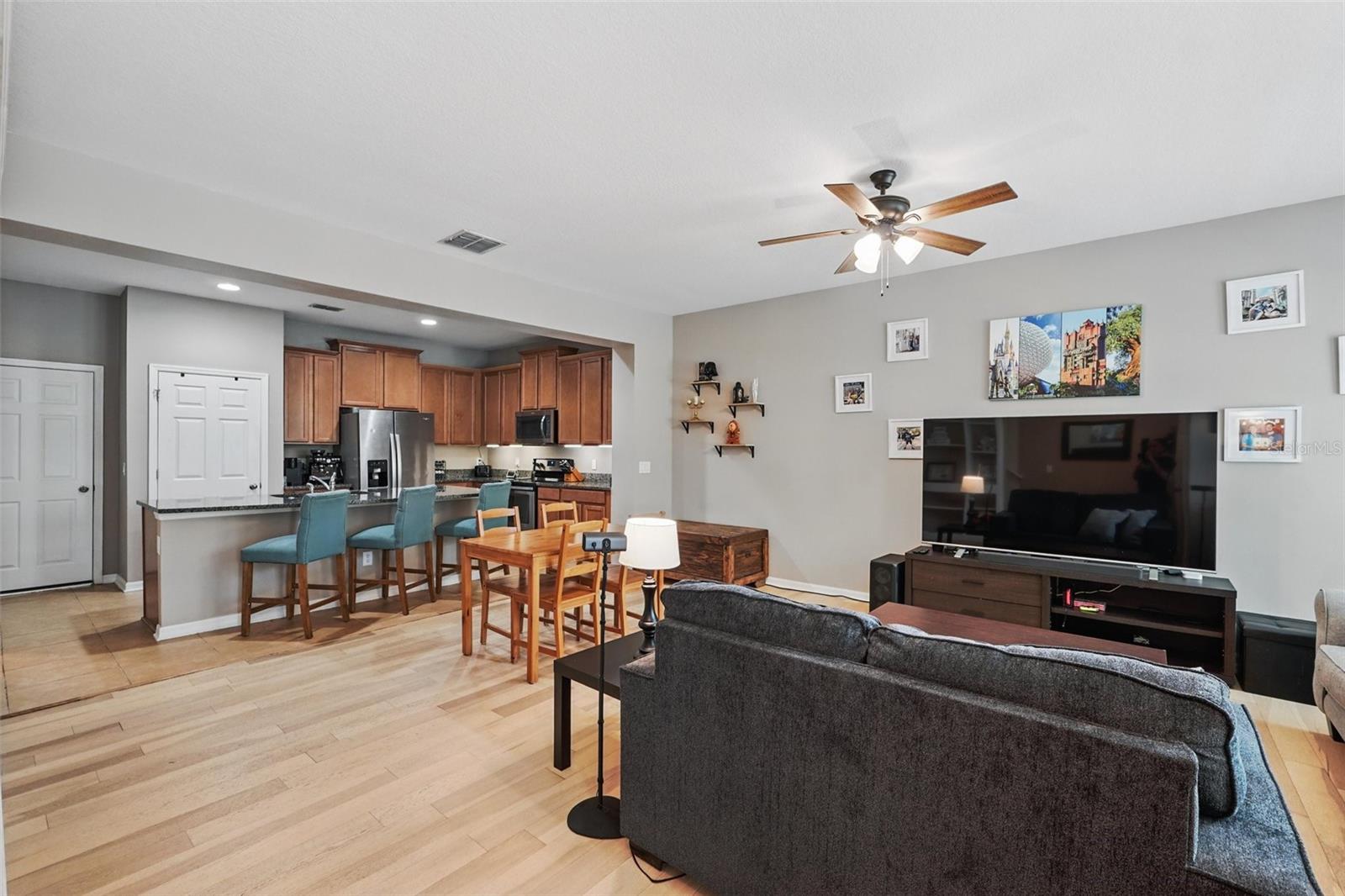 Welcome home to this spacious 2-story townhome featuring fresh interior paint, brand new carpet, and an ideal layout for modern living! The open-concept main floor boasts a large living and dining area with sleek laminate flooring, while the kitchen is equipped with stainless steel appliances and plenty of counter space. Upstairs, you’ll find a split-bedroom plan with all bedrooms conveniently located near the second-floor laundry room. The primary suite offers a walk-in closet, ceiling fan, and a luxurious bath with double sinks, a garden tub, separate shower, and a private water closet. The secondary bedrooms share a full bath with double sinks and a tub/shower combo. Enjoy quiet mornings on the covered balcony, and take advantage of the 2-car rear-entry garage plus a driveway that fits four more vehicles—plenty of space for guests or a growing household. This home is move-in ready and waiting for you! The community offers multiple playgrounds, play areas, dog parks, resort style pool with zero entry, fitness center, clubhouse - everything you need right here!