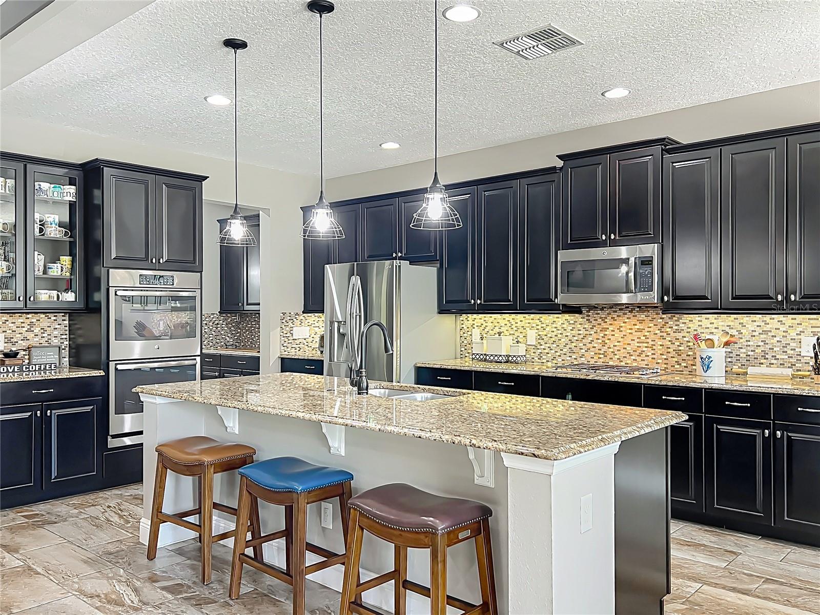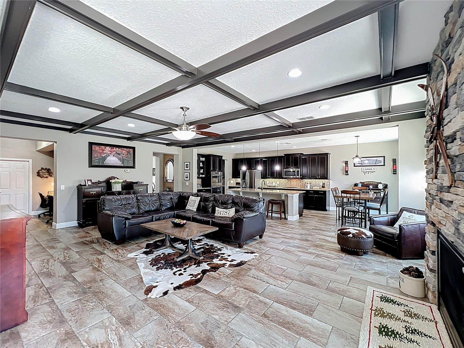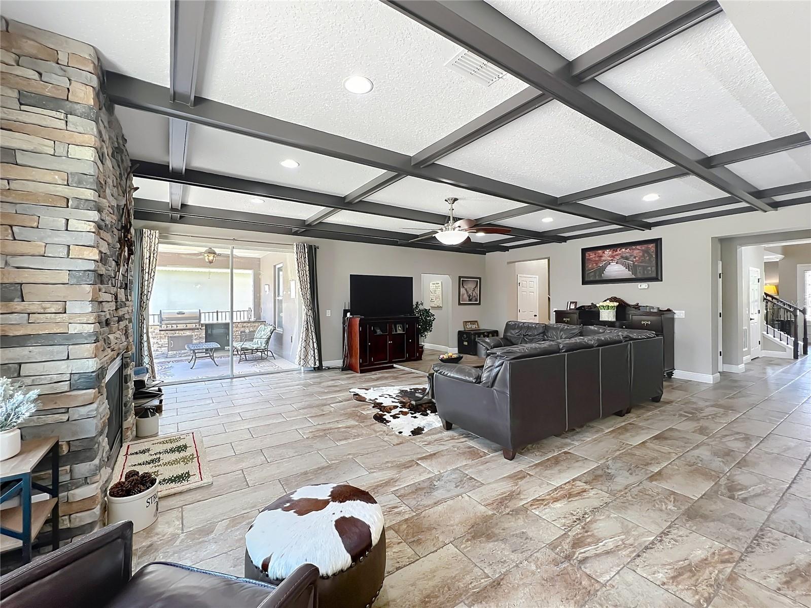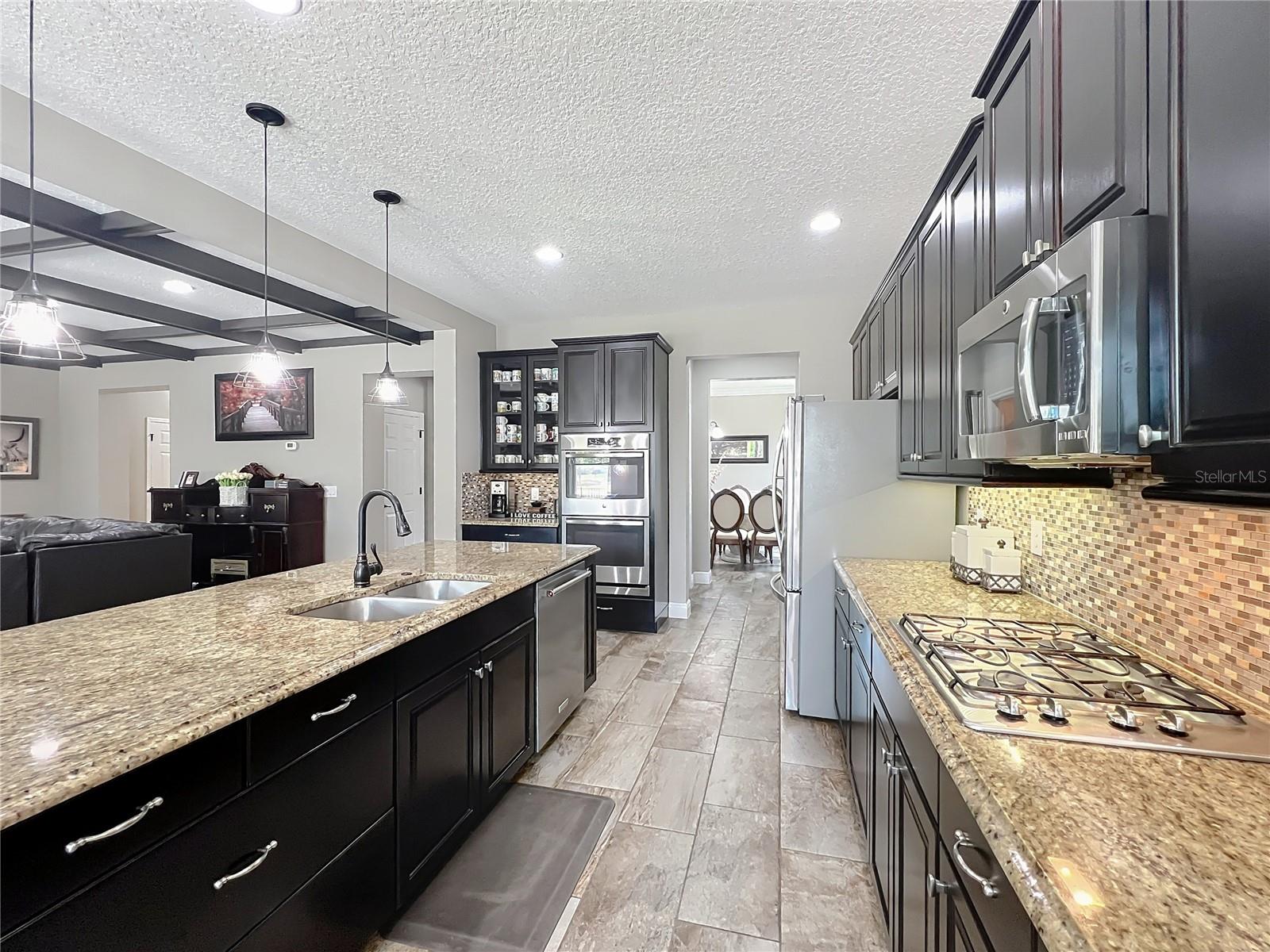 Spectacular 6 bedroom 4.5 bath, 4,733 Sq. Ft. home in the desirable Avalon Reserve subdivision! Expect to be impressed by this spacious home, with an open floorplan, and plenty of room for gatherings of family and friends. As you enter the home, to your left is a conveniently located large office / den with 8’ tall french doors, and to your right a formal living room. A generous sized dining room is up next, with easy access to the kitchen through the butler’s pantry, providing plenty of extra storage space. The massive kitchen has granite counters, stainless steel appliances, 42 inch cabinets, and beautiful tile floors, that are also throughout the majority of the lower level. A separate dinette area is adjacent to the kitchen, which both seamlessly connect to the enormous family room, complete with a stone, gas-powered fireplace, and decorative wood beams on the ceiling, adding tons of character to the space. The family room opens up to the outdoor kitchen and patio area, with brick pavers encompassing a large portion of the fenced backyard, overlooking the tranquil pond and fountain. One bedroom with its own ensuite bathroom is located on the first floor, while the other five bedrooms are on the second level. A separate built in office nook, completes the lower level, with two separate stairwells providing access to the second floor. Another massive family room / game room awaits you at the top of the stairs, along with 2 additional guest baths, utility room, and another built in desk / workspace. The oversized Owners Suite has its own private hallway, away from the other 4 bedrooms upstairs. As you enter, you are greeted by a private sitting area, and plenty of space for a King-sized bed. The enormous Owners Suite bathroom has dual walk-in closets, separate vanities, and a large shower and separate soaking tub overlooking the pond below. So many other features including an oversized two car garage with tons of storage space! Excellent Schools and a convenient location, with easy access to 429, and just a short drive to downtown Winter Garden, shopping, and dining! Don’t miss out on this wonderful opportunity for your dream home in Winter Garden!