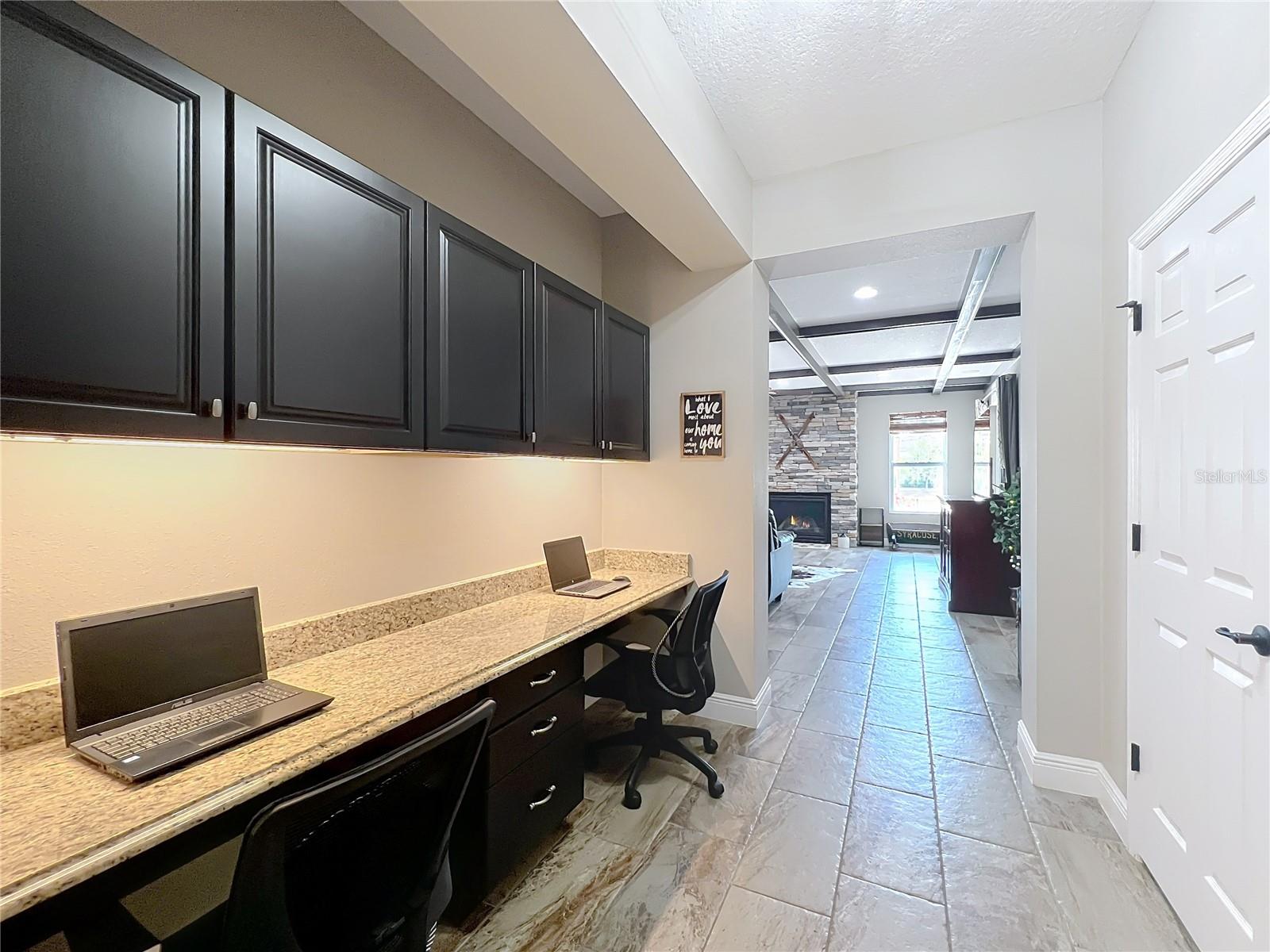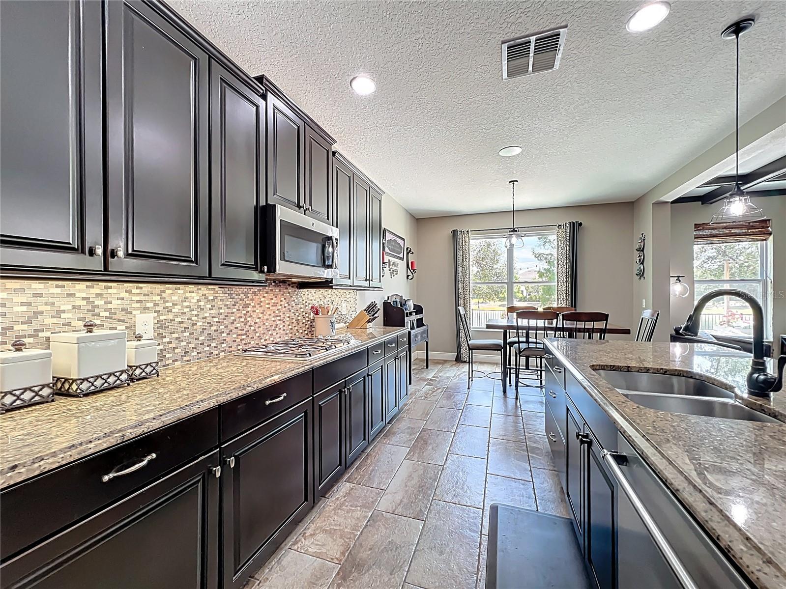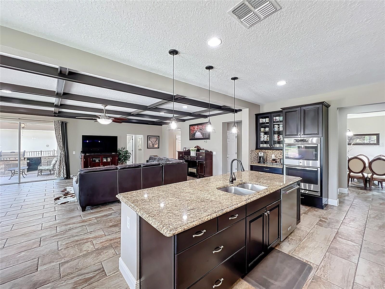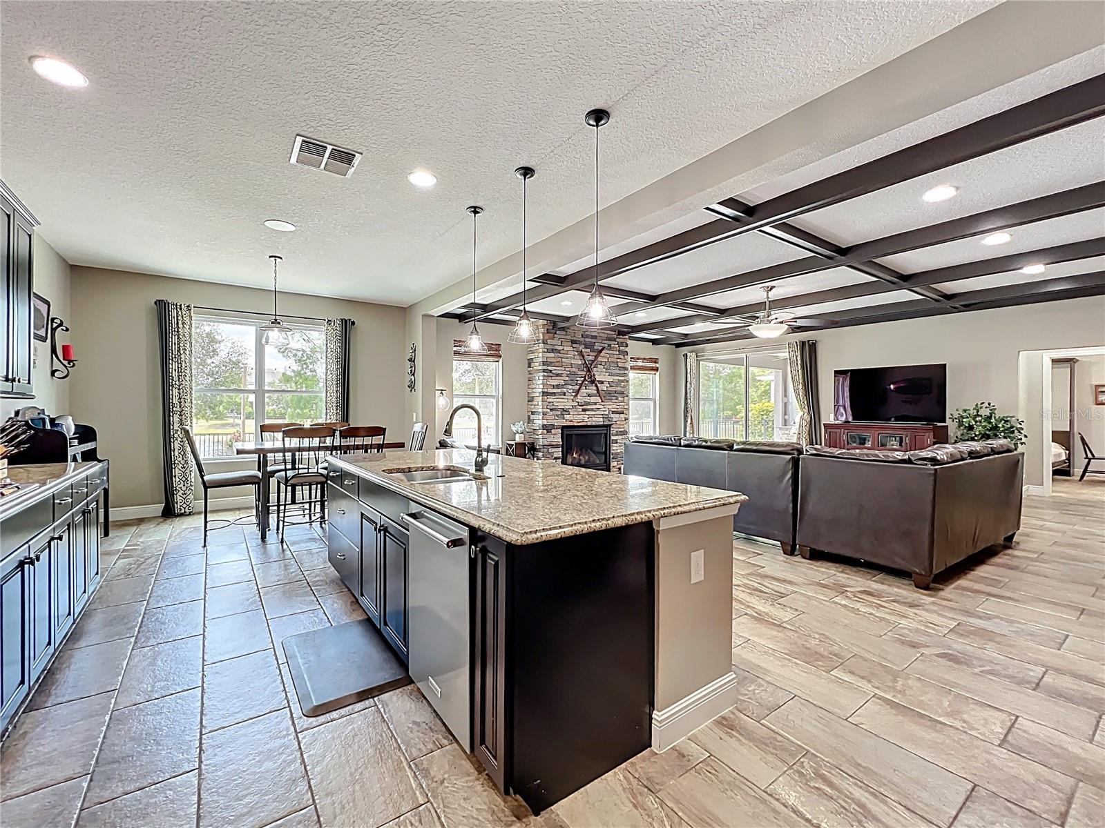 Spectacular 6 bedroom 4.5 bath, 4,733 Sq. Ft. home in the desirable Avalon Reserve subdivision! Expect to be impressed by this spacious home, with an open floorplan, and plenty of room for gatherings of family and friends. As you enter the home, to your left is a conveniently located large office / den with 8’ tall french doors, and to your right a formal living room. A generous sized dining room is up next, with easy access to the kitchen through the butler’s pantry, providing plenty of extra storage space. The massive kitchen has granite counters, stainless steel appliances, 42 inch cabinets, and beautiful tile floors, that are also throughout the majority of the lower level. A separate dinette area is adjacent to the kitchen, which both seamlessly connect to the enormous family room, complete with a stone, gas-powered fireplace, and decorative wood beams on the ceiling, adding tons of character to the space. The family room opens up to the outdoor kitchen and patio area, with brick pavers encompassing a large portion of the fenced backyard, overlooking the tranquil pond and fountain. One bedroom with its own ensuite bathroom is located on the first floor, while the other five bedrooms are on the second level. A separate built in office nook, completes the lower level, with two separate stairwells providing access to the second floor. Another massive family room / game room awaits you at the top of the stairs, along with 2 additional guest baths, utility room, and another built in desk / workspace. The oversized Owners Suite has its own private hallway, away from the other 4 bedrooms upstairs. As you enter, you are greeted by a private sitting area, and plenty of space for a King-sized bed. The enormous Owners Suite bathroom has dual walk-in closets, separate vanities, and a large shower and separate soaking tub overlooking the pond below. So many other features including an oversized two car garage with tons of storage space! Excellent Schools and a convenient location, with easy access to 429, and just a short drive to downtown Winter Garden, shopping, and dining! Don’t miss out on this wonderful opportunity for your dream home in Winter Garden!