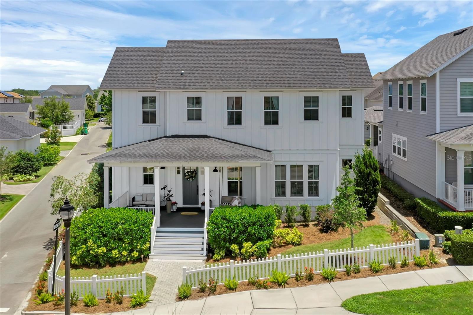 Welcome to Oakland Park, Winter Garden's premier community known for its majestic canopy oak trees and inviting green spaces! This stunning, custom-built home by J & J Building embodies the charm of traditional Florida vernacular architecture with an impressive, expansive front porch, perfect for enjoying those beautiful Florida evenings. Inside, discover a thoughtfully designed layout, perfect for both family living and entertaining. The heart of the home is the spacious great room, flowing seamlessly into the dining area and a modern kitchen. There is a guest room and full bathroom downstairs, allowing privacy and separation for your visitors. Upstairs, you'll find a luxurious master suite along with 2 generously sized bedrooms. A versatile loft area provides additional living or work space. You'll be amazed by the huge attic storage space too! Extend your living outdoors onto the large lanai, ideal for al fresco dining and relaxing. The large corner lot has plenty of additional space to add a pool, outdoor kitchen, casita, or whatever you can imagine. There are so many exciting custom features in this home: EV plug in, oversized garage, soundproofing on primary bedroom, Lutron Caseta WiFi outlets, smart thermostats, WiFi smart deadbolts on all doors, Swing set, GE Cafe appliances, Mudroom custom woodwork, Wainscoting custom in dining room and powder bath, Trex decking on front porch, Level 7 tile in the Primary bathroom and Custom built ins in the living room! Located in the desirable Oakland Park community, you'll enjoy access to beautiful parks, walking trails, and a vibrant neighborhood atmosphere that is right in the golf cart district and near downtown Winter Garden. Don't miss out on this incredible opportunity to own a piece of paradise! This home is priced to sell and won't last long!