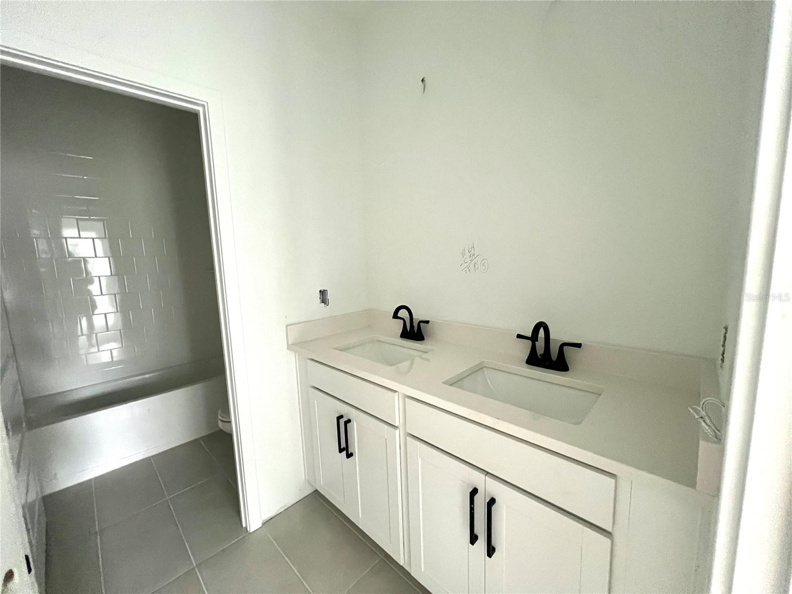 Under Construction. New Home by RockWell Homes – Frost Plan lot #104. Discover the elegance and comfort of a luxurious new home designed to meet all your needs. This stunning home features 5 bedrooms, 4 bathrooms, and a spacious layout that includes both a primary suite and a guest bedroom on the first floor, making it ideal for multi-generational living or hosting visitors. The Frost plan also boasts an oversized covered front patio, a beautiful 8-foot front door, and a covered backyard lanai for seamless indoor-outdoor living. Step into the heart of the home, where the chef-inspired kitchen features a large eat-in island, stainless steel appliances, including a cooktop, oven, microwave, and dishwasher, and an undermount sink with a Delta faucet. The kitchen is further enhanced with a ceramic tile backsplash, upgraded 42-inch cabinets, abundant solid surface countertop space, and a huge walk-in pantry, offering both style and practicality for meal preparation and storage. The upgraded flooring and lighting package throughout the home complete the modern, elegant aesthetic. The luxurious primary suite is located on the first floor for ultimate convenience and privacy. It includes a dual-sink vanity with Delta faucets, a ceramic tile shower with a glass enclosure, ceramic tile flooring, and a lighting package. A spacious walk-in closet and towel bars add to the functionality and style of this retreat. Also located on the first floor, the secondary suite offers a full bath with ceramic tile flooring, a ceramic tile tub/shower surround, Delta faucets, a lighting package, and towel bars, ensuring comfort and convenience for guests or family members. Upstairs, you’ll find three additional secondary bedrooms, each with generous closet space and access to two additional bathrooms, which feature ceramic tile flooring, Delta faucets, lighting packages, and towel bars. The Frost plan also includes a gameroom, perfect for family entertainment or as a versatile space for play, work, or relaxation. The home is designed with energy-efficient construction and dual-pane energy-efficient windows, keeping your energy costs down while ensuring comfort throughout the year. Additional features of this new home include a full landscaping package, a full sprinkler system, a garage door opener, covered back yard lanai, oversized backyard space for pool, upgraded flooring throughout, and a new home warranty for added peace of mind. With its spacious layout, luxurious finishes, and modern amenities, the Frost plan by RockWell Homes is the perfect choice for those seeking both elegance and functionality in their next home.