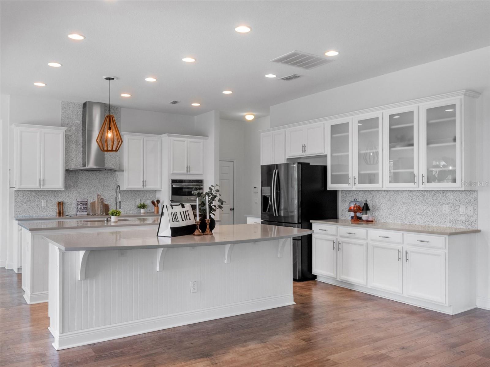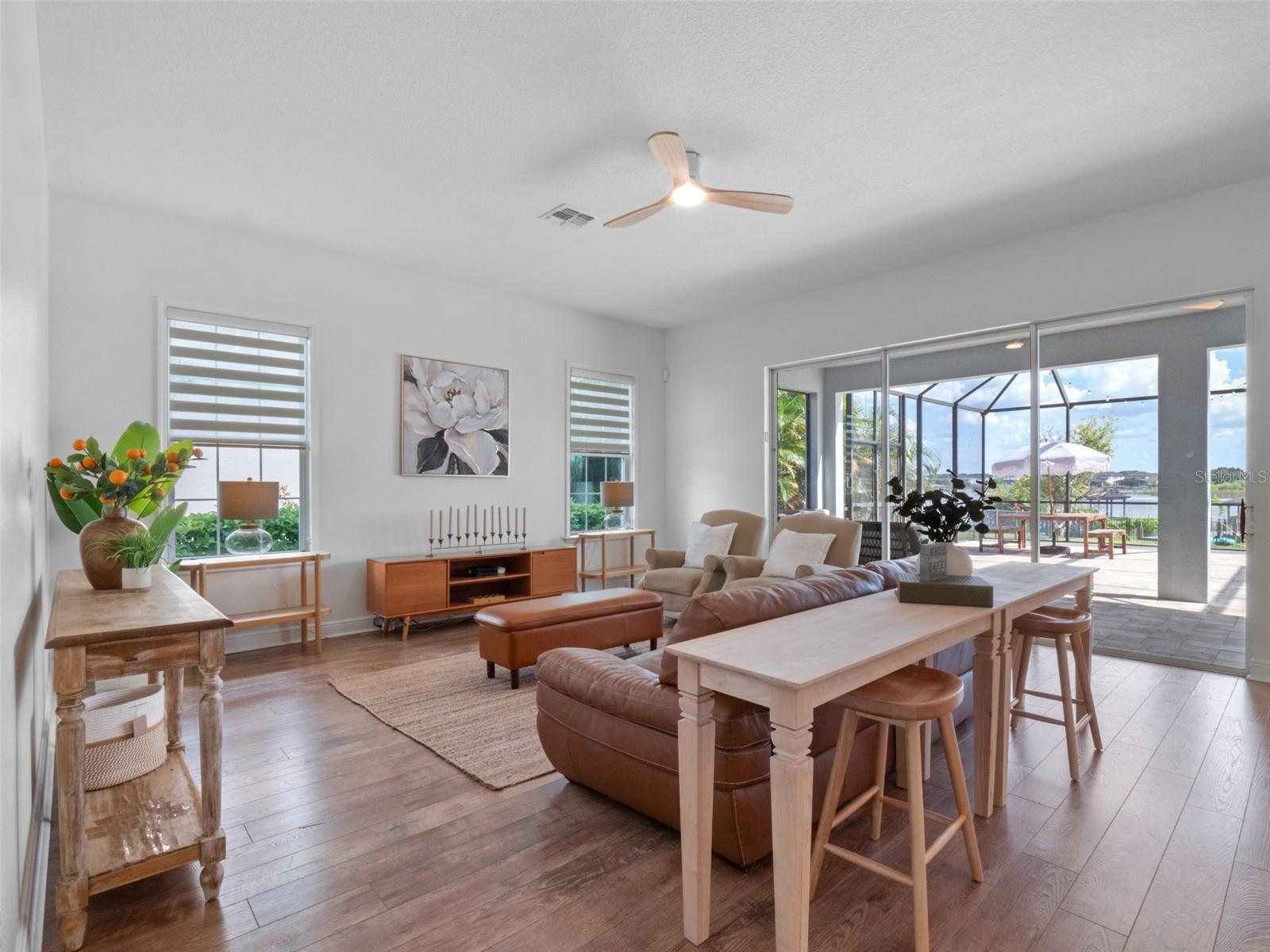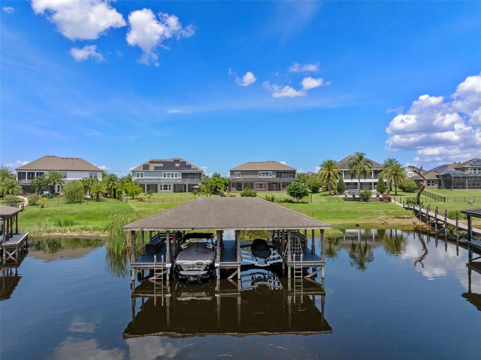 Presenting 16086 Johns Lake Overlook Drive – Lakefront Elegance in Hickory Hammock – $1,850,000 Wake up to sweeping views of Johns Lake and end your day with brilliant sunsets from your own backyard. Set on a half-acre with 100 feet of lake frontage, this 5-bedroom, 4 full/2 half-bath home offers 4,474 sq ft of living space, a private dock with boat lift, and a resort-style pool combining refined finishes with functional design for both everyday comfort and entertaining. A dramatic two-story foyer with soaring ceilings sets the stage, flowing into an expansive open layout centered around a chef’s kitchen. This culinary showpiece boasts two oversized wood-wrapped islands, lustrous quartz countertops, white cabinetry with custom storage, convection oven/microwave combo, an electric cooktop, and a walk-in pantry. The adjoining dinette and spacious family room seamlessly connect through triple sliders to the screened lanai, creating an effortless indoor-outdoor living experience. Outdoors, enjoy a heated saltwater pool with lap lane, sun shelf, and lighting, all framed by beautiful landscaping and a fully fenced yard. On the shores of John's Lake, your dock features a 7,500-lb lift and Trex decking for durability and functionality. Also equipped with a dedicated seating area, electric and water, this space creates a versatile outdoor retreat—perfect for entertaining or enjoying the signature experiences of lakefront living. The first floor features a private in-law suite with its own entrance, a full bath with a walk-in shower, a walk-in closet, and direct access to a screened patio. Upstairs, the primary suite showcases breathtaking lake views through a wall of windows, French doors opening to a private balcony, elegant tray ceilings, and a spa-inspired bath with dual vanities, a soaking tub, and an expansive walk-in shower. Three additional bedrooms include one with a private en-suite bath and two connected by a Jack-and-Jill bath. A generous bonus room overlooking the water offers endless possibilities—ideal for a game room, media lounge, or executive home office. This property also features fully paid-off solar panels, providing a net $0 electric bill—a rare and valuable benefit for Florida living. Additional highlights include engineered hardwood flooring throughout, fresh interior and exterior paint (2025), and a split three-car side-entry garage. Residents also enjoy an array of resort-style amenities, including a sparkling pool, state-of-the-art fitness center, clubhouse, tennis and volleyball courts, playground, dog park, fishing pier, and scenic walking trails. Ideally situated near Winter Garden Village, historic downtown Winter Garden, and zoned for top-rated schools, this home offers convenient access to major highways—placing Orlando and surrounding destinations just minutes away. Experience the lakefront lifestyle without compromise. Schedule your private tour today before this rare opportunity is gone.