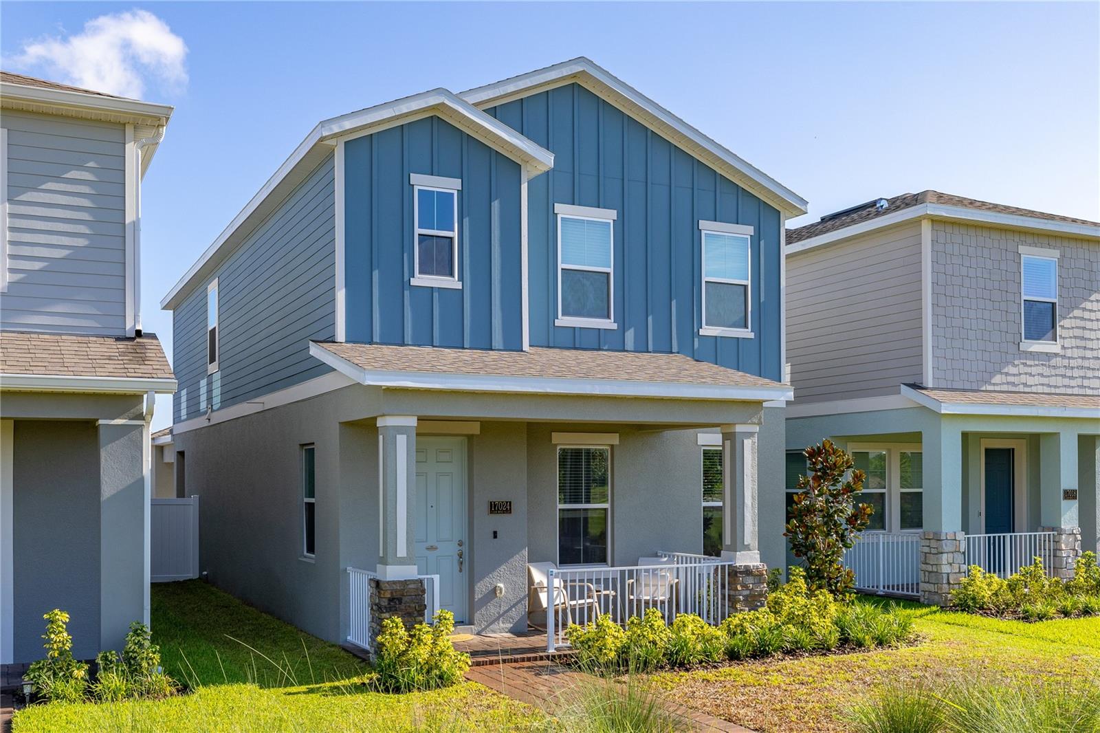 Loved for its open, light-filled layout, the COOPER C FLOOR PLAN also shines with a location that puts you moments from premier shopping, dining, theme parks, major highways, and quick access to the back side of DISNEY, and it is zoned to a TOP SCHOOL DISTRICT. With its private courtyard, covered lanai, and two-car garage (additional parking spaces available in driveway and on the street), this home delivers the luxury lifestyle you want—without the wait to build. Work at Home? No problem, the FIBER INTERNET IS INCLUDED in the LOW HOA—plus you get a like-new home loaded with luxury upgrades and positioned on an unbeatable premium lot Inside, you’ll find a GOURMENT KITCHEN, with wall over, upgraded cabinetry, a OVERSIZED walk-in PANTRY, a timeless backsplash, and a MASSIVE ISLAND ideal for entertaining. The laundry room is just as impressive, featuring custom upper and lower cabinets plus a built-in sink—both stylish and functional. Upstairs, the owner’s suite is a private retreat with a HUGE WALK-IN-CLOSET and a spa-inspired bath complete with a frameless shower, DUAL shower heads, and a RAINFALL feature that turns every morning into a luxury experience. What truly sets this home apart is the location: instead of facing another driveway, you’ll enjoy wide-open green space with a playground and pavilion right out front—perfect for relaxing on the porch while watching the little ones play. The community offers multiple playgrounds, walking trails, picnic areas, a dog park, and a low HOA that even covers your internet. Plus, you’re under 15 minutes to top-rated schools, Flamingo Crossing Town Center, Walt Disney World, major hospitals, and Orange County National Golf with its two championship courses and massive driving range. Hwy 429 is just minutes away for easy access across Central Florida. Loved for its open, light-filled layout, the Cooper floor plan also shines with a location that puts you moments from premier shopping, dining, theme parks, major highways, and quick access to the back side of Disney. With its private courtyard, covered lanai, and two-car garage, this home delivers the luxury lifestyle you want—without the wait to build.