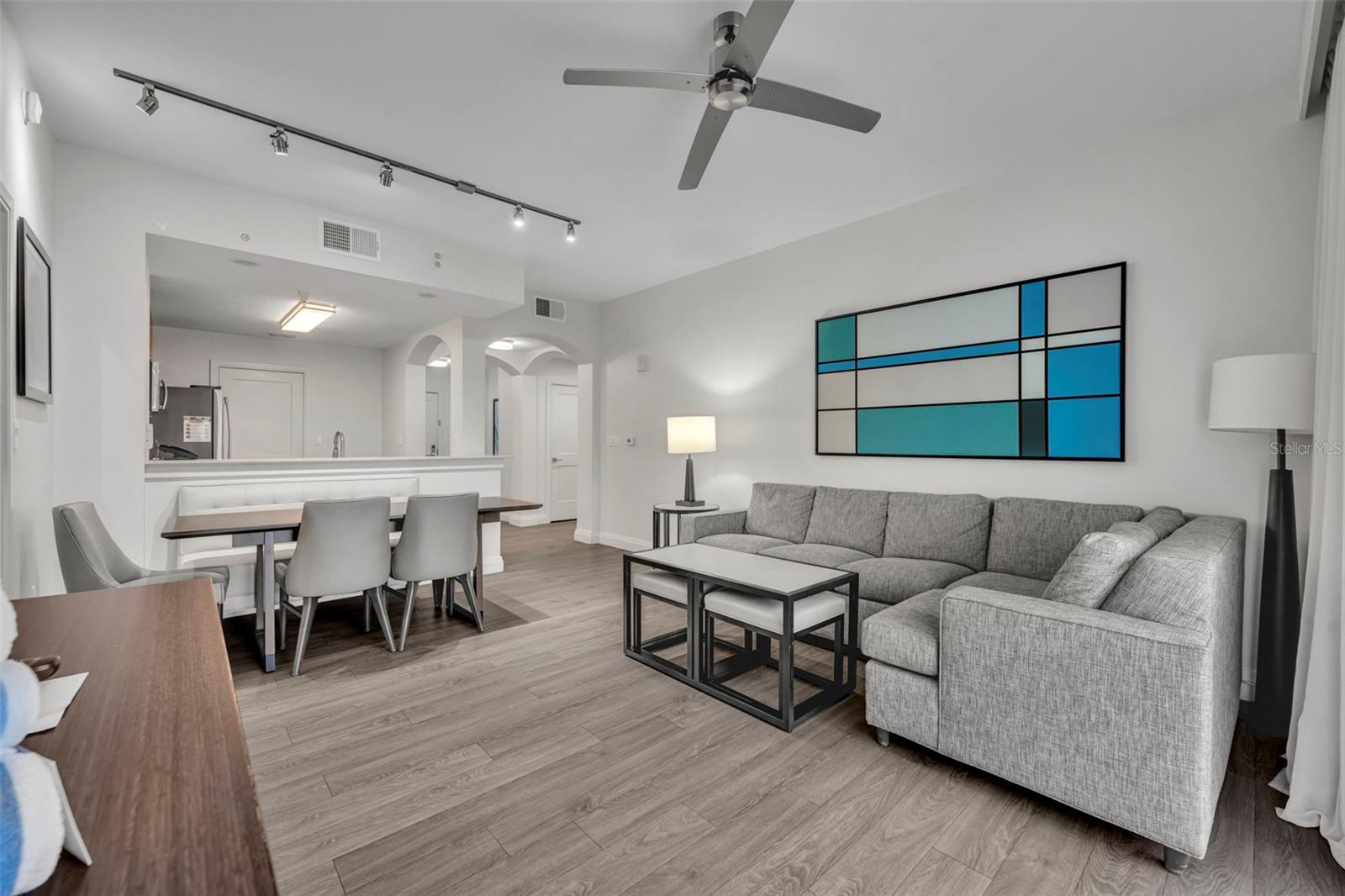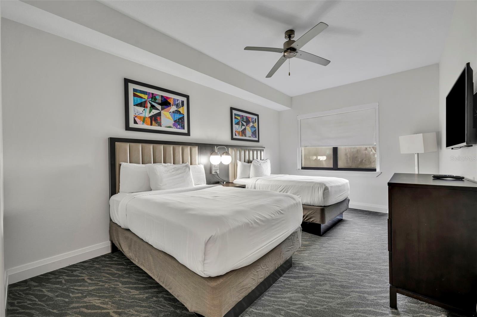 The Orlando Investment Dream! This fully furnished 2-bedroom, 2-bathroom condo is located in The Grove Resort & Spa, one of Central Florida’s top vacation investment communities! Situated on the 5th floor with sweeping tree-line & courtyard views. Located just minutes from Disney World, and close to Universal Studios and SeaWorld. The open-concept floor plan features a beautifully designed kitchen, spacious great room, and oversized windows that fill the space with natural Florida sunlight. Enjoy peaceful views from your private balcony, and relax in the primary suite with a spa-style bathroom offering a garden tub, tiled shower, and dual vanities. The split-bedroom layout ensures privacy, and the unit includes four large-screen TVs. Incredible resort amenities include the Surfari Water Park with a FlowRider® surf simulator, lazy river, water slides, zero-entry pool, activity pool, three additional pools, a jacuzzi near the building, private cabanas with food & drink service, on-site dining at Longboard Bar & Grill, spa, fitness center, arcade, and more. This turnkey investment includes all current bookings at closing, with on-site management handling hotel operations and maintenance for truly hands-free income. Schedule your private showing today!