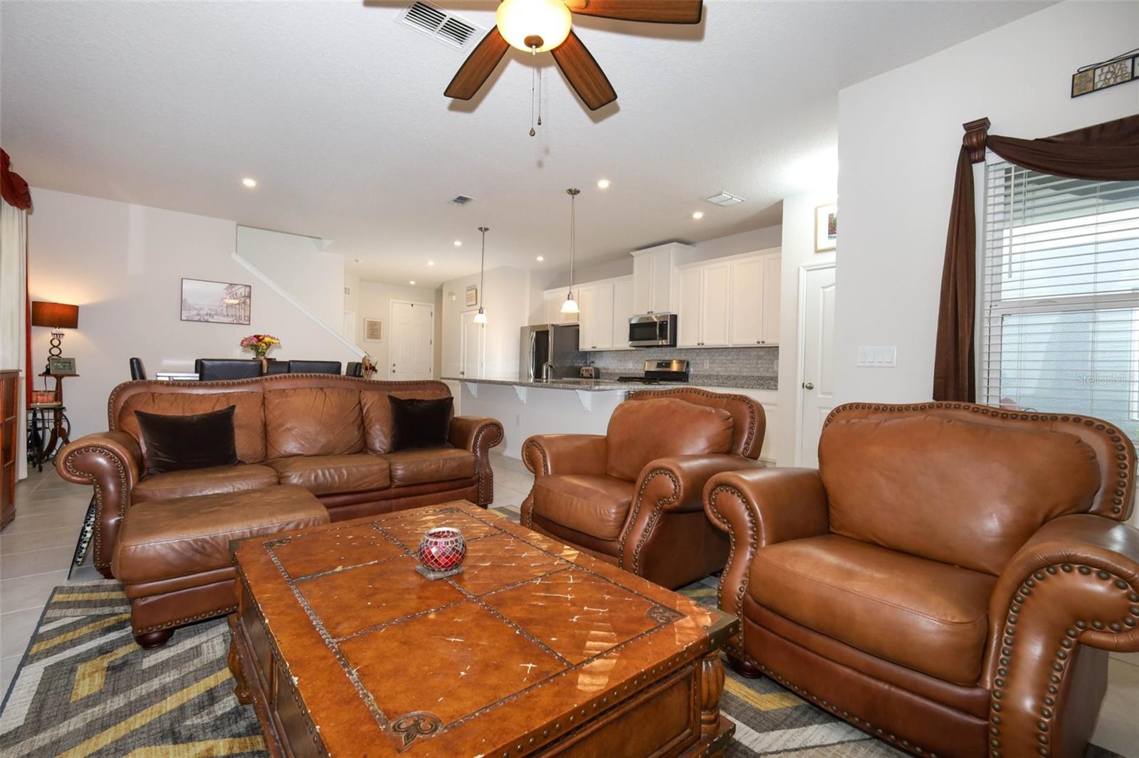 This thoughtfully designed Hutchinson model blends smart functionality with stylish living in one impressive package. At its heart is a chef-inspired kitchen—a true entertainer’s dream—featuring a striking 9-foot granite island, stainless steel appliances, white cabinetry, and a gas range. The open-concept design flows seamlessly into the dining and living areas, creating the perfect setting for everyday living and special gatherings alike. The first floor also offers a versatile flex room, ideal as a guest suite, home office, or cozy den. Just beyond, a private lanai provides a welcoming space to enjoy morning coffee or sunset views. Upstairs, a spacious loft offers endless possibilities as a playroom, study, or family lounge. Two secondary bedrooms share a full bath, while the expansive primary suite impresses with a spacious walk-in closet and a spa-like bath featuring dual sinks. A rear load 2-car garage completes the picture. Community amenities include a resort-style, beach-entry pool, dog park, playground, and sports field, all with a low HOA. Located in a top-rated school district and minutes from dining, shopping, trails, and Orlando attractions, this home checks every box.