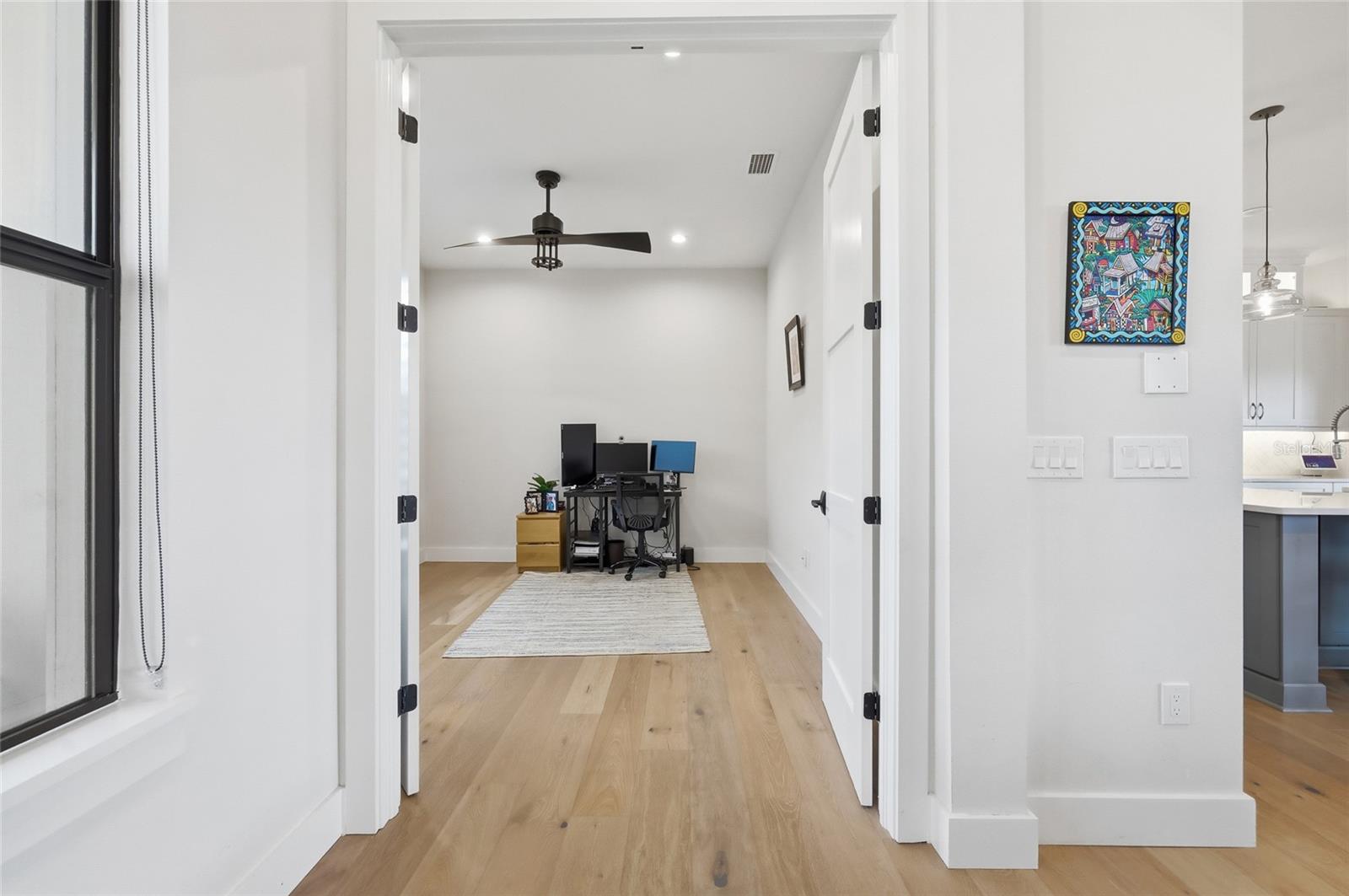 Discover the pinnacle of custom-built luxury in Winter Garden with this spectacular 5-bedroom, 3-bathroom Modern Farmhouse, crafted by the esteemed Justice & Wood Builders. This home is situated within Oakland Hills, a truly exclusive enclave of just 17 homesites, offering a private and peaceful lifestyle while remaining mere moments from the energy of Historic Downtown Winter Garden. Set on a rare and expansive 0.47-acre lot, the property is graced by the majestic, moss-draped canopy of towering old oak trees, creating an idyllic, tranquil setting from the moment you arrive. Step inside to an airy, open-concept living space where natural light floods the wide-plank wood floors. The heart of the home is defined by dramatic cathedral ceilings, beautifully accentuated by rich, exposed timber ceiling beams. The kitchen is a masterful fusion of high design and functionality—a space that moves beyond standard "gourmet." It features premium shaker cabinetry, a massive center island finished in a striking blue-gray hue for contrast, and luxurious quartz countertops. Chefs will appreciate the professional stainless steel appliances, the deep farmhouse sink, and the dedicated natural gas range for precision cooking. The home's thoughtfully designed layout provides versatile living areas for every need. The three-car garage offers not just ample storage and parking, but the convenience of an EV adapter in the third bay, ready for your electric vehicle. Escape to the generous private bedrooms, the upstairs bedroom offers a flexible space that can easily serve as a dedicated home office, home gym, media room, or guest suite. This room comes with the significant advantage of both air-conditioned storage and a large walk-in attic, ensuring clutter-free living. Bathrooms feature clean lines, modern fixtures, and striking custom tilework. The dedicated laundry room is equally impressive, boasting extensive cabinetry, quartz counters, and an eye-catching patterned tile backsplash. The fully fenced backyard provides exceptional privacy for your personal resort. The stunning private pool and spa are surrounded by a spacious paver patio, complemented by a charming fire pit area, making this the ultimate space for both lavish entertaining and quiet relaxation. Crucially, this exceptional home is zoned for highly-rated schools offering excellent educational opportunities. The coveted location ensures you are only minutes from the vibrant, golf-cart-friendly atmosphere of Historic Downtown Winter Garden, with its acclaimed Farmers Market, Plant Street Market, unique boutiques, and fine dining. This is a rare opportunity to own a meticulously crafted, custom home in one of Winter Garden's most desirable and private communities--priced BELOW APPRAISED VALUE. Schedule your private showing today to experience this unparalleled lifestyle in Oakland Hills!