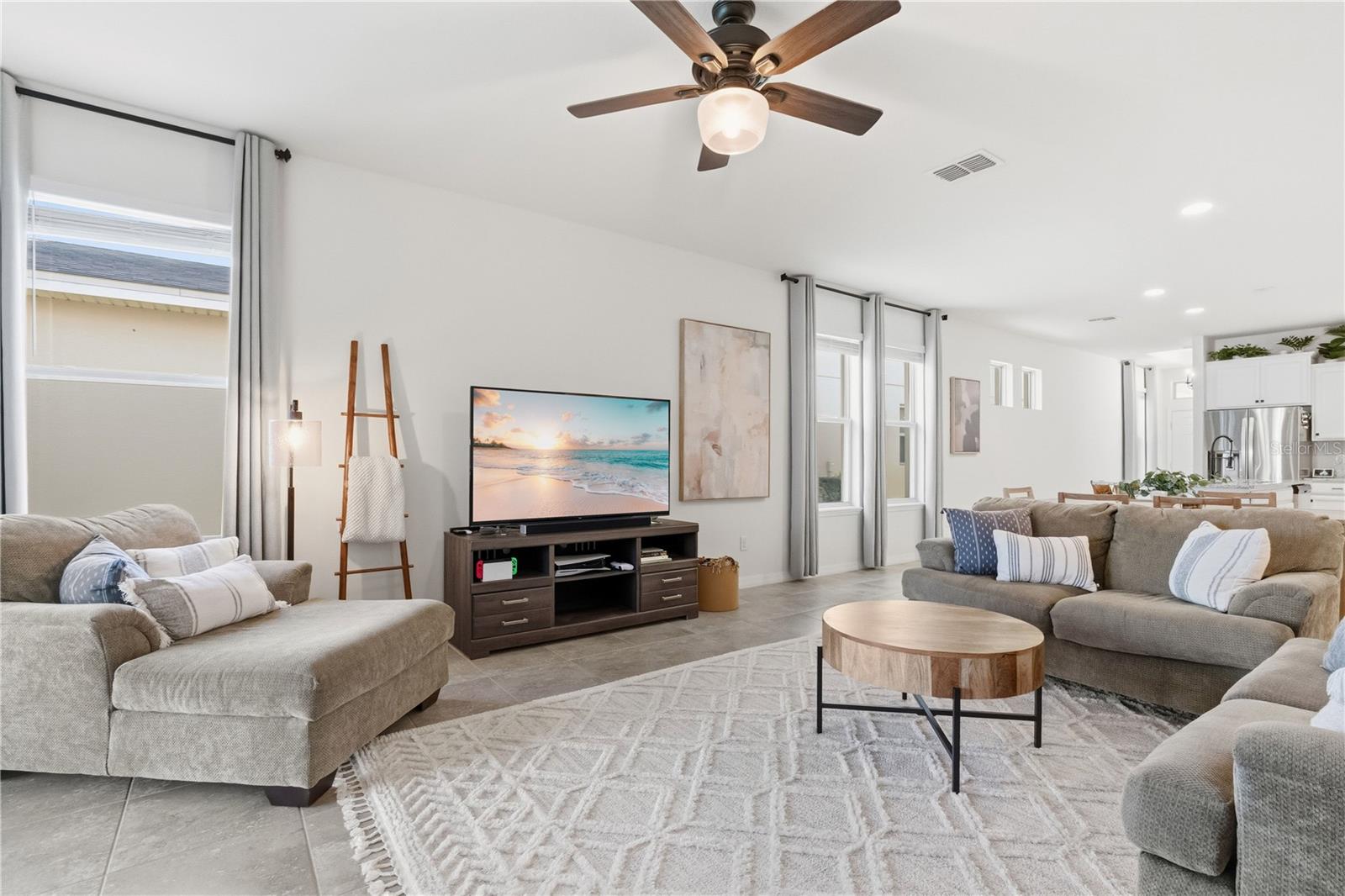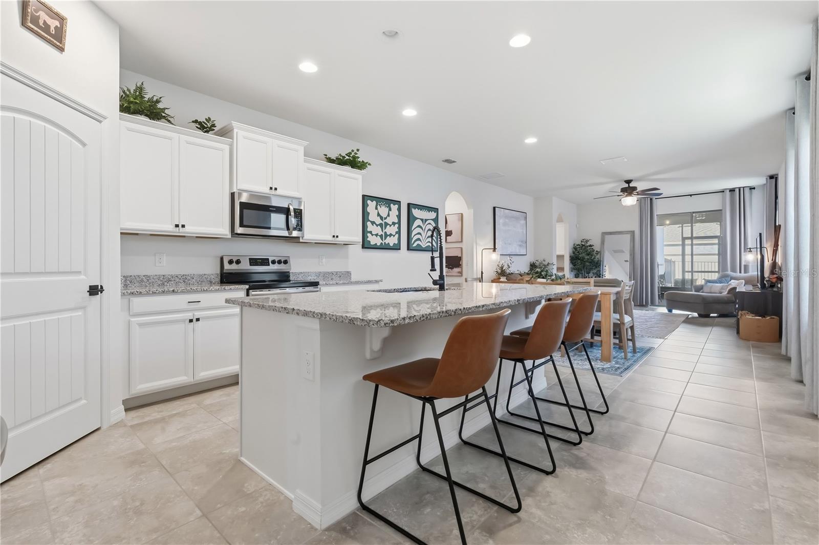 Welcome home to the highly sought-after Waterleigh community in Horizon West. This bright and inviting single-story residence offers 3 bedrooms and 2 bathrooms, thoughtfully designed for comfort and everyday living. The primary bedroom is a true retreat, filled with natural light and featuring an en-suite bathroom with dual sinks, a spacious walk-in shower, and a custom-designed walk-in closet. At the heart of the home, the open-concept kitchen flows seamlessly into the family room, creating an ideal space for both relaxing and entertaining. The kitchen is highlighted by an oversized granite island, stainless steel appliances, and a large custom walk-in pantry. Step outside to the private, paved, and screened lanai—perfect for enjoying Florida living year-round. Additional features include a fenced backyard, gutters, and tile flooring throughout the entry, kitchen, and main living areas. Waterleigh offers exceptional resort-style amenities, including two clubhouses, multiple pools, mini golf, sports fields, fitness centers, tennis courts, scenic walking trails, lakes, ponds, and a community garden. Conveniently zoned for top-rated schools and ideally located near Horizon West shopping and dining, Disney, major highways, and a Publix just minutes away, this home delivers the perfect blend of lifestyle, convenience, and comfort. Schedule your private showing today and discover why Waterleigh continues to be one of Winter Garden’s most desirable communities.