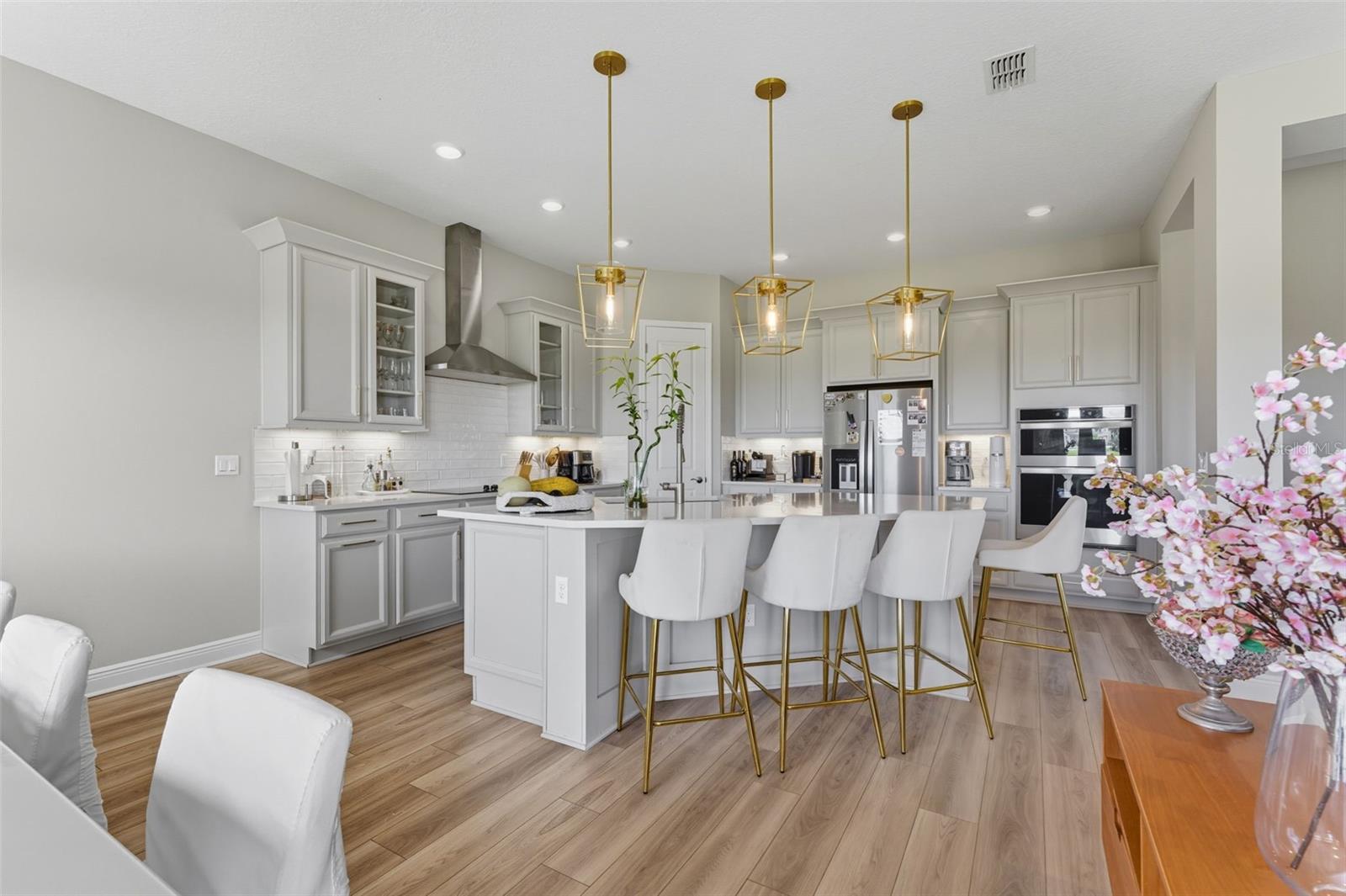 Welcome to this exceptional Barret floor plan in the exclusive Silverleaf Reserve by Meritage Homes, offering 4 spacious bedrooms, a versatile bonus room, a dedicated office, and an additional flex space currently used as a music room. Positioned on one of the best lots in the community, this home features stunning lake views, unmatched privacy, and a thoughtfully designed layout for both comfort and functionality. This residence is loaded with upgrades: luxury vinyl flooring throughout, elegant quartz countertops, soft-close cabinetry, designer glass-front cabinets, and beautiful under-cabinet lighting that adds charm and sophistication to the kitchen. The master bedroom is located on the second floor, making it perfect for families with young. On the first floor, a guest suite is conveniently located near the entrance, ideal for visitors or elderly family members. The home also includes a stylish powder room (half bath) for added convenience. The bonus room provides endless flexibility, whether as a media room, playroom, or additional lounge space, while the office is perfect for working from home. The unique music/flex room adds character and versatility to the home. Located in Winter Garden’s prime area, Silverleaf Reserve offers not only a premium lifestyle but also the convenience of two highly rated public schools (elementary and middle) right inside the community, along with easy access to shopping, dining, and major highways. This property is the perfect combination of modern design, luxury finishes, and an unbeatable location — a rare opportunity in the heart of Winter Garden.