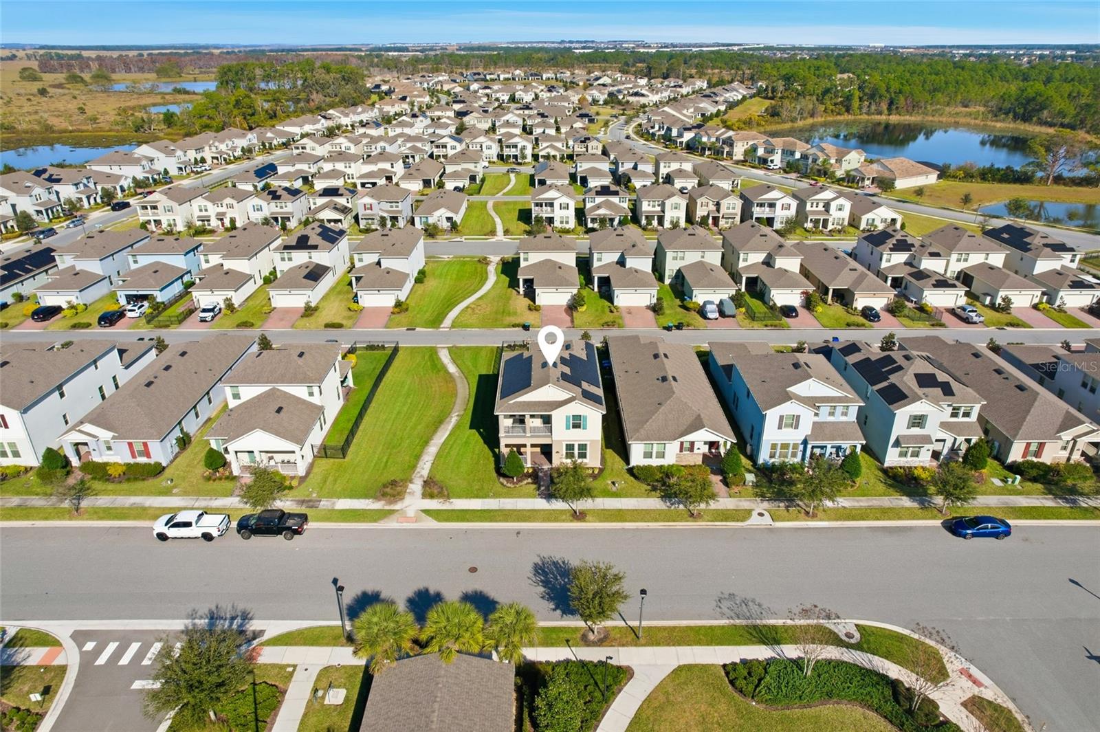 Presenting this move-in-ready 4 bed, 3.5 bath home in Waterleigh. The first floor features solid surface flooring throughout, an updated staircase with beautiful wood floors, and an impressive master walk-in closet with built-ins. Additionally, one guest bedroom and bathroom on the first floor provide perfect accommodations for guests. The master bedroom, along with two other bedrooms, is located on the second floor, separated by a spacious loft that grants access to a large balcony overlooking the pool and park. The resort-style community offers a stunning pool, beach volleyball, and tennis courts. Lawn care and landscaping are included in the HOA, so there's no need to worry about maintenance. The owner has invested extensively in energy efficiency, with whole-home solar panels and spray foam attic insulation. Don't let this opportunity pass you by.
