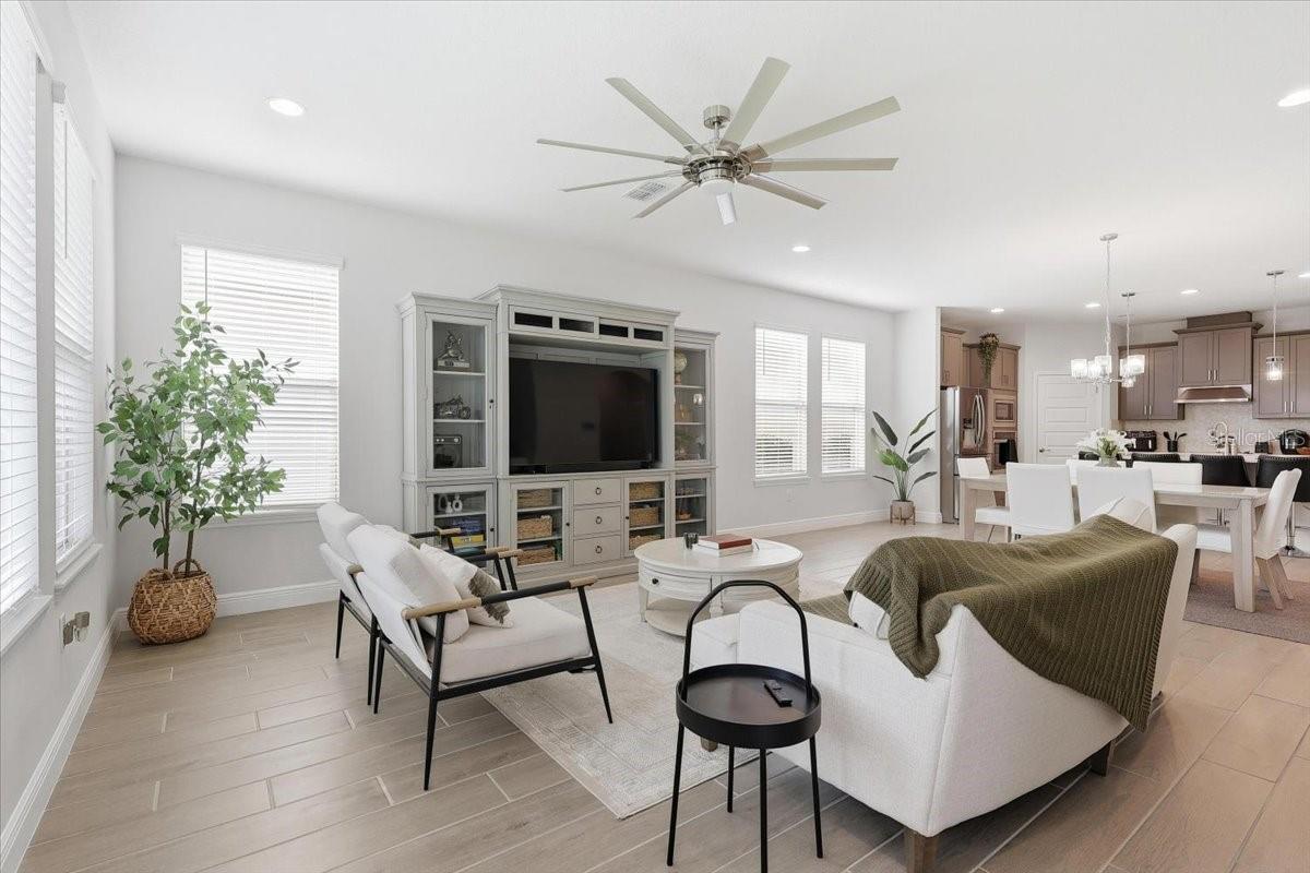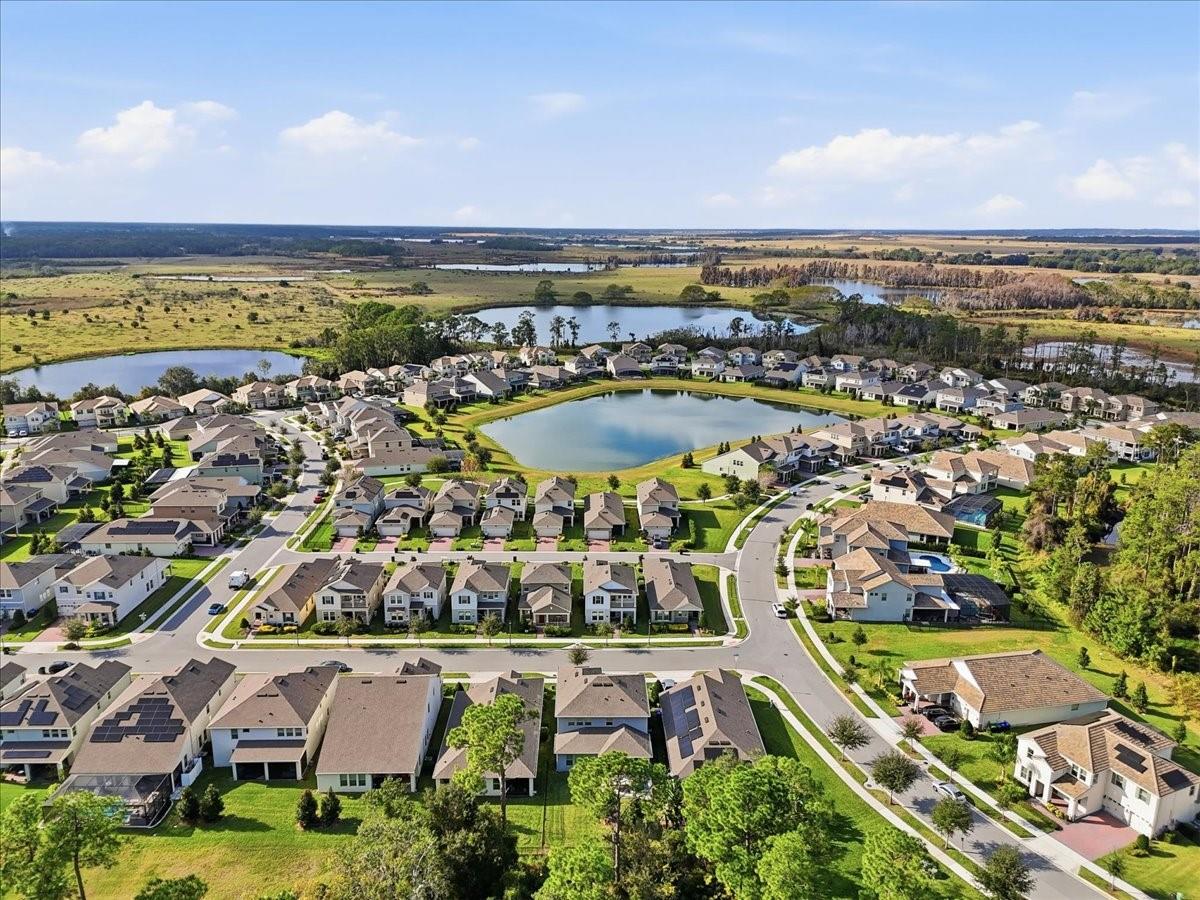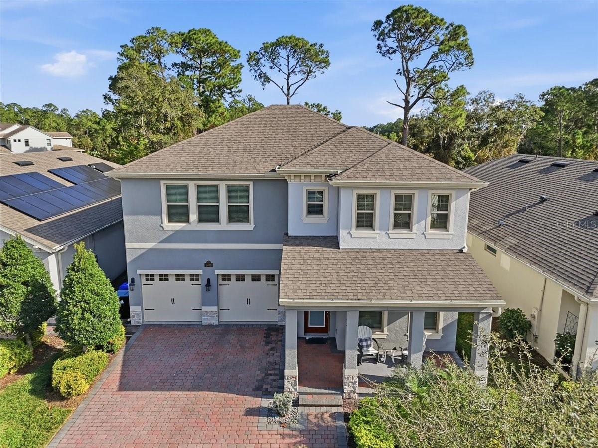 Seller offering $10,000 toward Buyer’s Closing Costs + Golf Cart AND Furniture INCLUDED with sale! No rear neighbors! Situated on a premium conservation lot with lake views, this fully furnished 4-bedroom, 3-bathroom two-story home in the desirable Waterleigh community offers privacy, upgrades, and true move-in-ready convenience. Exceptional curb appeal features a brick paver driveway and welcoming front porch. Inside, enjoy wood-look tile throughout the main living areas, a flexible formal sitting room ideal for entertaining or home office, and an open-concept layout filled with natural light. The upgraded kitchen showcases custom gray cabinetry, stainless steel appliances, designer backsplash, pendant lighting, and generous counter space, flowing seamlessly into the dining and family room. Large windows frame tranquil views of the conservation area and lake, creating a peaceful backdrop for everyday living and entertaining. A first-floor bedroom with full bathroom provides an ideal guest or multigenerational suite. Upstairs, the spacious primary retreat features a tray ceiling and spa-style bath with dual sinks, soaking tub, and separate shower. A large loft offers flexible space for media, office, or play area, also with serene backyard and water views. Two additional bedrooms and a full bath complete the upper level. Step outside to your private outdoor oasis featuring a covered brick-paver lanai with summer kitchen, perfect for entertaining, plus a fully fenced backyard with room to add a pool — all while enjoying the privacy of no rear neighbors and protected conservation behind the home. Waterleigh residents enjoy 3 resort-style pools, 2 clubhouses with fitness centers, walking trails, sand volleyball, dog park, fishing and observation pier, tennis courts, pickleball, playgrounds, and lawn maintenance included in HOA. Zoned for Water Spring Elementary, Water Spring Middle School, and Horizon High School. Prime location near Disney, shopping, dining, SR-429, I-4, SR-417, and Publix. With furniture, golf cart, seller credit, premium lot, outdoor kitchen, and EV-ready garage all included, this home offers outstanding value and an effortless move-in experience.Schedule your private showing today.