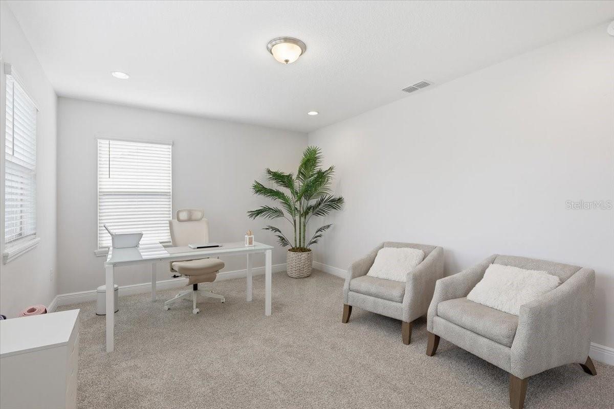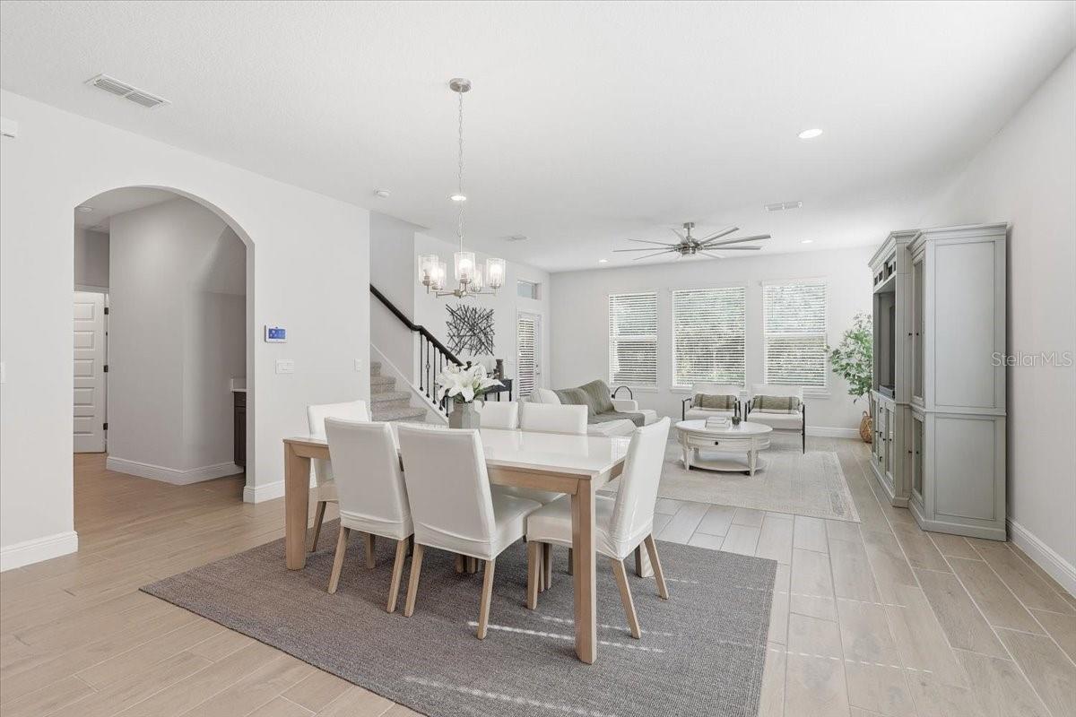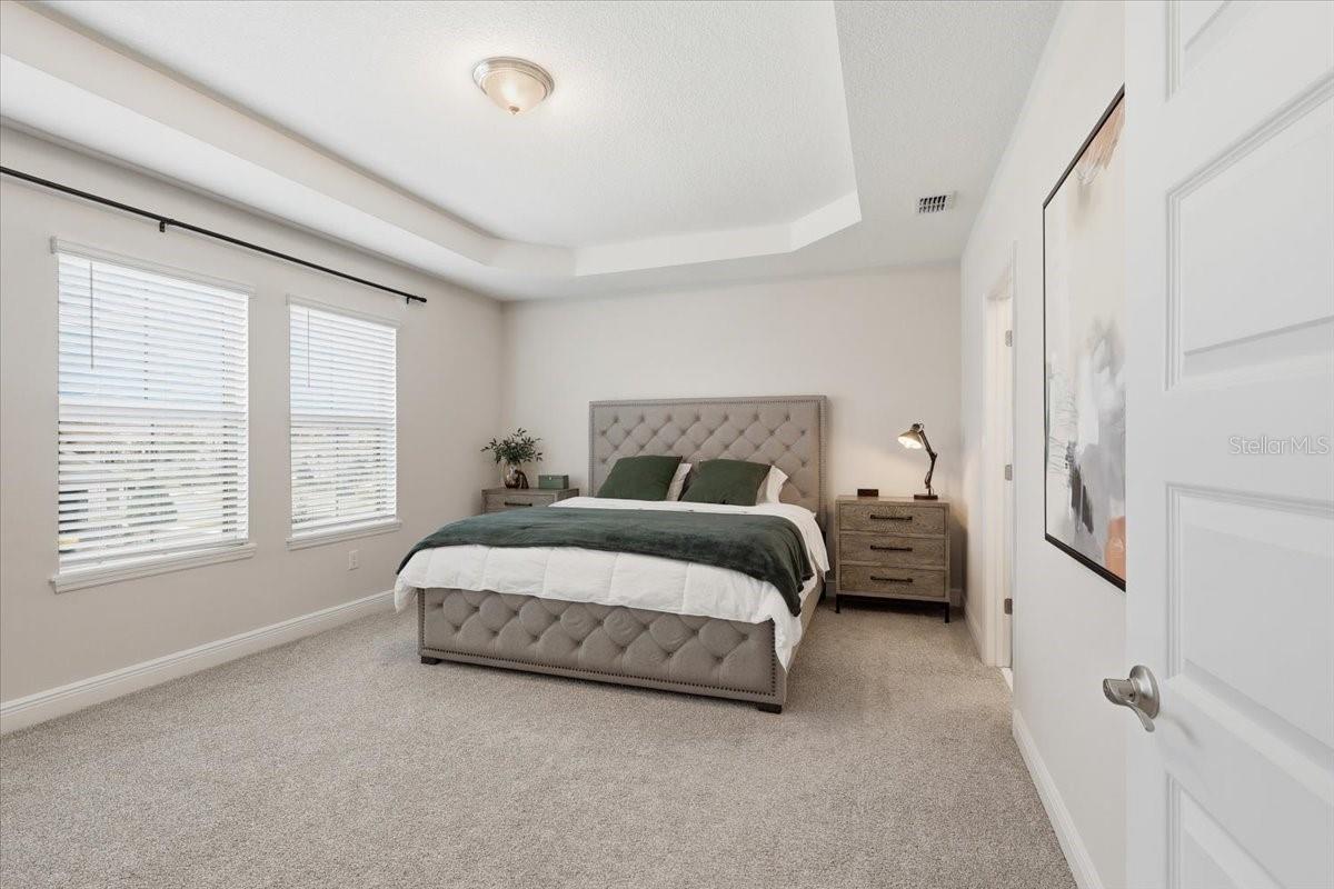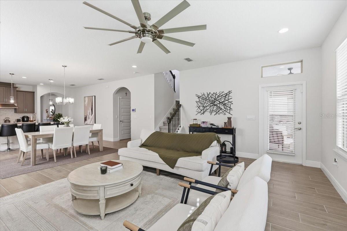 Seller offering $10,000 toward Buyer’s Closing Costs + Golf Cart AND Furniture INCLUDED with sale! No rear neighbors! Situated on a premium conservation lot with lake views, this fully furnished 4-bedroom, 3-bathroom two-story home in the desirable Waterleigh community offers privacy, upgrades, and true move-in-ready convenience. Exceptional curb appeal features a brick paver driveway and welcoming front porch. Inside, enjoy wood-look tile throughout the main living areas, a flexible formal sitting room ideal for entertaining or home office, and an open-concept layout filled with natural light. The upgraded kitchen showcases custom gray cabinetry, stainless steel appliances, designer backsplash, pendant lighting, and generous counter space, flowing seamlessly into the dining and family room. Large windows frame tranquil views of the conservation area and lake, creating a peaceful backdrop for everyday living and entertaining. A first-floor bedroom with full bathroom provides an ideal guest or multigenerational suite. Upstairs, the spacious primary retreat features a tray ceiling and spa-style bath with dual sinks, soaking tub, and separate shower. A large loft offers flexible space for media, office, or play area, also with serene backyard and water views. Two additional bedrooms and a full bath complete the upper level. Step outside to your private outdoor oasis featuring a covered brick-paver lanai with summer kitchen, perfect for entertaining, plus a fully fenced backyard with room to add a pool — all while enjoying the privacy of no rear neighbors and protected conservation behind the home. Waterleigh residents enjoy 3 resort-style pools, 2 clubhouses with fitness centers, walking trails, sand volleyball, dog park, fishing and observation pier, tennis courts, pickleball, playgrounds, and lawn maintenance included in HOA. Zoned for Water Spring Elementary, Water Spring Middle School, and Horizon High School. Prime location near Disney, shopping, dining, SR-429, I-4, SR-417, and Publix. With furniture, golf cart, seller credit, premium lot, outdoor kitchen, and EV-ready garage all included, this home offers outstanding value and an effortless move-in experience.Schedule your private showing today.