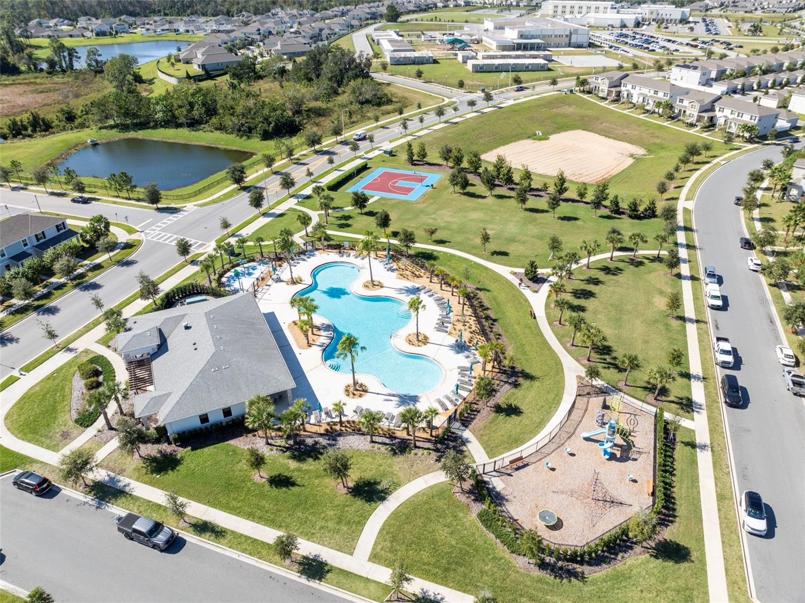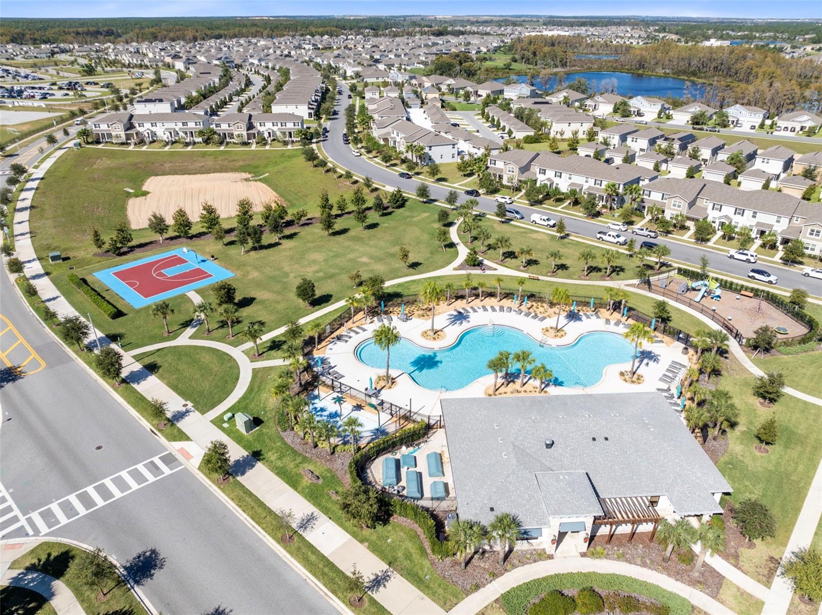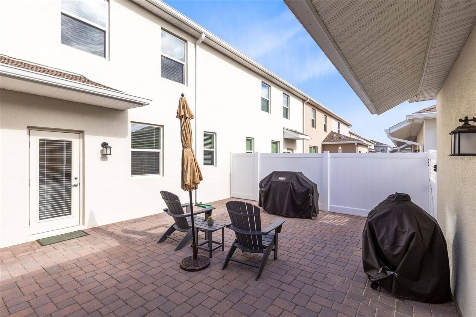 One or more photo(s) has been virtually staged. Are you wanting that single family feel but with a lower maintenance lifestyle? Then this one is for you! This like new 2023 built 3 bedroom, 2.5 bathroom townhome in established Storey Grove is so spacious you will almost forget you’re in a townhome! This fantastic home is airy and bright with an open layout showcasing modern finishes with wood-look tile on entire first floor, separate dining and living spaces – could be swapped for larging lounging space off huge kitchen, perfect for entertaining! Calling all chefs and bakers! This kitchen is bigger than most homes but at the price of a townhome! In addition to white wood shaker style cabinets galore, you get ample quartz counter space that includes a separate island with small breakfast bar plus a breakfast bar by the living room, large stainless steel double sided sink, complete GE slate appliance package that includes French door refrigerator (with ice/water maker in door), recessed lights, closet pantry space and convenient ½ bath with linen closet! Upstairs offers inviting Primary Retreat with sizable walk-in closet, modern ceiling fan with remote plus an en-suite bath showcasing dual adult height sinks on white wood vanity, quartz counter, tile floor, roomy tiled shower stall and window for natural light! Two secondary bedrooms share neutral guest bath sporting white wood adult height vanity, quartz counter, tile floor & tiled tub/shower combination! Downstairs inside utility room has shelving, space for storage and comes with GE washer & dryer! Do not spend your weekend mowing grass when you can instead relax in privacy outback on your fenced 24’x20’ paver patio! Detached 2 car garage has alley access out back along with overhead rack for storage! Having a superior location in the neighorbood, Title Way is one of the wider streets, includes speed bumps, no street parking allowed directly in front of this one (means you won’t have stare at random cars or a stream of strangers out front!) and you face the manor homes, all giving this more of a single family home vibe! Storey Grove is an established community with pool, clubhouse, bark park, fitness center and walking trail which means you get to enjoy all that the wonderful attributes of being in the Horizon West area without the annoyances of living with construction next door or in your neighborhood! Speaking of conveniences, a brand-new Publix, Jersey Mikes and McDonald’s have gone in right up the road! Incredible location provides easy access to Avalon Road, the 429, US Hwy 27, Hamlin Town Center, Theme Parks, Orlando Heath, AdventHealth and endless options for shopping, dining and entertainment! This one is a must see!