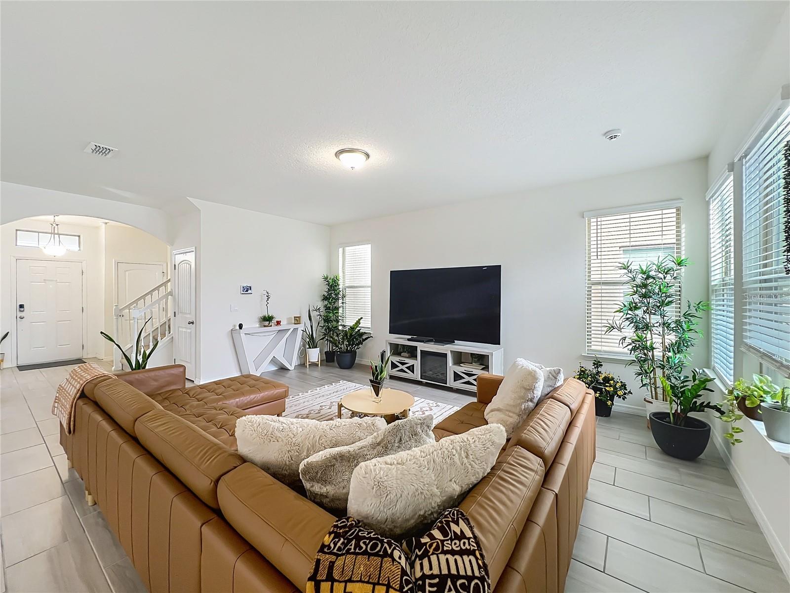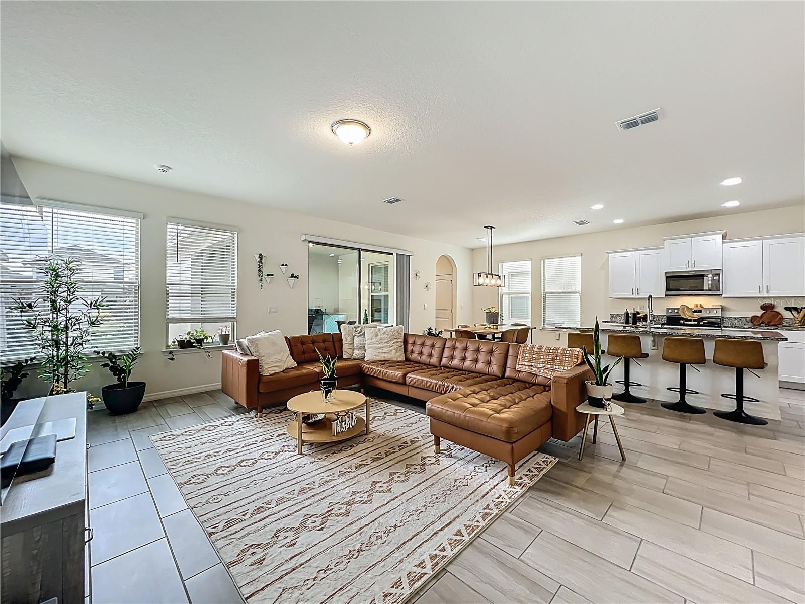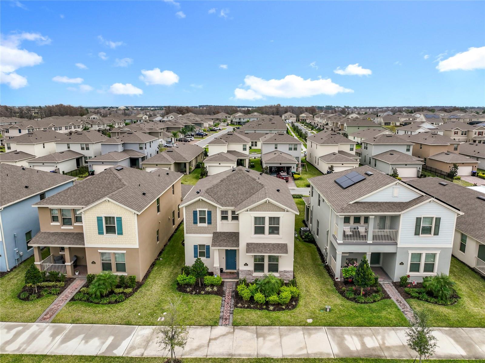 WELCOME HOME! The Bellake model is a beautiful two story, three bedroom, two and a half bathrooms, and a den/flex space, which is perfect to use as a home office or to convert it into a four bedroom. The spacious kitchen features stainless steel appliances, stone countertops, and upgraded wood cabinets. A large living room / dining room combo that opens up to the covered lanai. Master bedroom is upstairs with a walk-in closet, owner's bath that features a walk-in shower, and his and hers vanities. You will also find two bedrooms and the laundry room on the second floor. LET'S TALK about Waterleigh! It is a master planned community offering 2 stunning clubhouses with resort style pools, fitness centers, putt putt golf, beach volleyball, tennis, pickleball, BBQ/picnic areas, playground, dog park,and more. This property is conveniently located nearby to shopping centers, grocery stores, restaurants, and hospitals, alongside being close to Walt Disney World, which makes it a magical place to live!