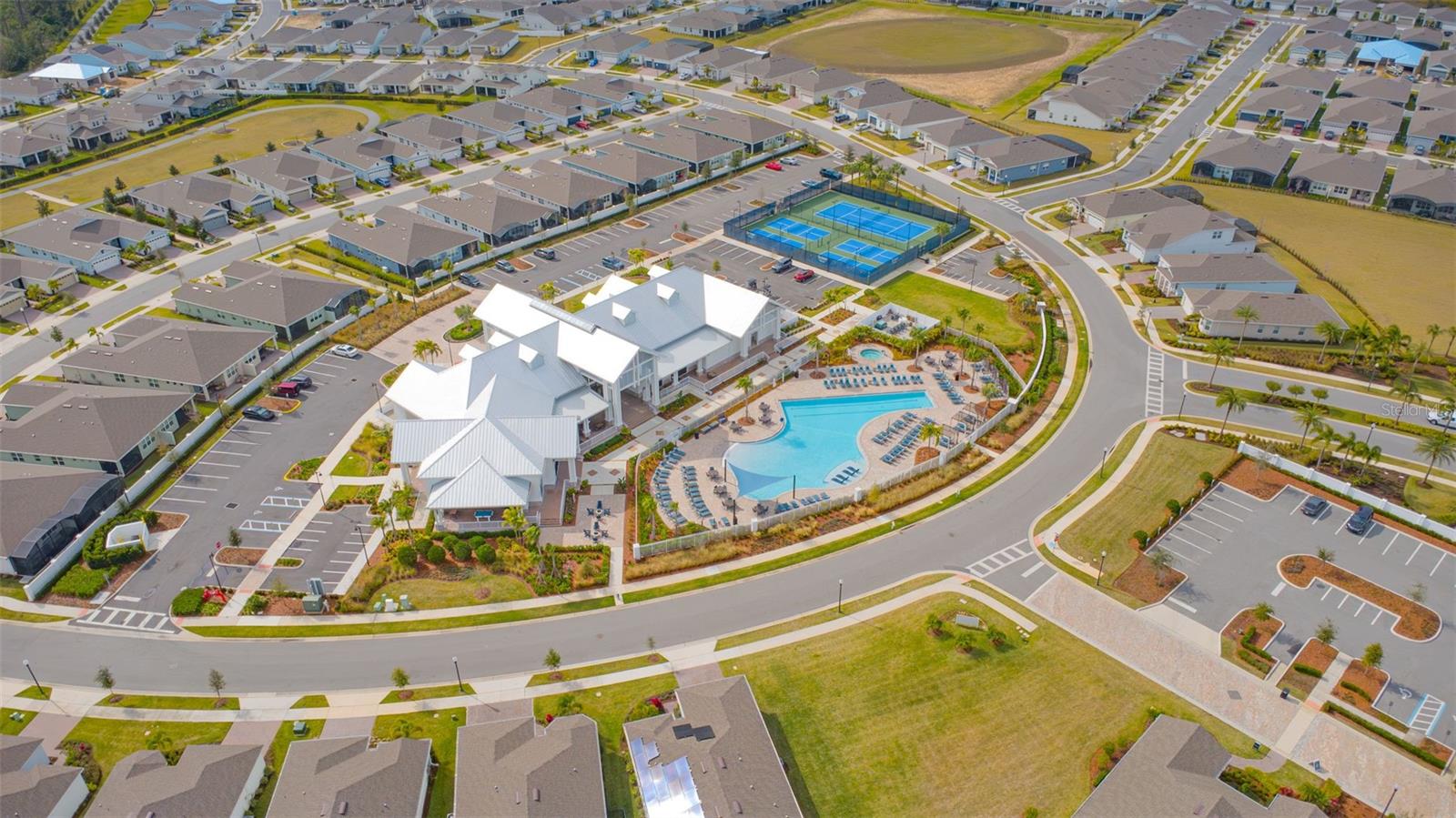 This is a one-of-a-kind opportunity to own the most unique Ellenwood Villa in the entire community. Standing in a class of its own, this pristine, move-in-ready residence features two bedrooms, two bathrooms, and a versatile flex space perfect for a home office or den. The interior is defined by an elegant, sun-drenched open concept with soaring ceilings and strategically placed high-wall windows that invite glorious natural light without sacrificing an ounce of privacy. The heart of the home is a gourmet kitchen designed for the culinary enthusiast, boasting premium appointments such as 42” white soft-close cabinetry and luxe quartz countertops. Chef’s Essentials include high-end stainless steel appliances with gas cooking. The Entertainment Hub is a central prep island with seating that flows into a massive dining area—large enough to host 8 to 10 seated guests with room for a full-sized china cabinet or buffett. Plus there is a special Designer Gift for the lucky new owner! The living area comes complete with a custom-designed, modern reclining sofa specifically curated for this space! And, the SHOWSTOPPER is the Outdoor Living Reimagined! Step through the sliders into your own private sanctuary. This villa boasts a "crowning jewel" nearly 350 square feet of expanded, fully screened-in OUDOOR living space (over $20k+ improvement) featuring rich paver flooring and an oversized covered lanai. This oasis overlooks a premium, lush dedicated conservation area for added privacy. Whether you are gardening, dining al fresco, or enjoying sunset cocktails, the lack of rear neighbors ensures total tranquility. The primary suite serves as a peaceful escape, featuring a spa-inspired en-suite with a frameless glass shower, dual vanities, and a generous walk-in closet. Throughout the home, the blend of luxury and functionality is evident, from the secluded secondary bedroom to the thoughtfully appointed flex room. Located in an exclusive boutique community, life here feels like a permanent vacation. As part of the "Villas" collection, your exterior maintenance and groundskeeping are fully handled, allowing you to enjoy the ultra-low-maintenance Florida lifestyle. Clubhouse & Social Scene offers A vibrant calendar of events centered around a world-class amenity hub. Water Features include a Zero-entry resort pool with lap lanes, sun shelves, private cabanas, and a relaxing There are dedicated pickleball courts, a modern fitness center, and scenic walking trails with exercise stations. Enjoy nightly spectacular fireworks views right from the community grounds.Perfectly positioned near Florida’s world-famous theme parks, this one-of-a-kind gem offers exceptional value and a lifestyle that truly "doesn’t get better than this." Schedule your tour today—there isn't another one like it!