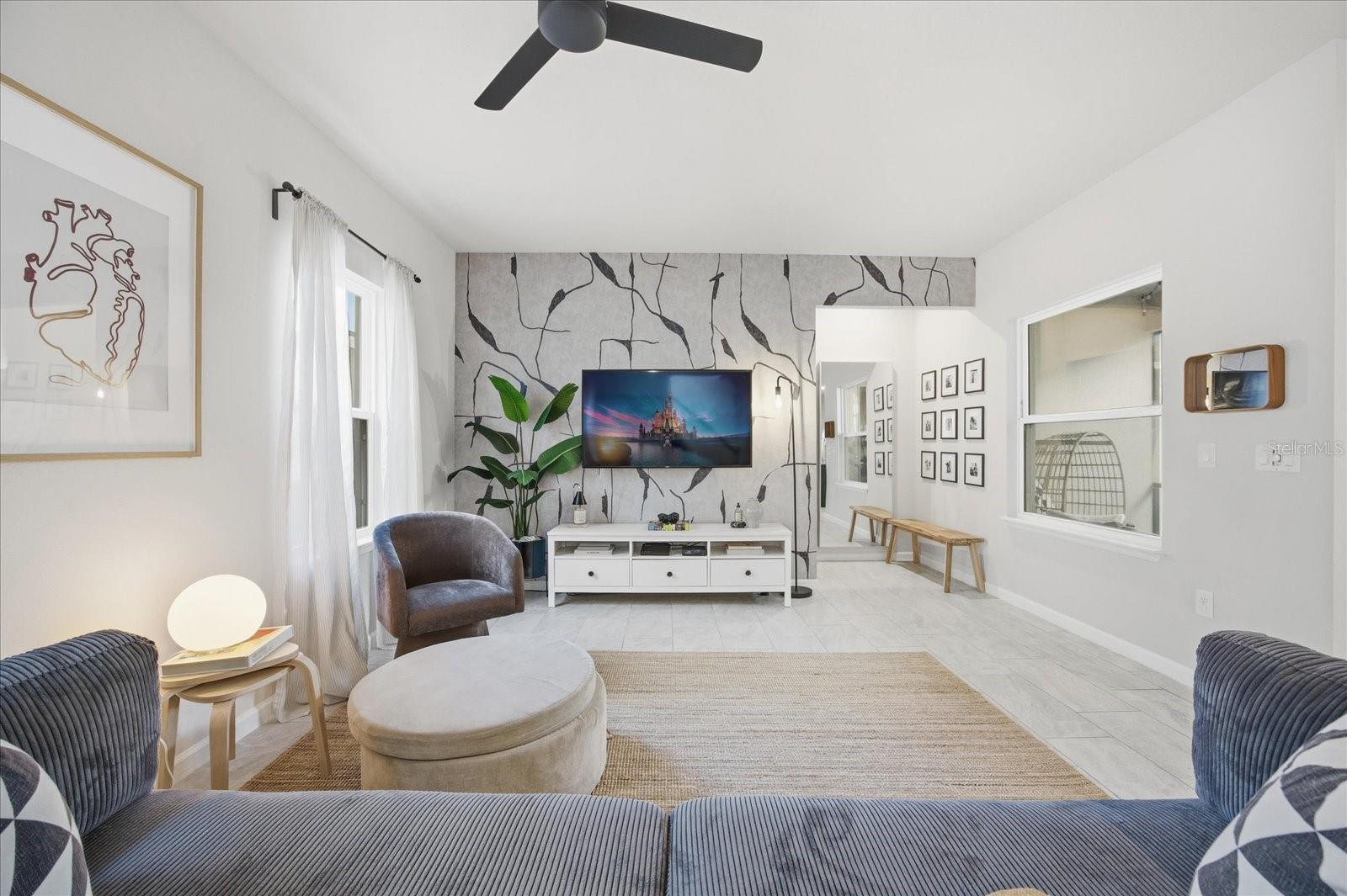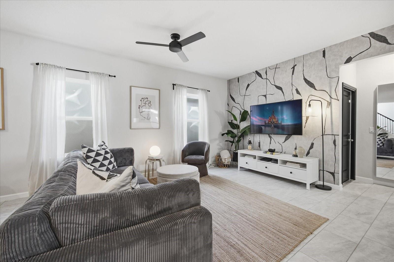 Beautifully maintained home featuring 3 bedrooms plus a versatile flex room that can easily be converted into a 4th bedroom, offering the potential to increase future value. The home includes 2.5 bathrooms and a spacious private front porch, perfect for enjoying sunrise views and outdoor living. The kitchen has been thoughtfully upgraded by an interior designer, showcasing luxury finishes and refined details. A rear entry 2 car garage adds convenience and curb appeal. The property is located in a community with a large, well maintained pool and is only 10 minutes from Walt Disney World. Ideally located with immediate access to SR-429 and just minutes from Hamlin’s growing town center, including restaurants, shops, and supermarkets. With no front facing neighbors, the home enjoys open views, abundant natural light, and a sense of privacy rarely found.
